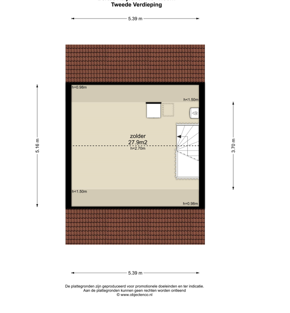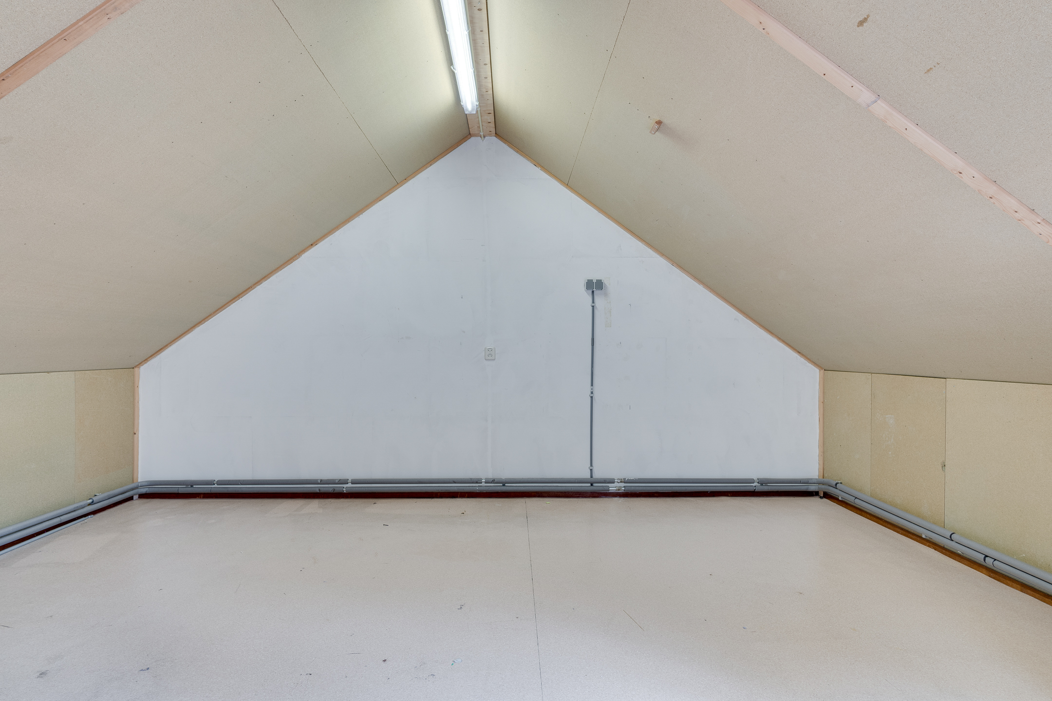 Grote ruime zolderkamer van ca. 27 m² te gebruiken als slaap-, opslag- of hobbykamer. Tevens treft u hier de cv-ketel opstelling en aansluiting voor de wasmachine.