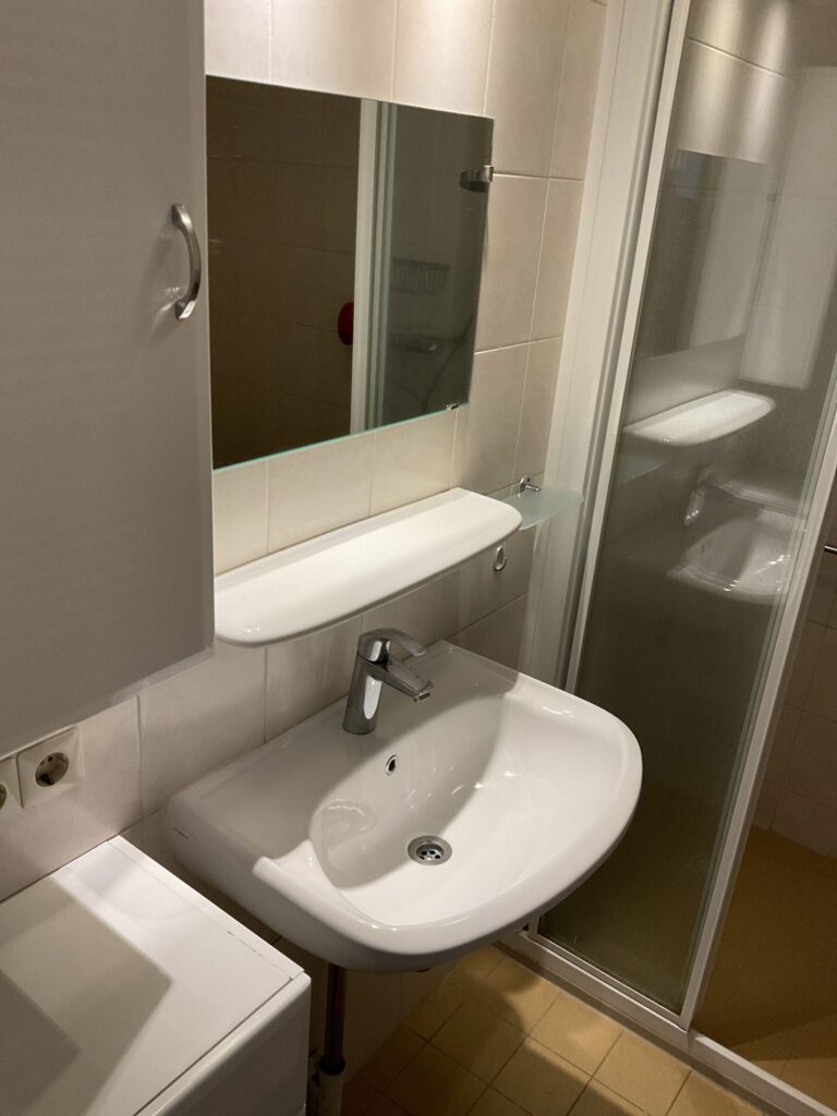 Vanuit de hal heeft u tevens toegang tot de badkamer welke is voorzien van een wastafel met planchet, spiegel en douchehoek. Verder is er een separaat toilet aanwezig.