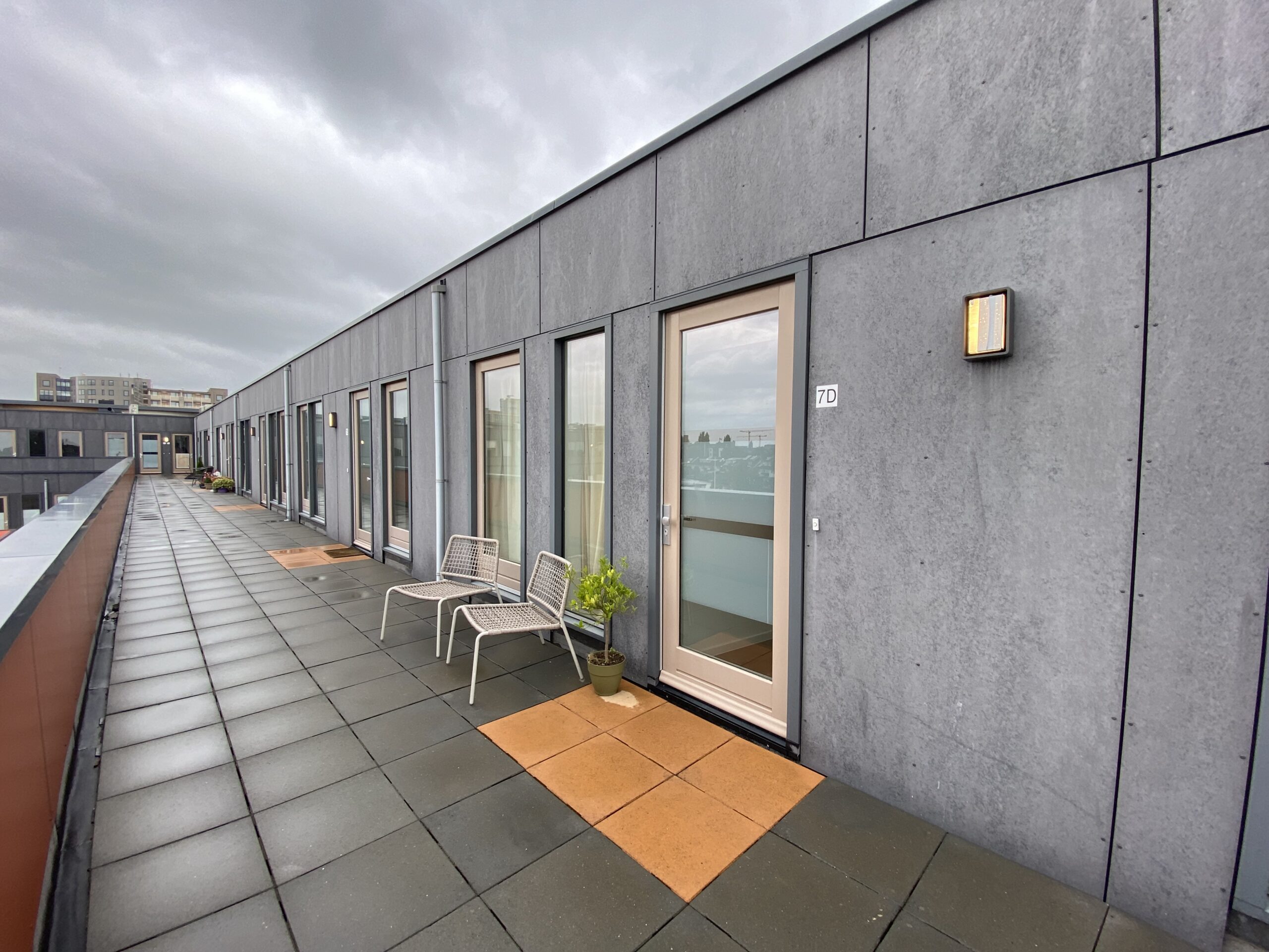 Entree met toegang tot eerste royale slaapkamer (ca. 13 m²), tweede slaapkamer (ca. 9,5 m²), berging met warmtepomp en wasmachine- en drogeraansluiting, toilet met fonteintje, badkamer met inloopdouche, wastafel met meubel en spiegel met verlichting, ruime woonkamer (ca. 32 m²) met open keuken voorzien van voorzien van koel-vriescombinatie, combi-oven, vaatwasser, inductiekookplaat en afzuigkap. Vanuit de woonkamer heeft u toegang tot het zonnige terras (ca. 12 m²).