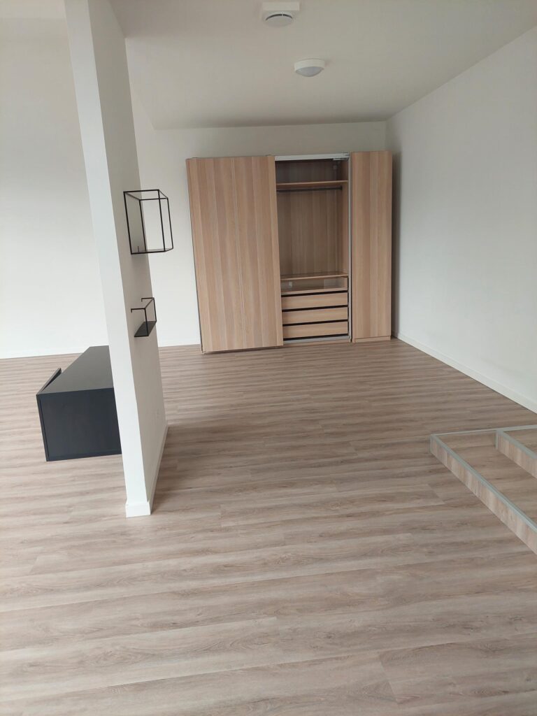 De studio is voorzien van een moderne, lichte eiken PVC-vloer en door de vloerverwarming- en koeling ervaart u extra wooncomfort in alle seizoenen.