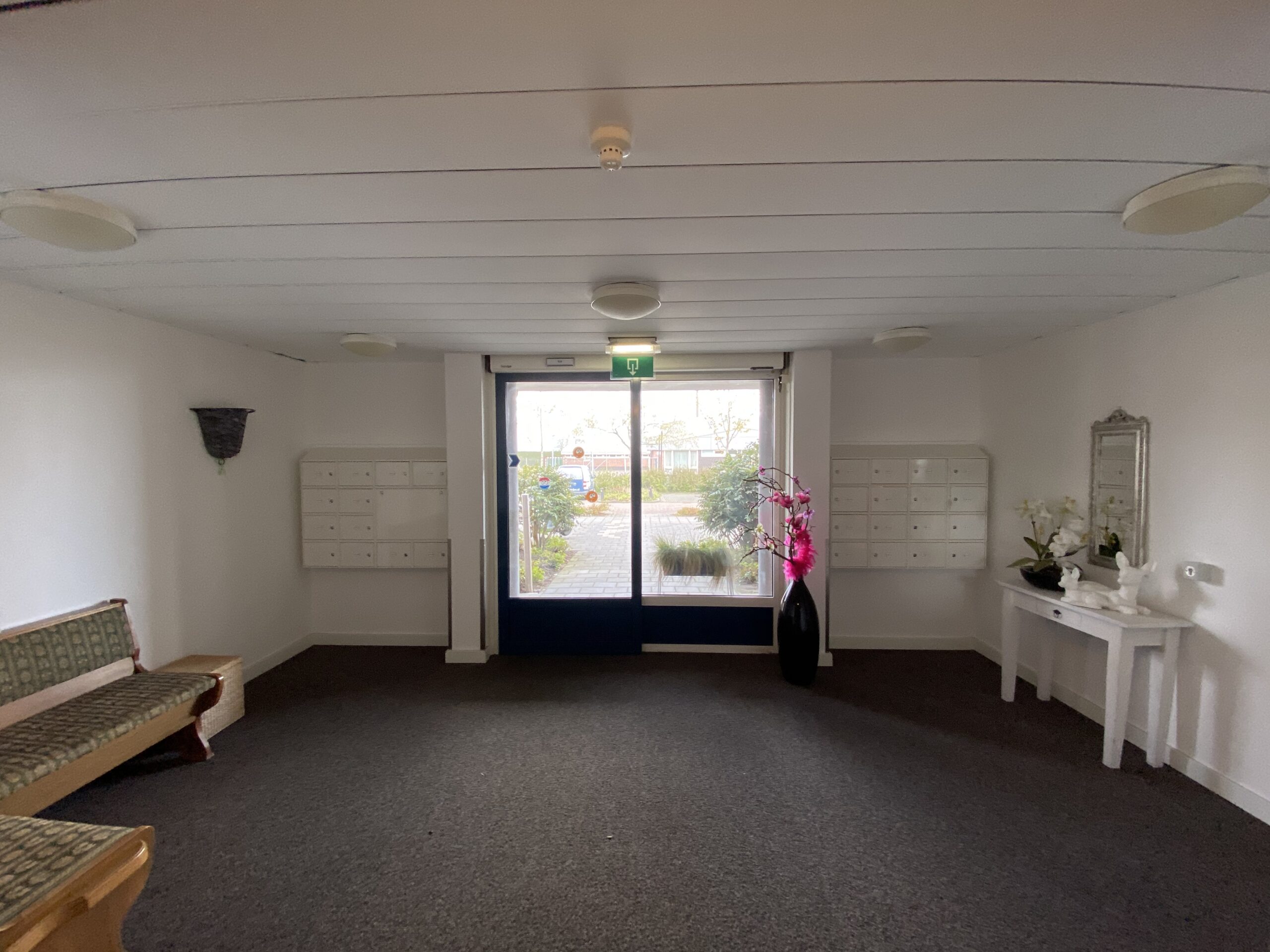 Gemeenschappelijke entree, bellentableau, brievenbussen en lift.
