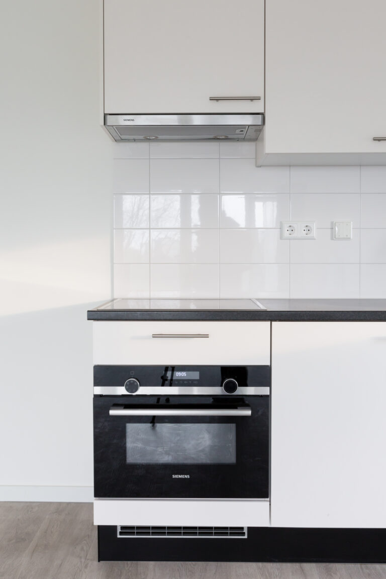 De woning is hoogwaardig afgewerkt en volledig gestoffeerd. De moderne keuken is voorzien van diverse inbouwapparatuur, waaronder een inductiekookplaat, combimagnetron, compacte vaatwasser en koelkast met vriesvak.