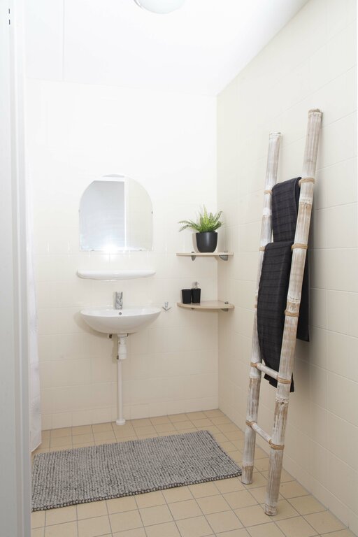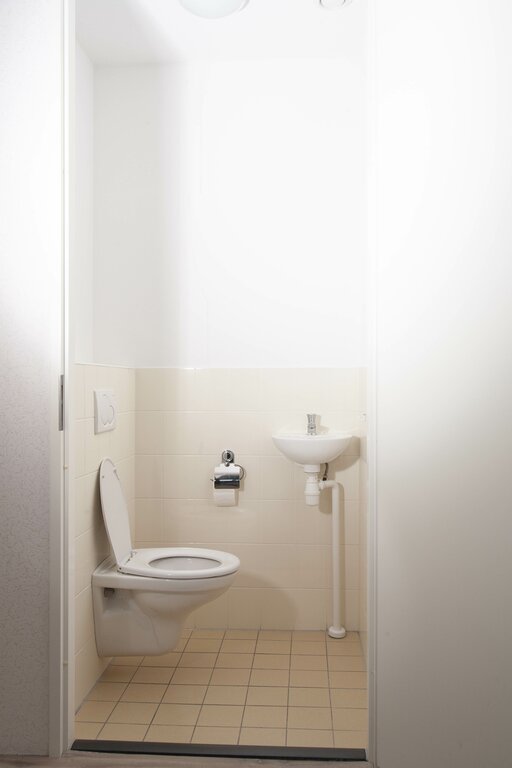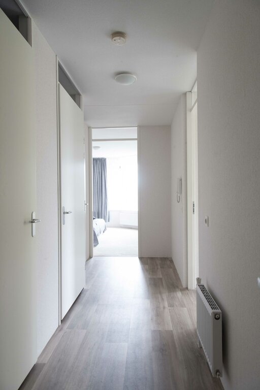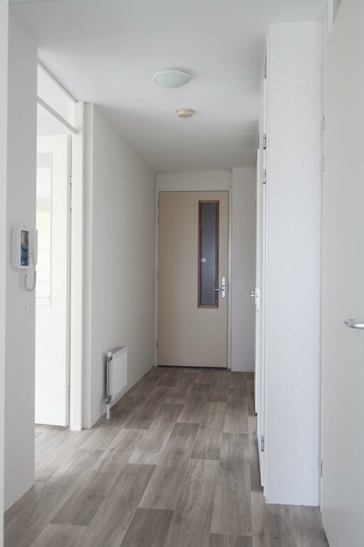 Dit lichte en ruime appartement heeft een royale entree en een hal die toegang biedt tot alle vertrekken. Het separate toilet is voorzien van een hangend toilet en fonteintje, half betegeld in een lichte kleurstelling. De volledig betegelde badkamer beschikt over een douche en een wastafel met spiegel, eveneens uitgevoerd in een lichte kleurstelling.