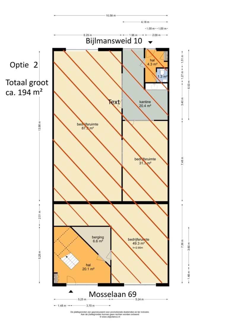 De begane grond bestaat uit totaal ca. 194 m² BVO.