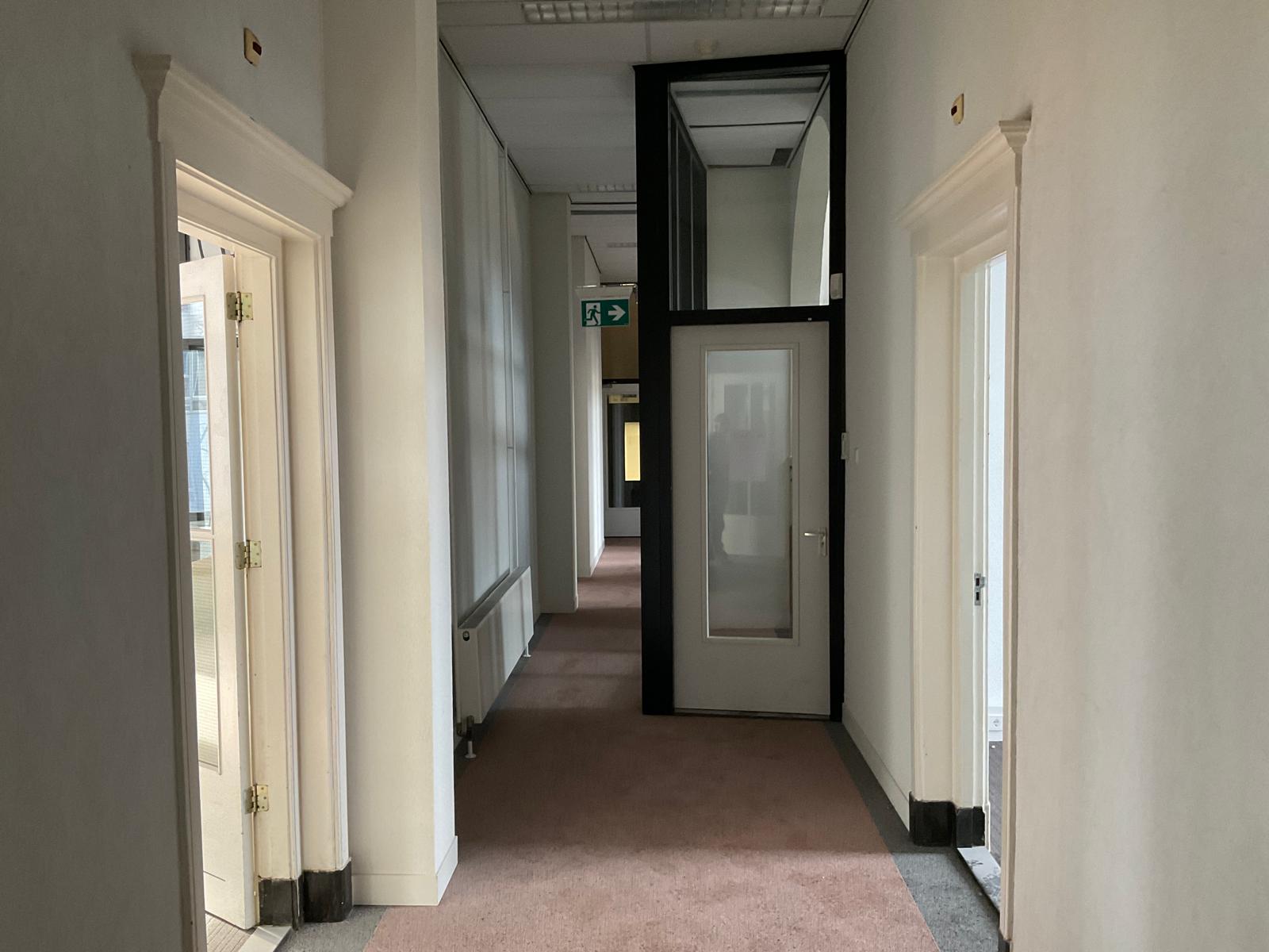 Entree/hal, wachtkamer, garderoberuimte, sanitaire voorzieningen, diverse spreekkamers/kantoorruimtes, royale kantoorruimtes aan de voorzijde en achterzijde, dichte keuken met pantry.