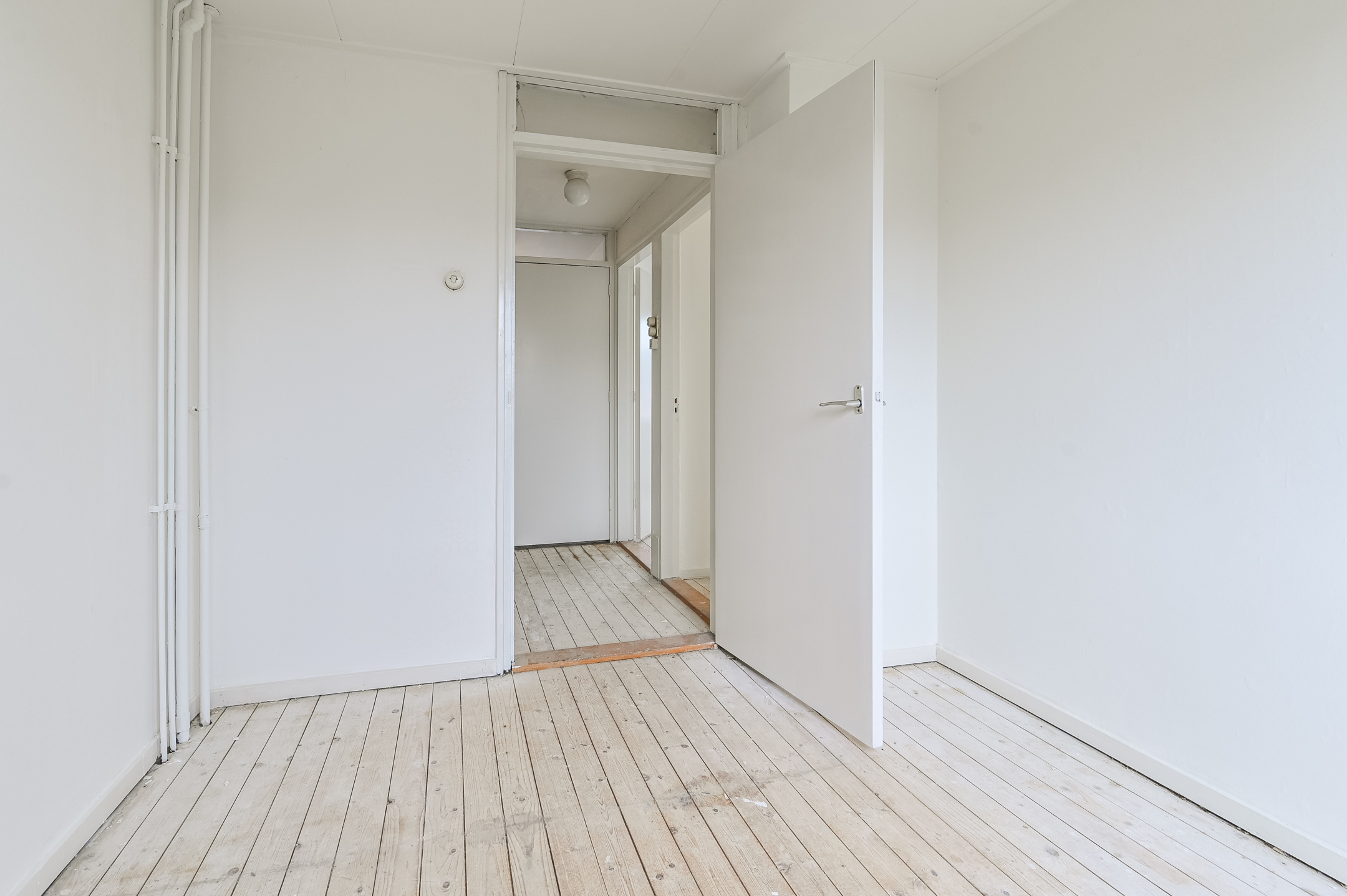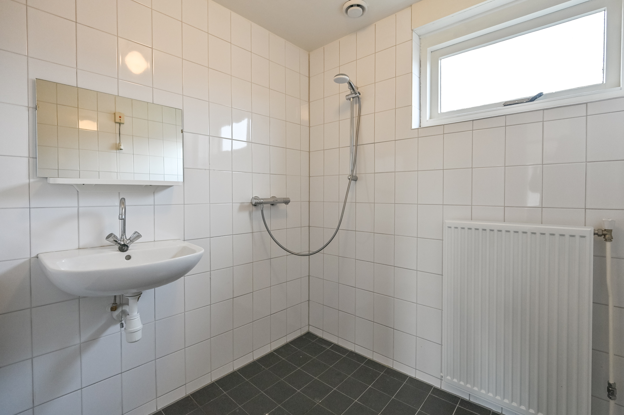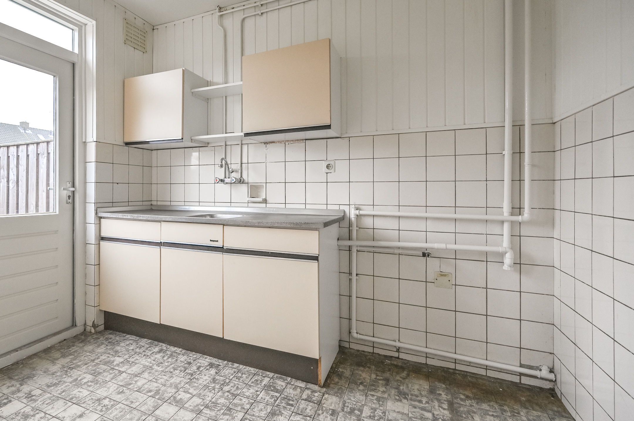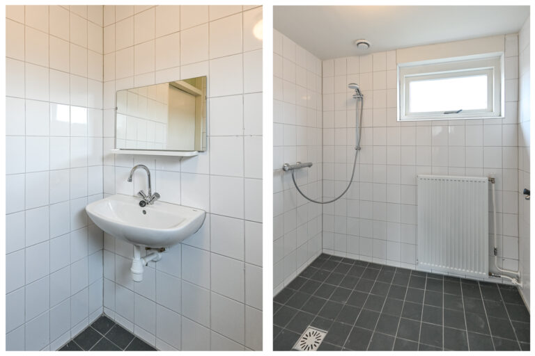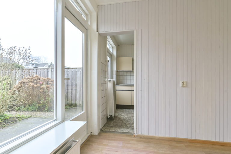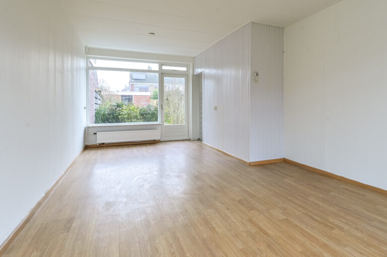 Via de entree betreedt u de hal met toegang tot de woonkamer en de keuken. De woonkamer is licht en biedt volop mogelijkheden voor een sfeervolle zithoek en eethoek. De dichte keuken is eenvoudig, maar functioneel, klaar om vervangen te worden door een keuken geheel naar uw wens.