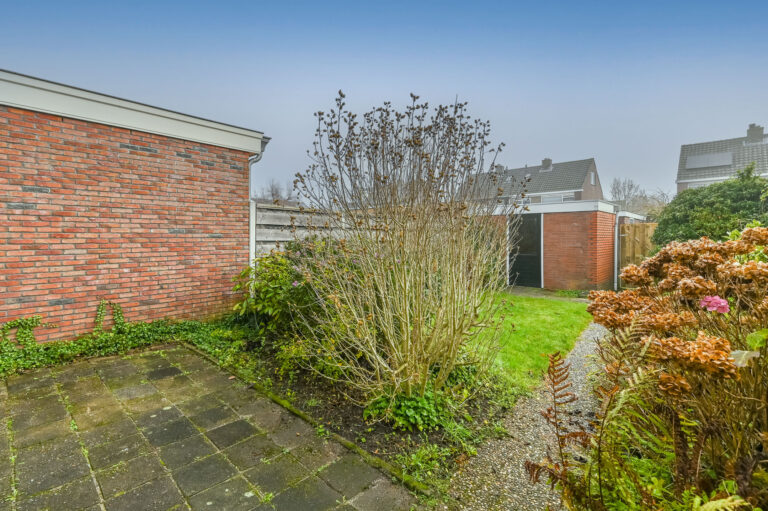 De heerlijke diepe tuin op het zuidoosten is een fijne plek om te genieten van de zon. Achterin de tuin staat een stenen berging voor fietsen, gereedschap en/of tuinmeubelen.