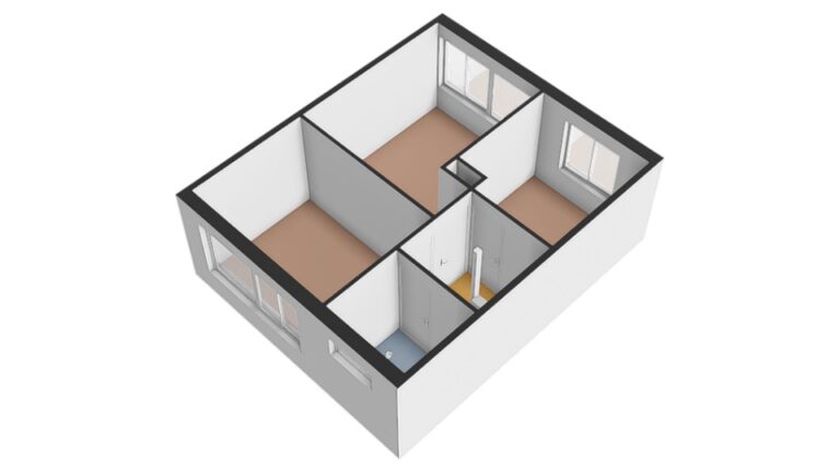 Hier bevinden zich drie slaapkamers van ca. 8 m², ca. 10 m² en ca. 12 m². Ideaal als slaapkamers, werkkamer of hobbyruimte.