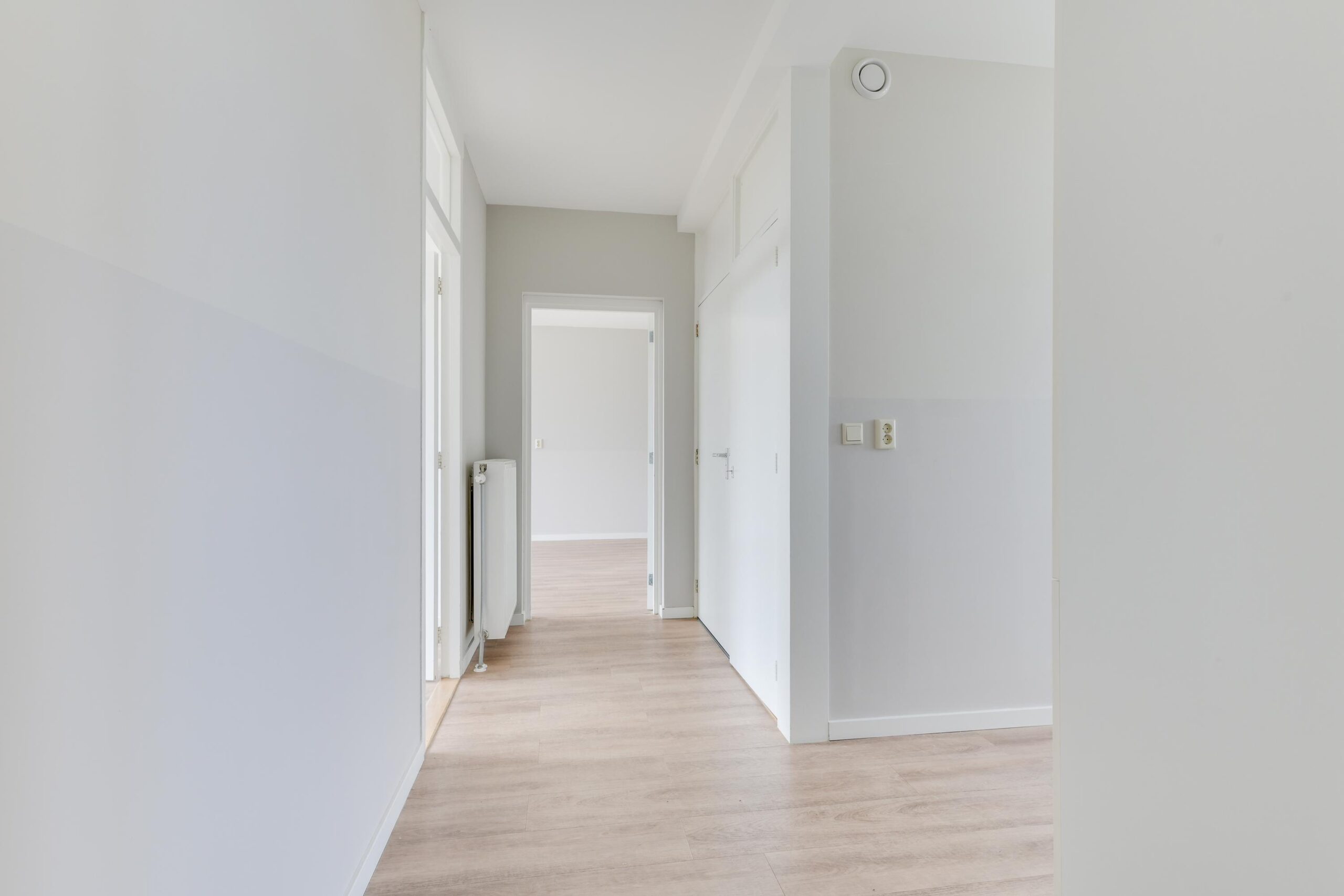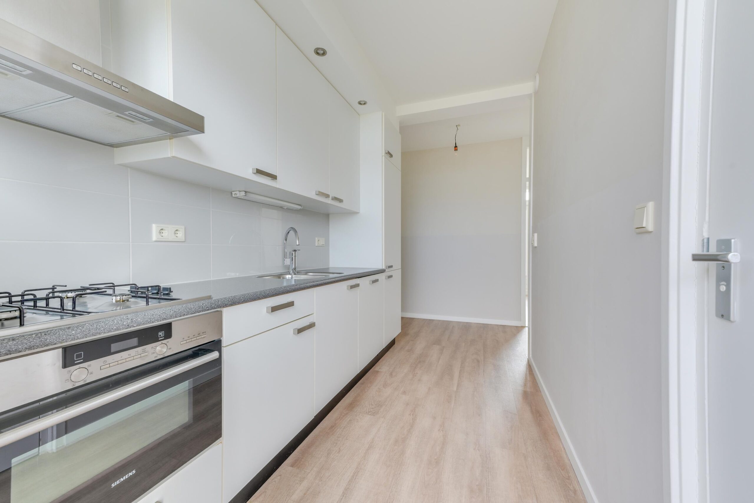 Via de hal heb je toegang tot de dichte keuken, het toilet en de kleinere van de twee slaapkamers (ca. 11,5 m²). Deze slaapkamer biedt toegang tot het balkon op het zuidoosten (ca. 5 m²), waar je heerlijk kunt genieten van de zon tot in de middag. De nette, dichte keuken (ca. 6 m²) is voorzien van inbouwapparatuur, waaronder een combi-oven, afzuigkap en koel-/vriescombinatie. Vanuit de keuken heb je toegang tot het tweede balkon (ca. 5 m²) op het westen, waar je in de avonduren kunt genieten van de zon.