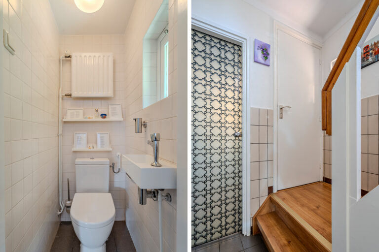 Entree met hal van ca. 8 m² voorzien van een toilet met fonteintje en trapopgang naar de 1e verdieping.
