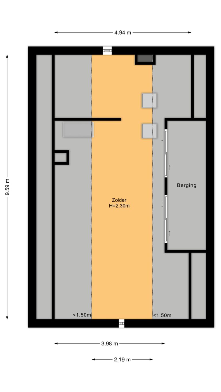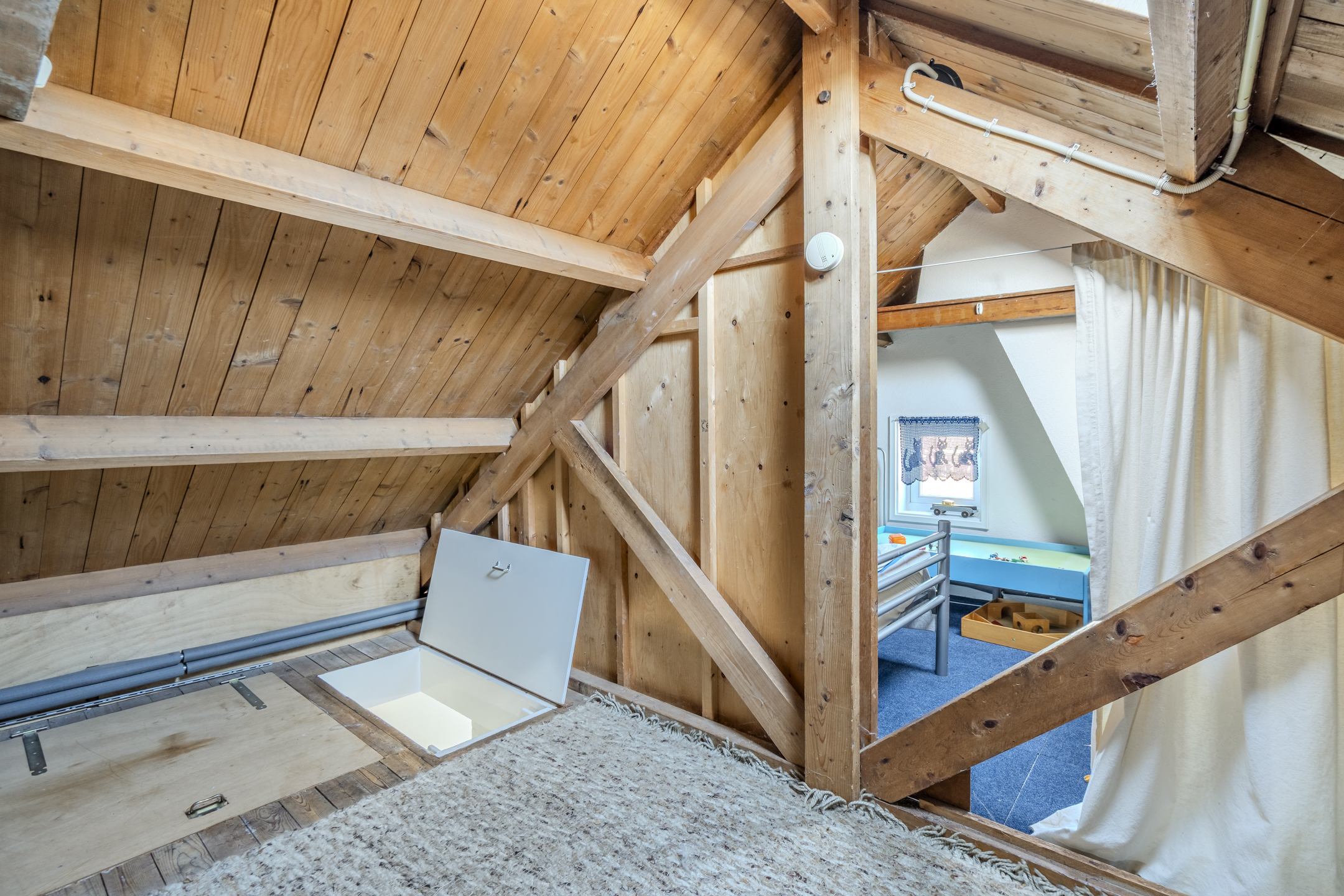 Via vlizotrap bereikt u de ruime ca. 47 m² grote bergzolder met een stahoogte van ca. 2.30 meter en dakramen. Op de zolder vindt u meer dan genoeg ruimte om uw spullen op te ruimen en deze biedt niet alleen praktische opbergruimte, maar ook de mogelijkheid om het verder in te richten naar eigen wens.