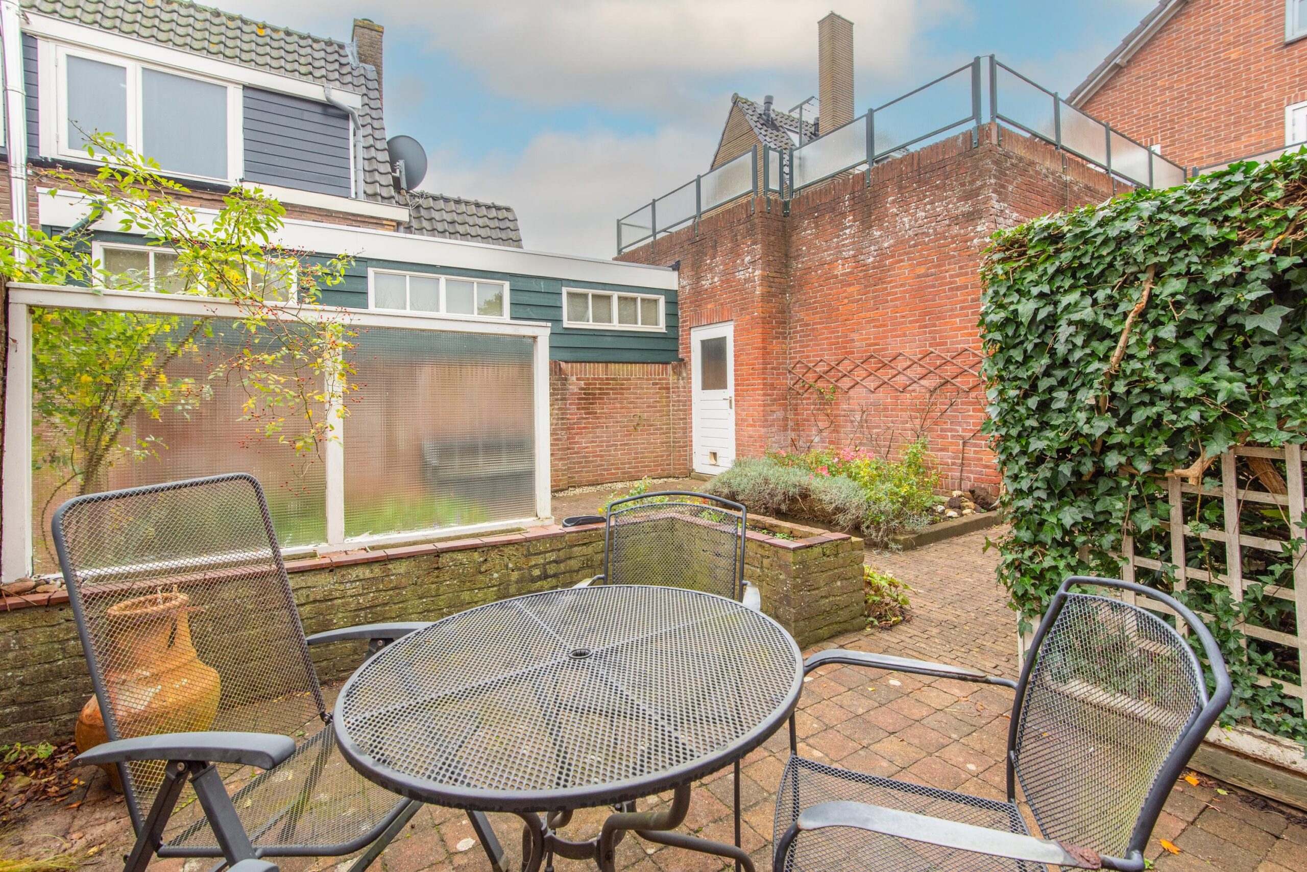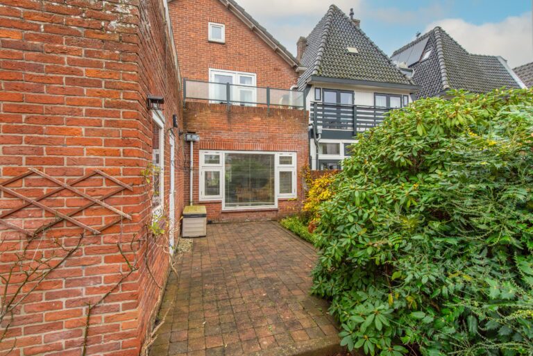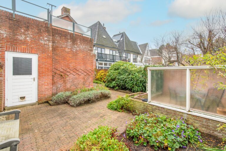 De woning beschikt over een gesloten achtertuin gelegen op het noordwesten. Hier treft u een groot betegeld terras dat wordt afgewisseld met groen.