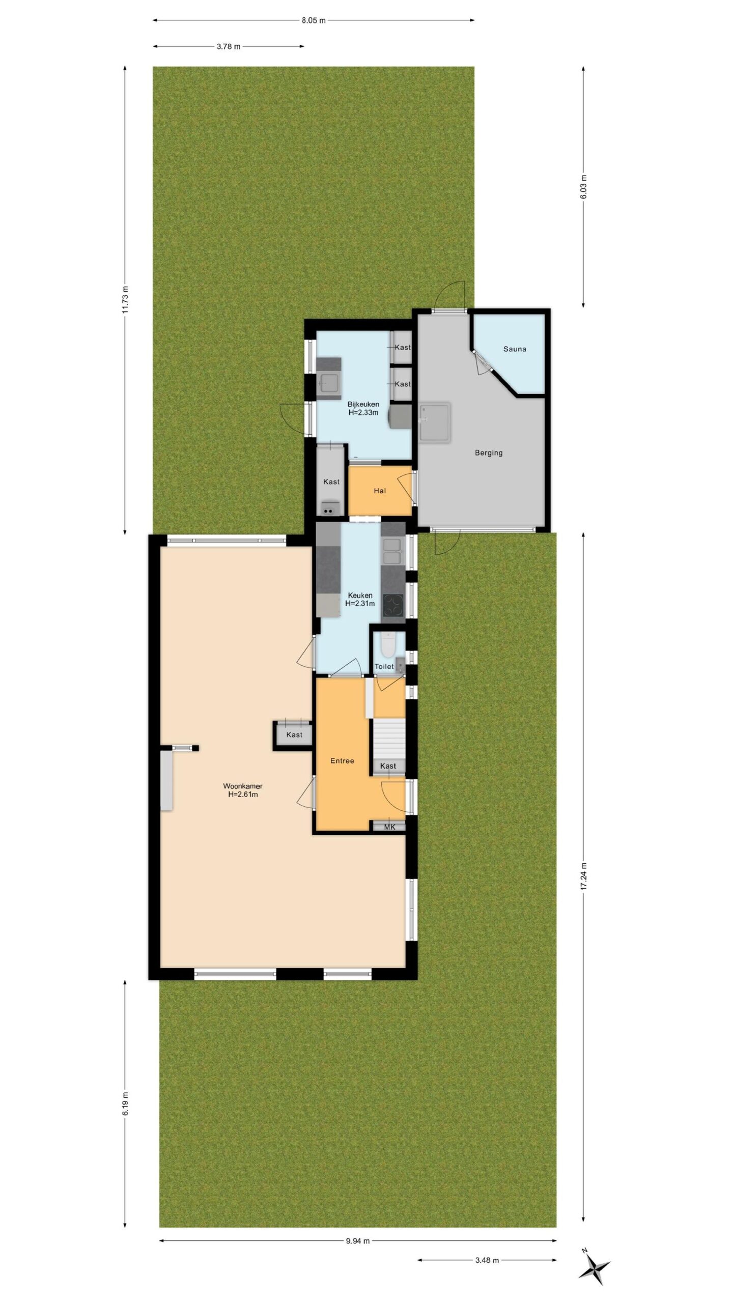 De inpandige garage van ca. 17 m² heeft genoeg bergruimte en is voorzien van een infrarood sauna.