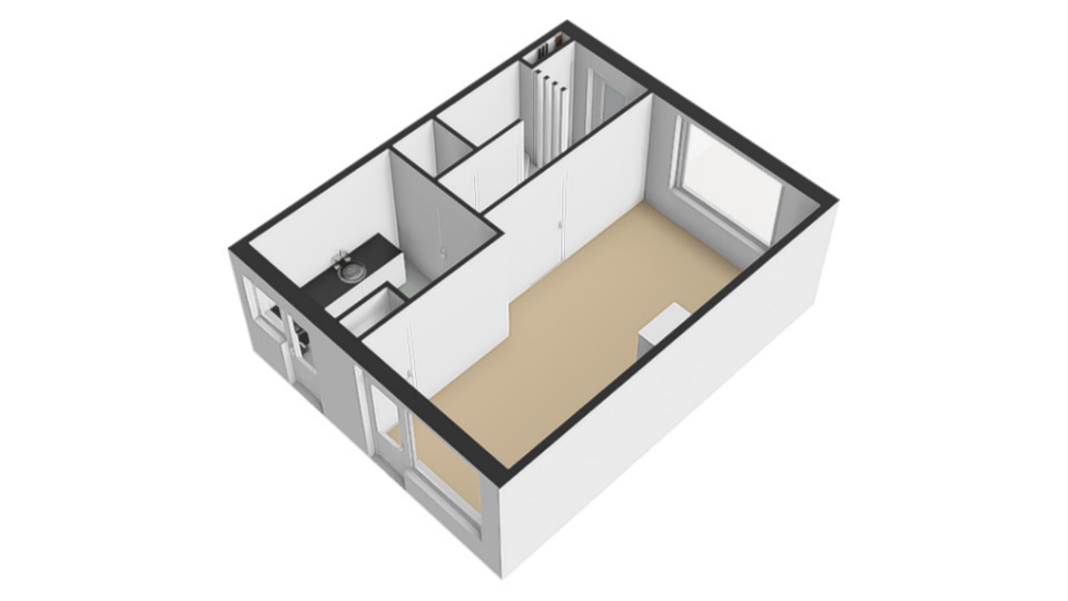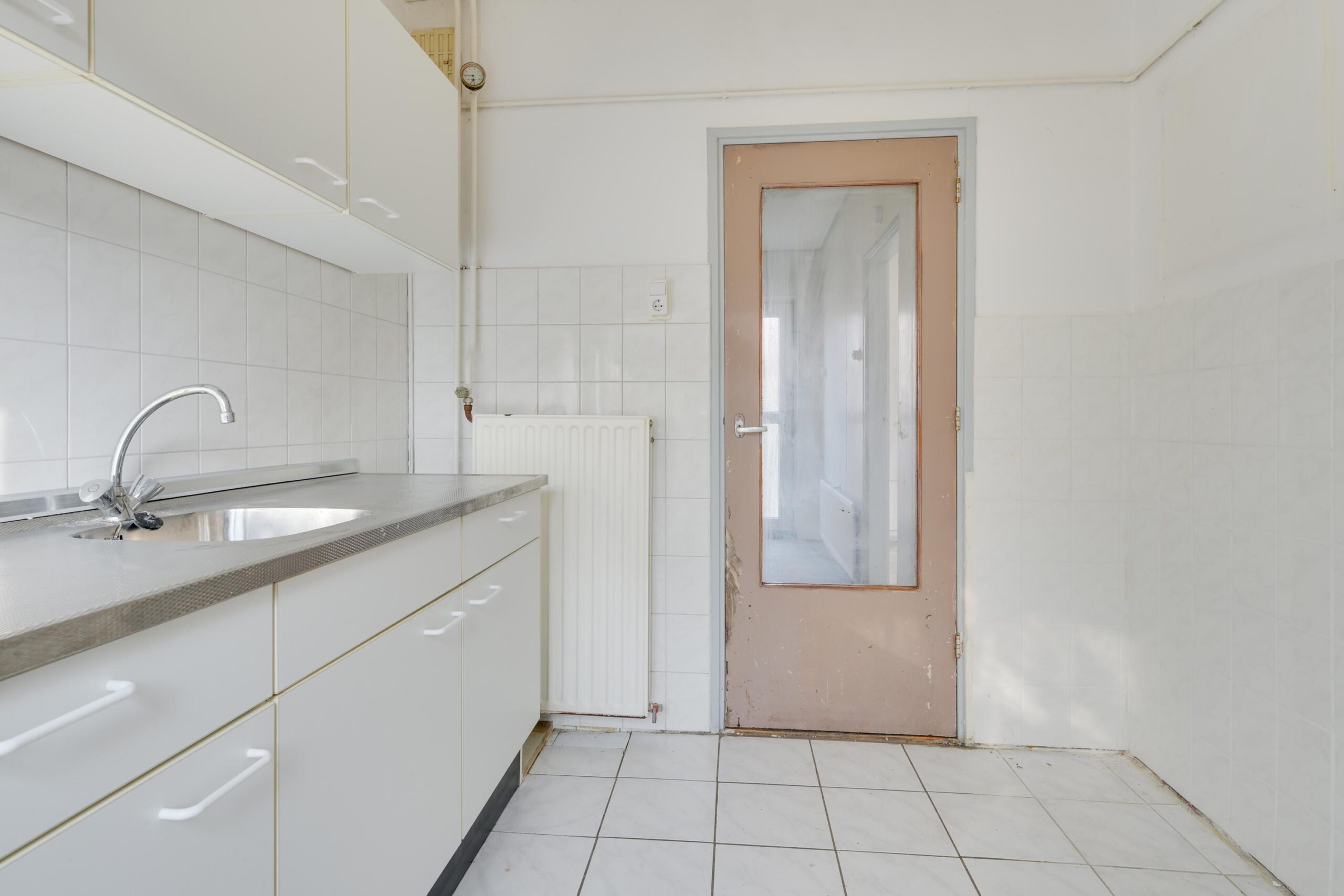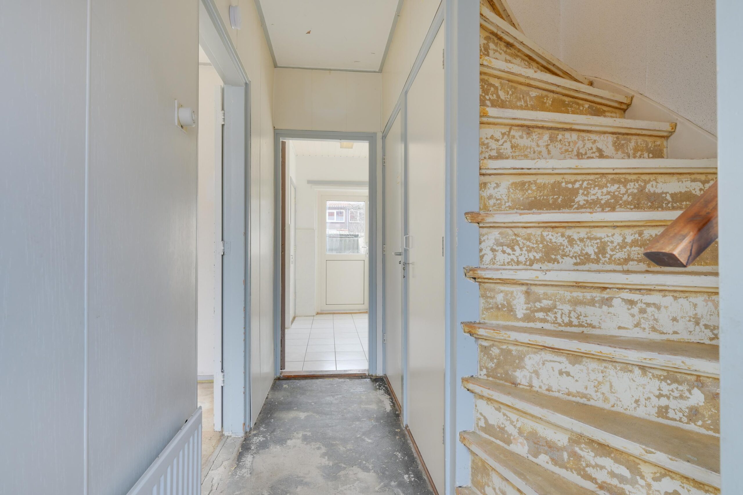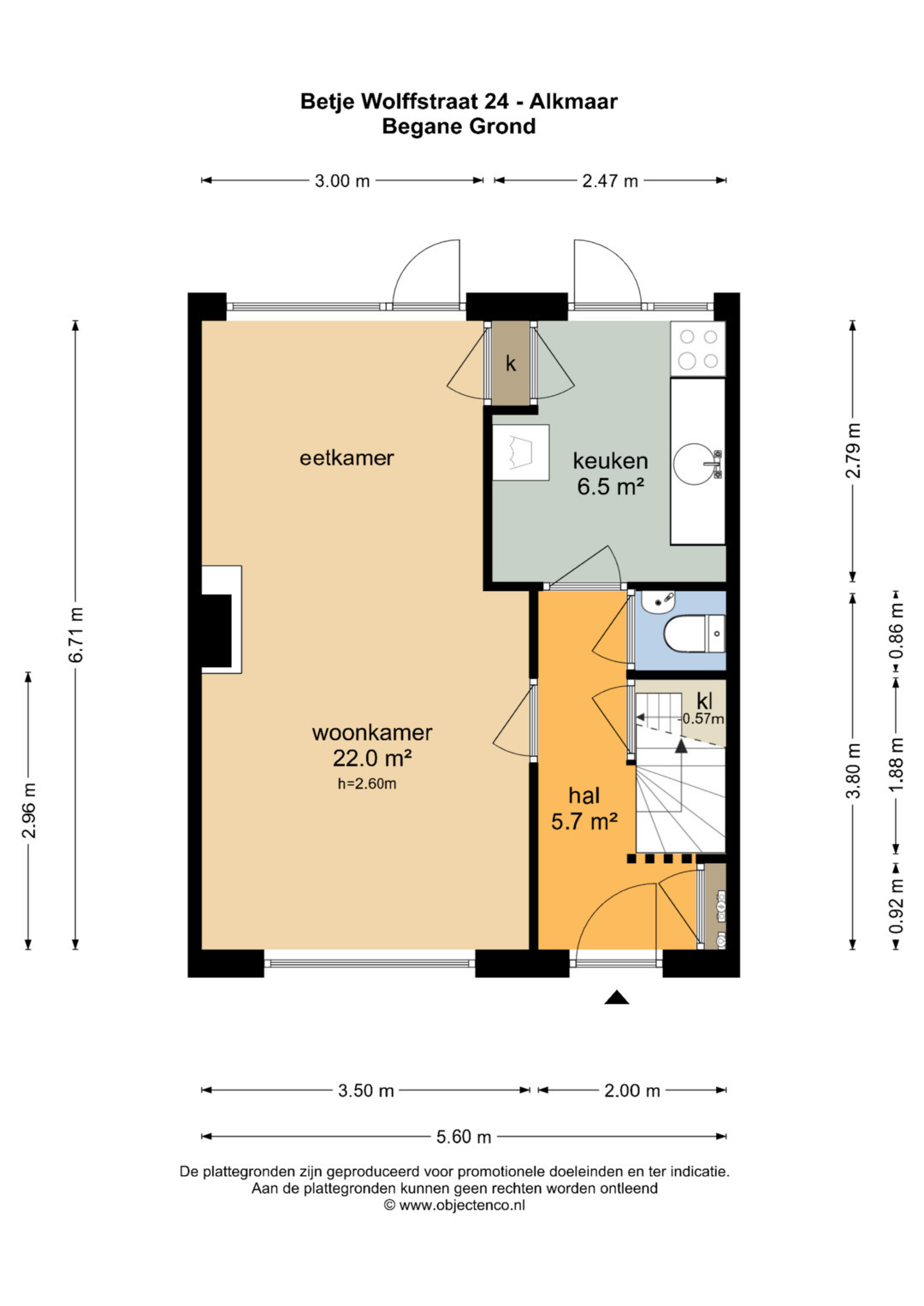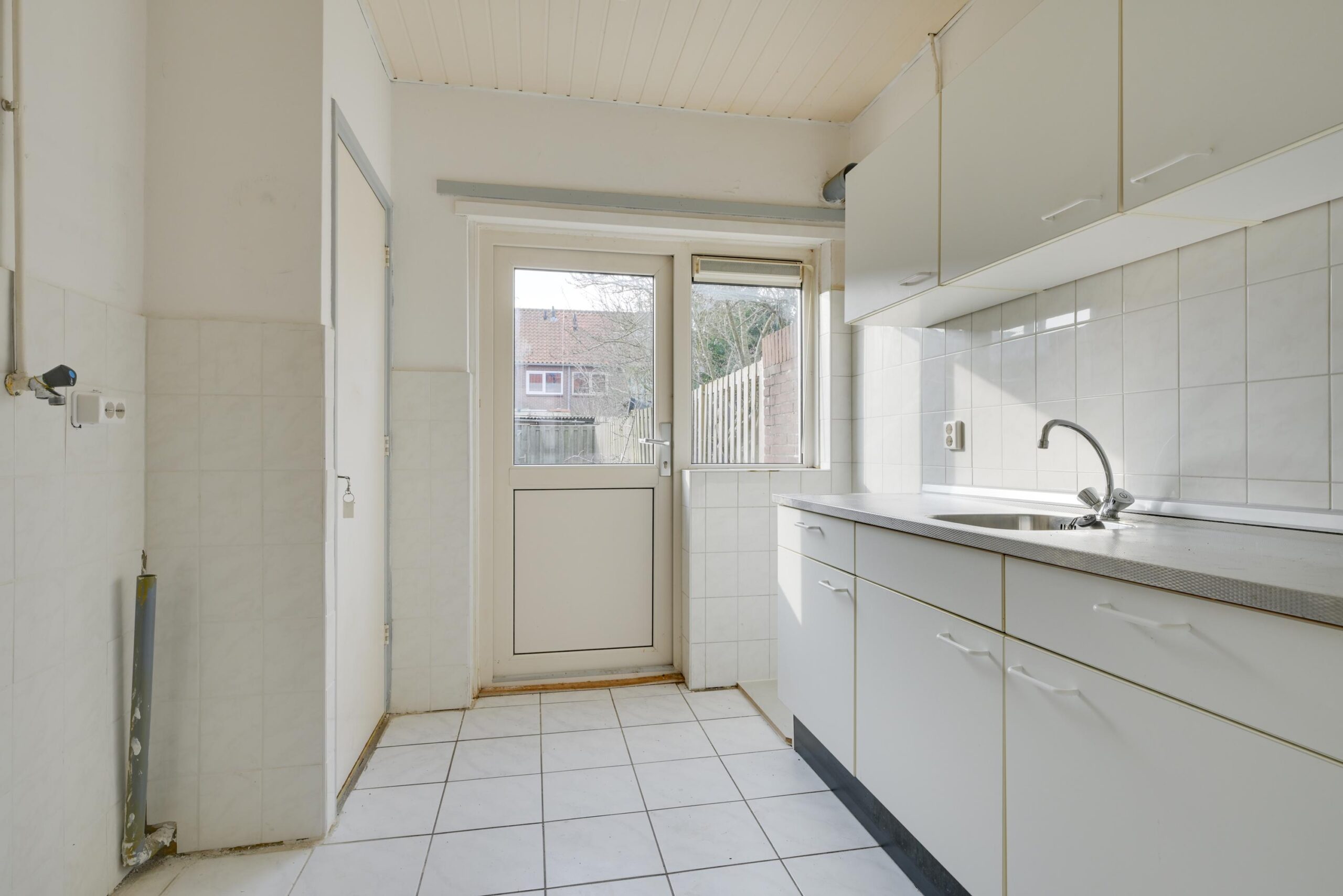 Je komt binnen in de hal met toilet, trapopgang en handige verdiepte trapkast. De doorzon woonkamer van ca. 22 m² is lekker licht en biedt via een deur toegang tot de tuin. De dichte keuken is eenvoudig, maar functioneel en heeft ook een deur naar buiten.