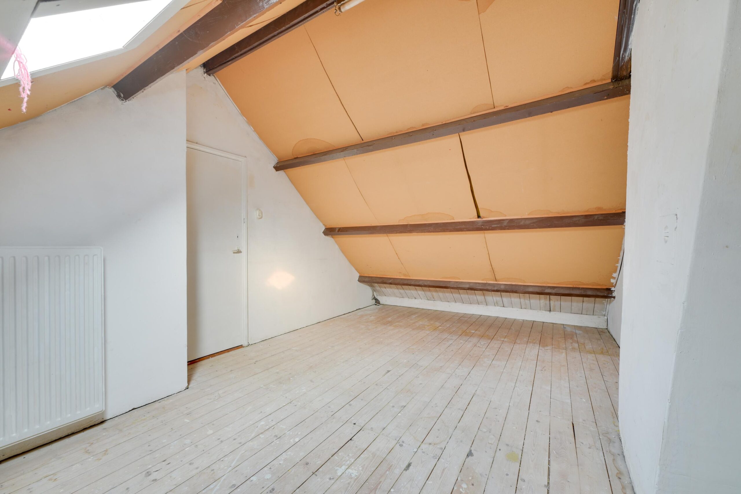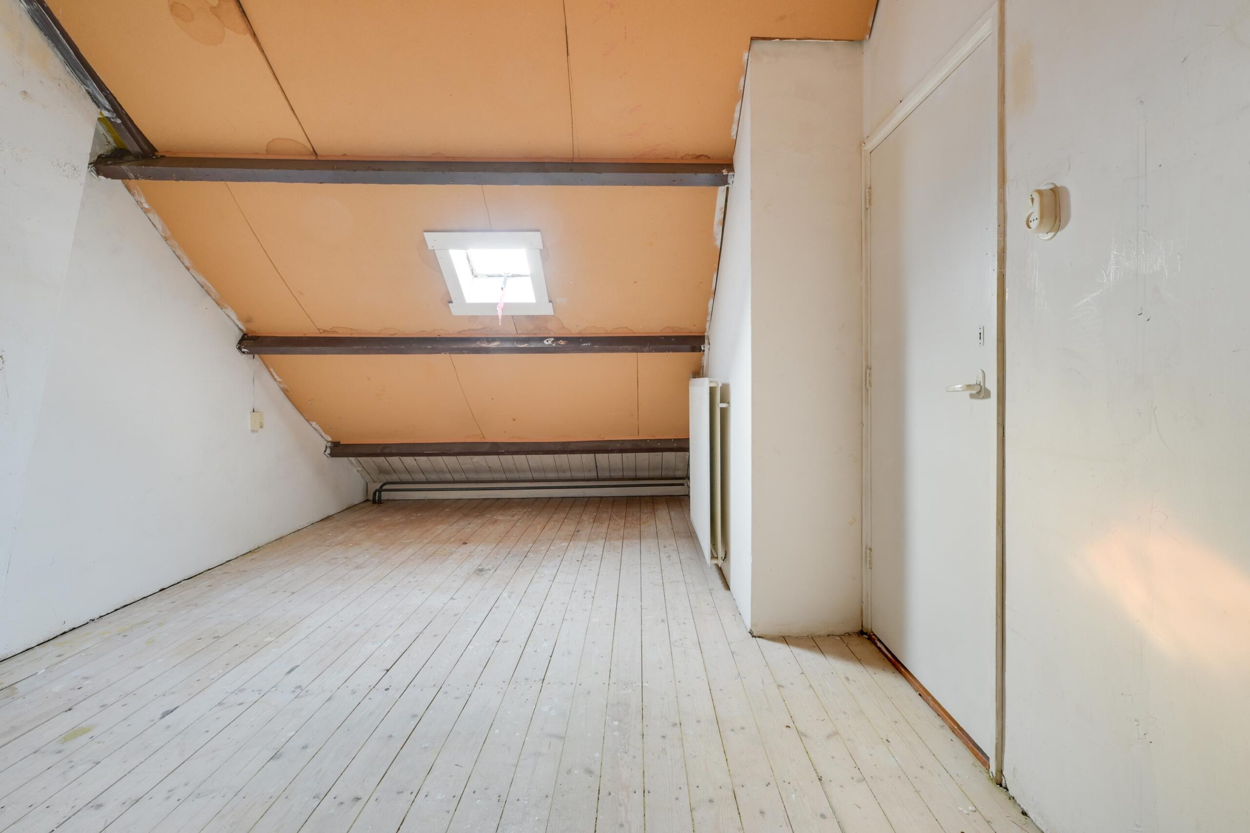 Een vaste trap brengt je naar de ruime voorzolder (ca. 7 m²) met cv-opstelling (2023) en veel opbergmogelijkheden. Hier bevindt zich ook een zolderkamer (ca. 11 m²) met dakraam, ideaal als vierde slaapkamer, werk- of hobbyruimte.