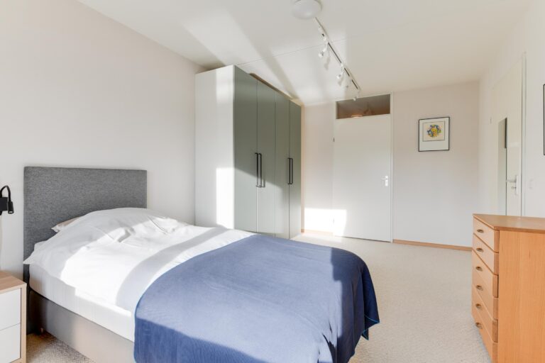 De woning heeft twee slaapkamers, waarvan de hoofdslaapkamer (ca. 17 m²) ruim genoeg is voor een tweepersoonsbed en een grote garderobekast. De tweede kamer (ca. 6,7 m²) is perfect als logeer-, werk- of hobbykamer. Vanuit de hoofdslaapkamer heeft u toegang tot de badkamer die is royaal met een inloopdouche, wastafel en er is ruimte genoeg voor een opbergkastje. De badkamer is voorzien van enkele aanpassingen voor mindervaliden, zoals een steunbeugel bij het toilet en bij de douche. Daarnaast is er een separaat toilet aanwezig. Een praktische berging/wasruimte met aansluitingen voor wasmachine en droger maakt het geheel compleet.