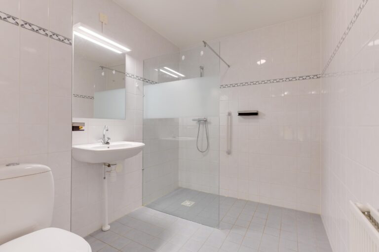 – De badkamer is voorzien van enkele aanpassingen voor mindervaliden, zoals een steunbeugel bij het toilet en een stoeltje onder de douche;