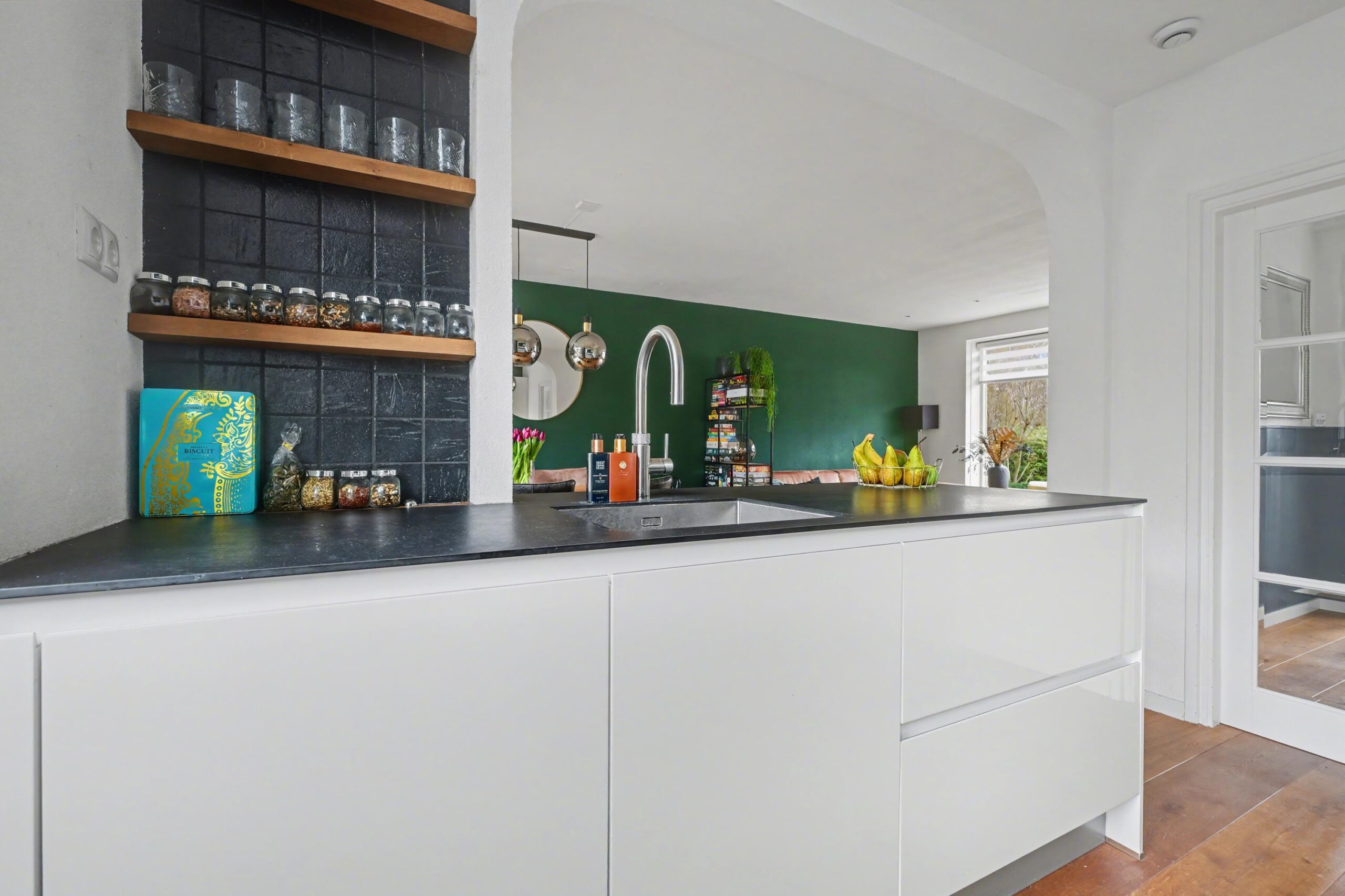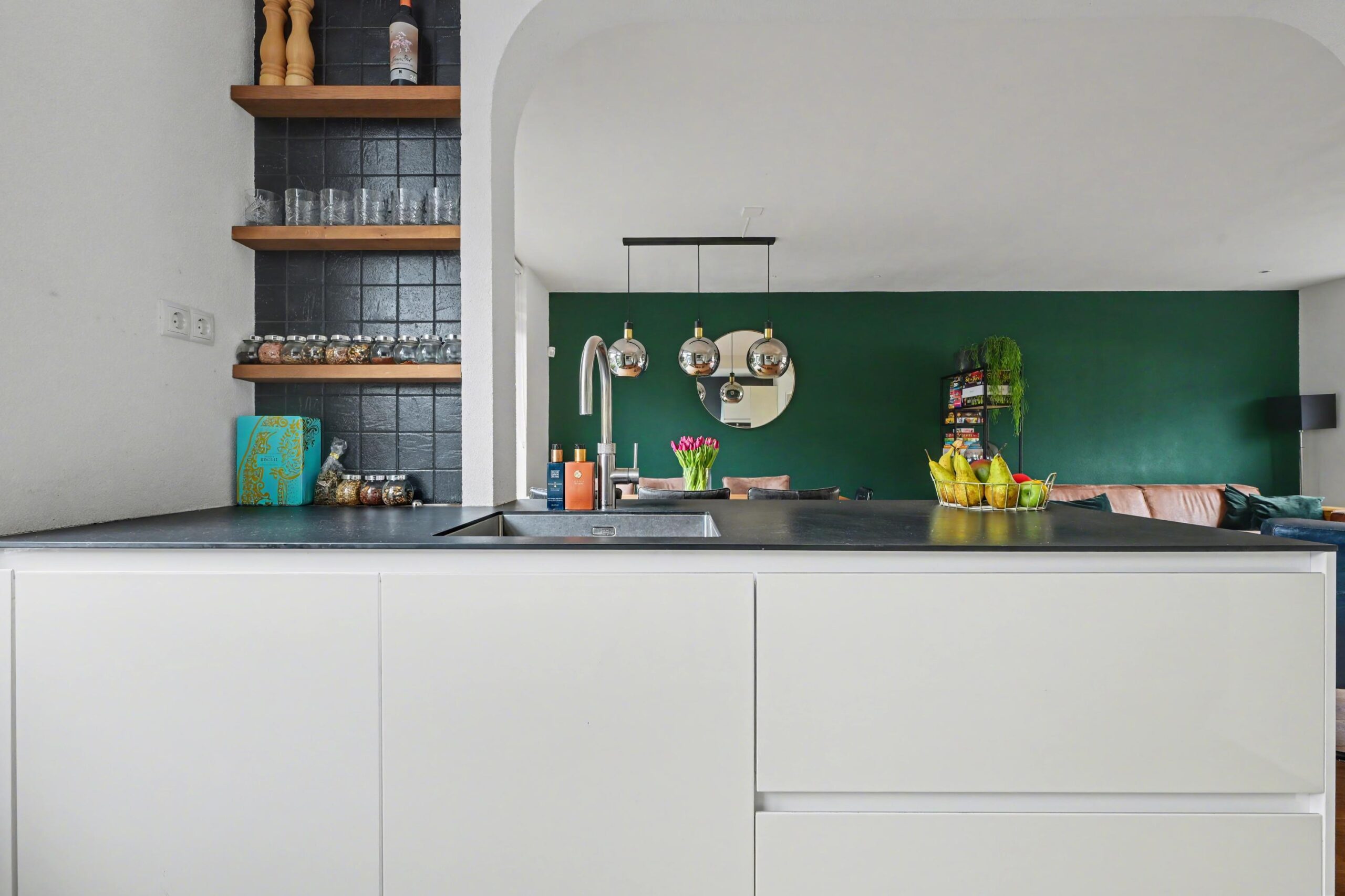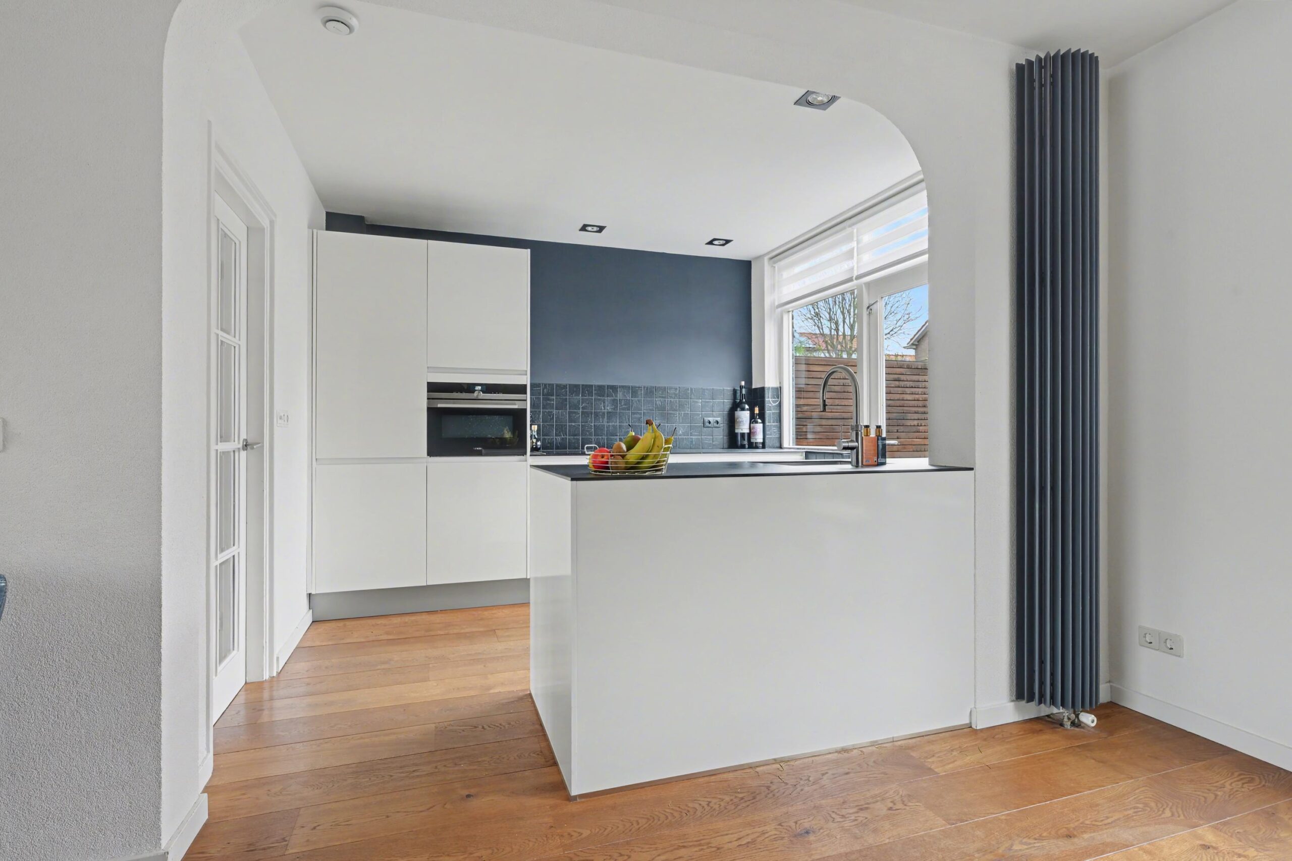 Bij binnenkomst wordt u verwelkomd in een sfeervolle ruime hal met modern toilet, trapkast en doorkijk naar de halfopen keuken. Deze is voorzien van diverse inbouwapparatuur zoals een Bora Kookplaat en een Quooker. Vanuit de keuken bereikt u de lichte woonkamer met eikenhouten vloer.