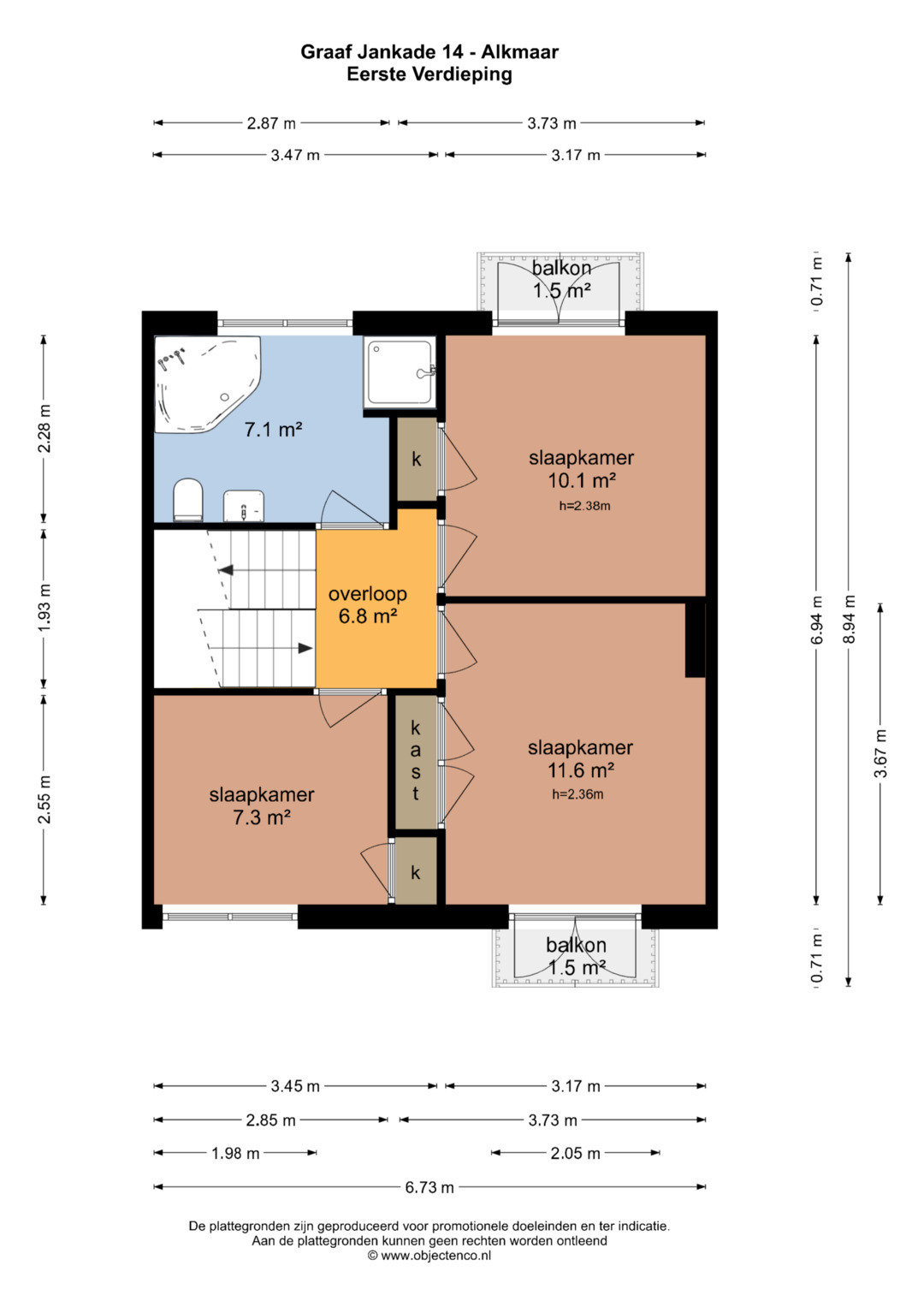 Op de eerste verdieping bevinden zich drie fraaie slaapkamers met inbouwkasten. Twee van de slaapkamers beschikken over een aangrenzend balkon.