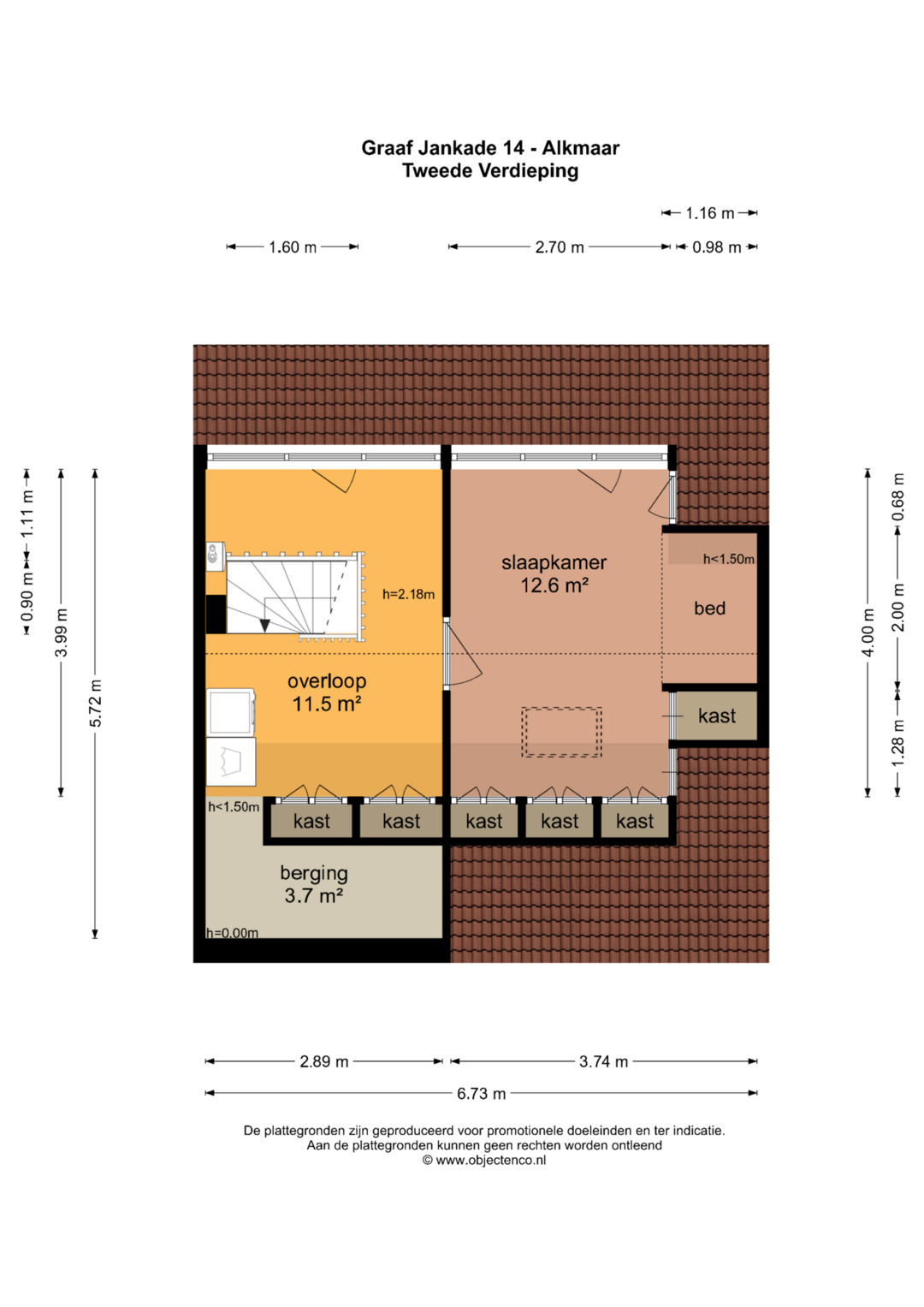 Via een vaste trap komt u op de tweede verdieping met ruime overloop met dakkapel, opstelling C.V.-ketel, was- en droogruimte, zolderberging en praktische vaste kasten. Ook de vierde slaapkamer treft u hier, voorzien van vaste kasten, dakkapel en dakraam.