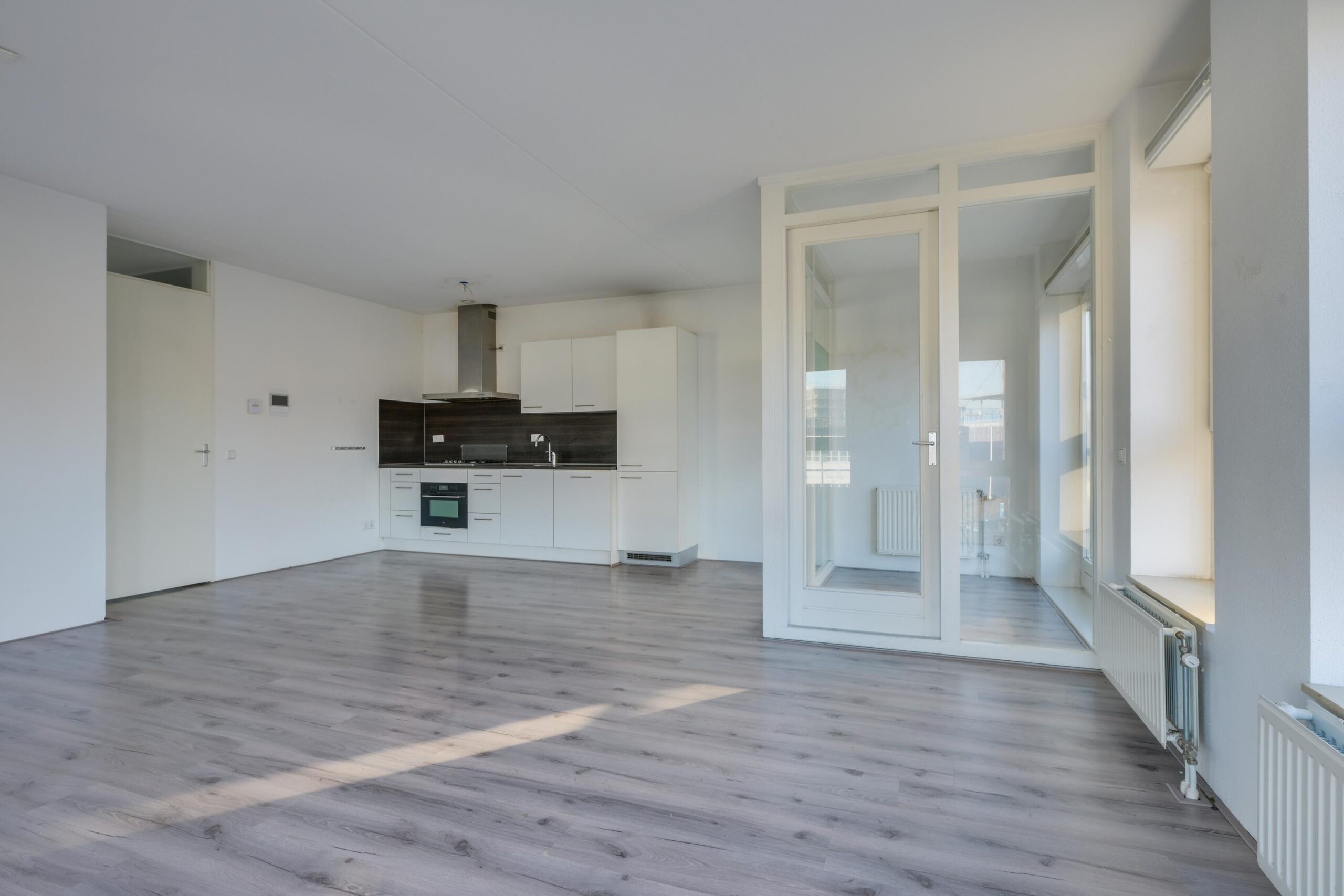 De lichte en royale woonkamer (ca. 30 m²) biedt volop indelingsmogelijkheden en vormt samen met de open keuken (ca. 6 m²) een prettige leefruimte. De keuken is uitgerust met diverse inbouwapparatuur, waaronder een koel-vriescombinatie, oven, vaatwasser, gaskookplaat en afzuigkap. Vanuit de woonkamer is er toegang tot de serre. Verder beschikt het appartement over een praktische wasruimte, een separaat toilet en een berging met de cv-installatie en mechanische ventilatie.