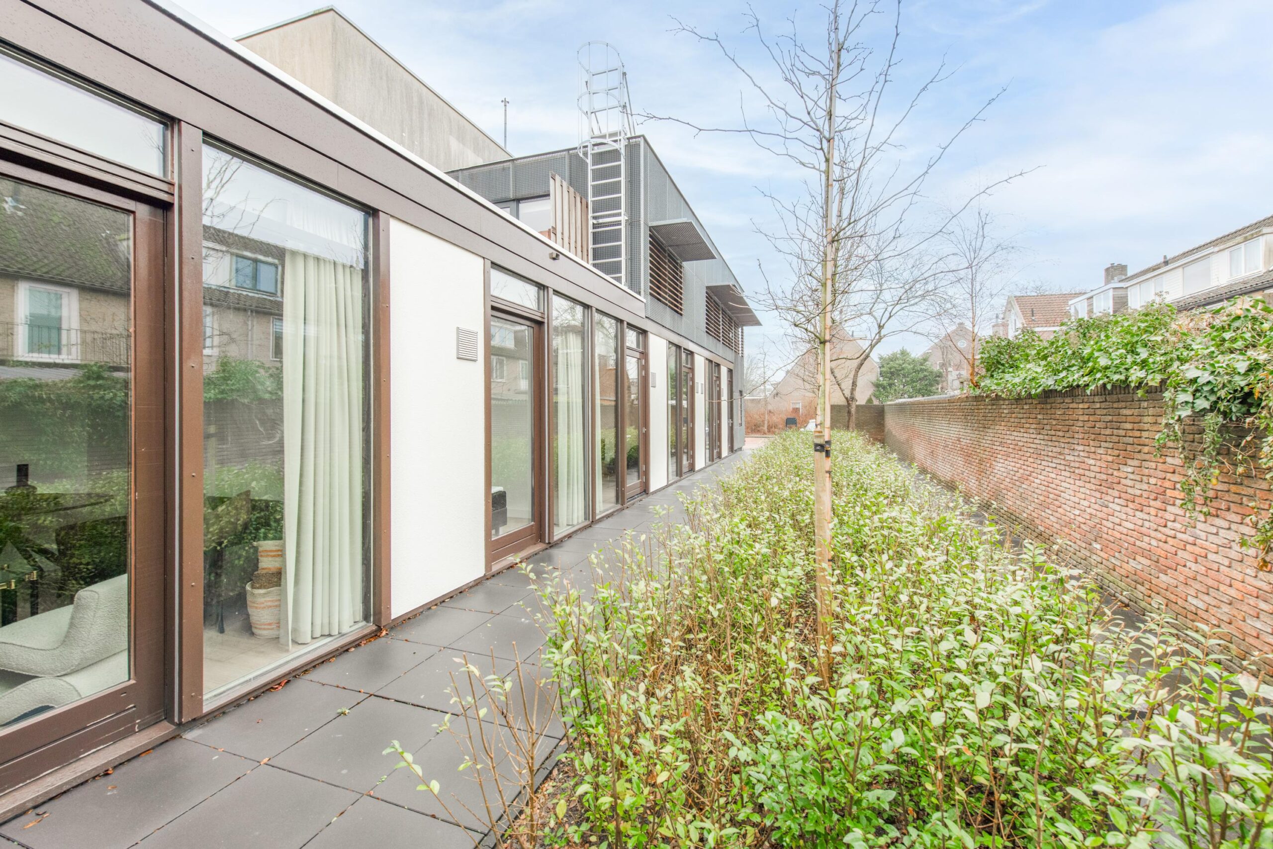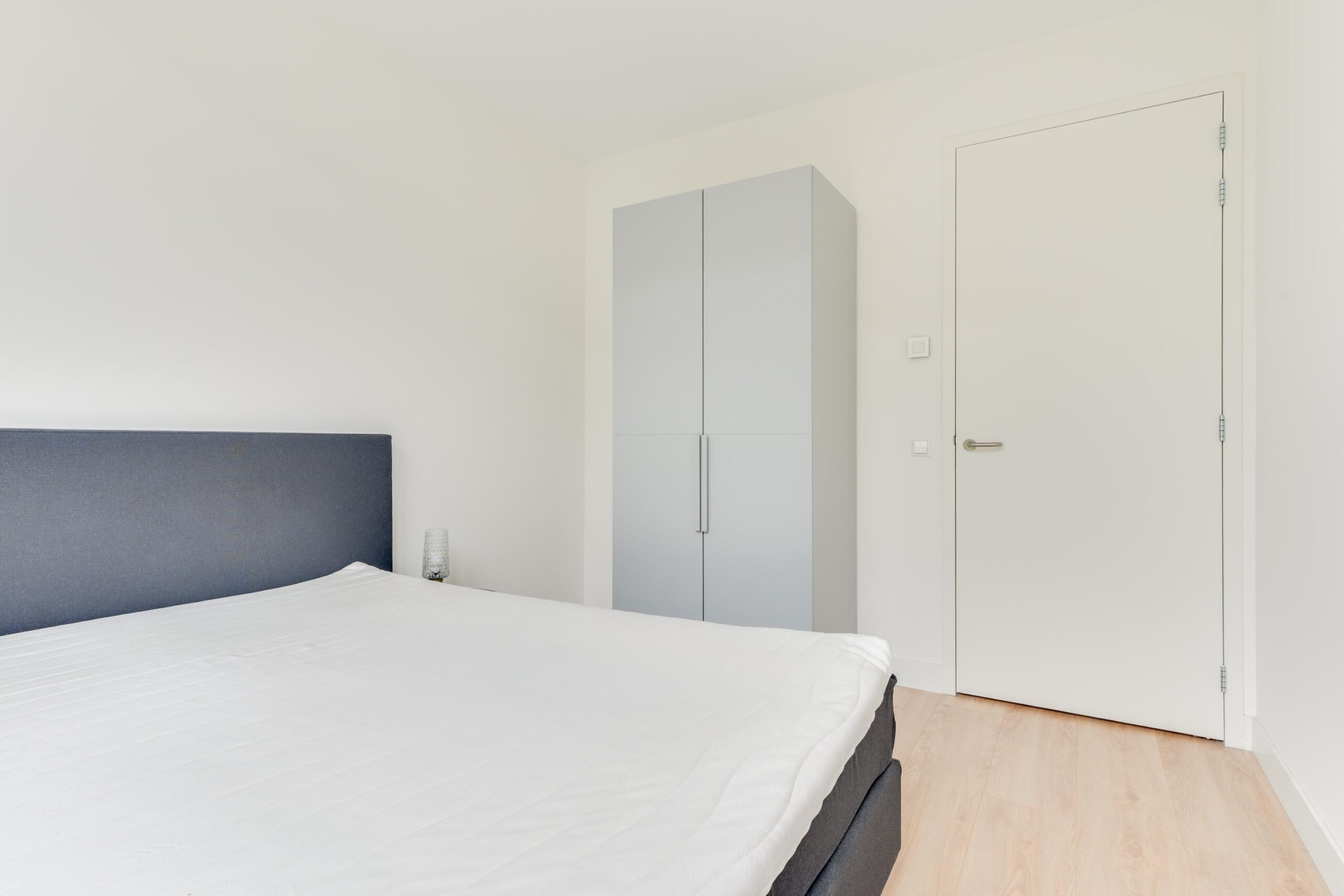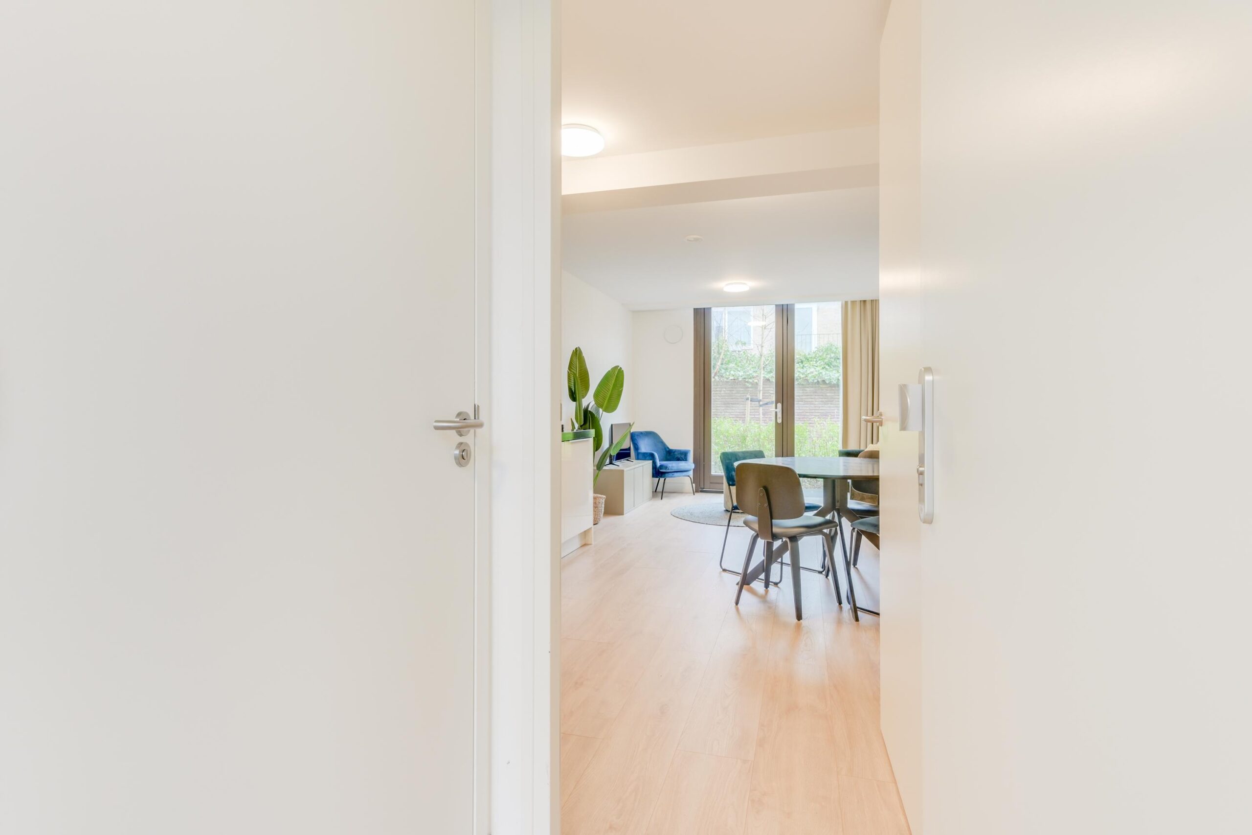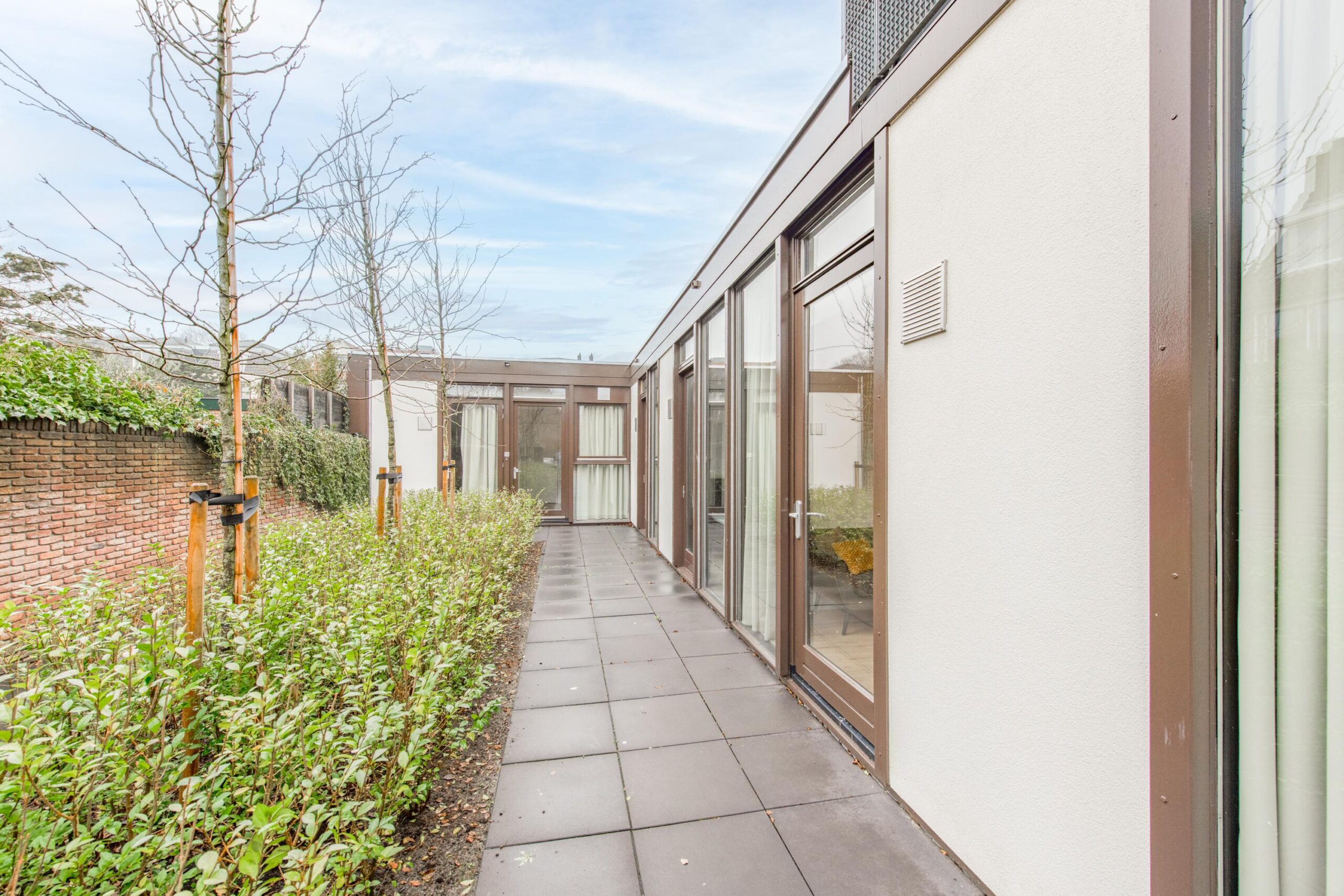 Vanuit de woonkamer bereikt u via een tweede hal van ca. 4,5m² de twee slaapkamers van ca. 10m² en 11m². De slaapkamer aan de voorzijde beschikt over een raam tot aan de vloer, wat zorgt voor veel lichtinval. De achterste slaapkamer heeft een deur naar de binnentuin en biedt in de zomer een heerlijk buitengevoel. Ook hier zorgen de hoge kozijnen voor extra licht en een open uitstraling.