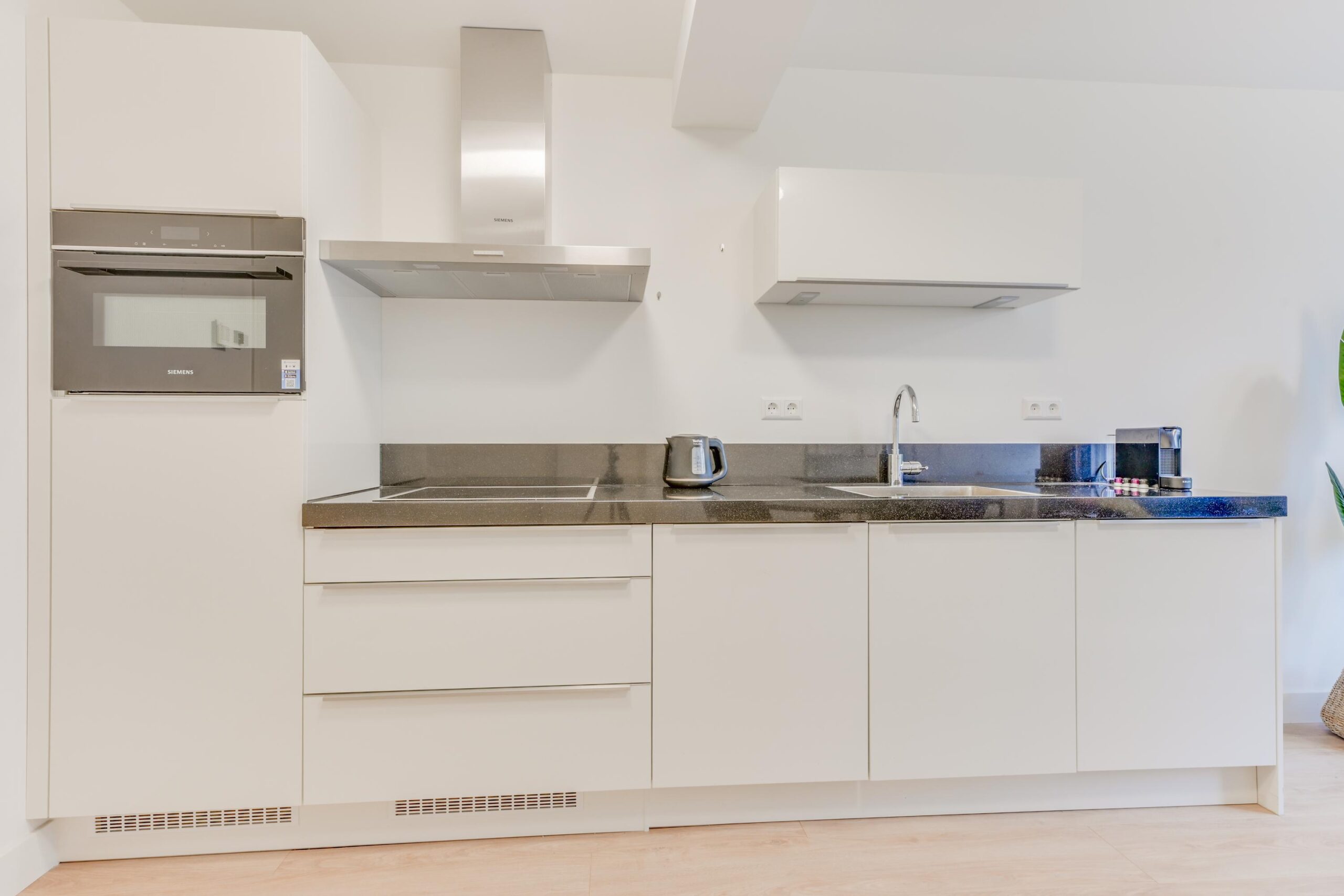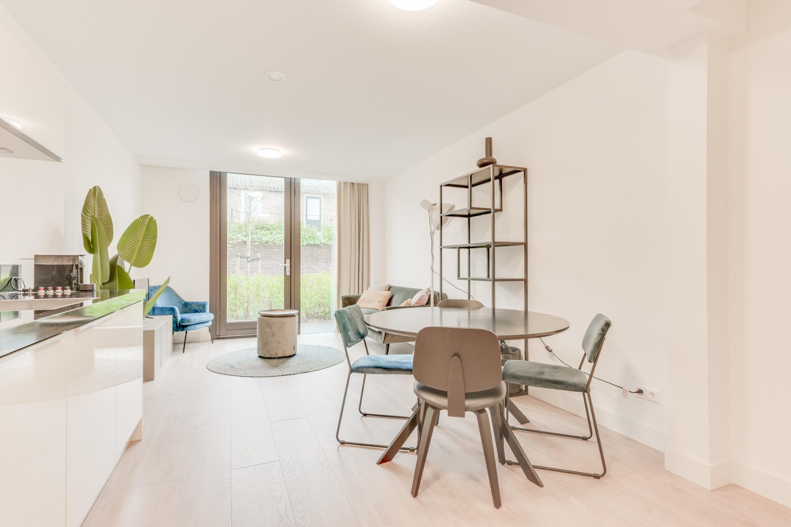 Bij binnenkomst gaat u via de entree naar de ruime en sfeervolle woonkamer van ca. 23m². De open keuken vormt een mooi geheel met de woonkamer en draagt bij aan de gezellige sfeer. Het keukenblad van natuursteen en de ingebouwde combimagnetron geven de keuken een luxe uitstraling. Daarnaast is de keuken voorzien van diverse inbouwapparatuur, waaronder een inductiekookplaat, afzuigkap en koel-vriescombinatie. Dankzij de grote openslaande deuren naar de gezamenlijke binnentuin geniet u hier van veel daglicht en een prettig uitzicht op de groene beplanting.