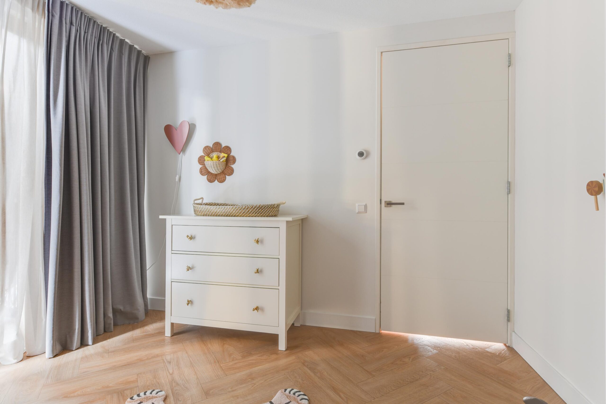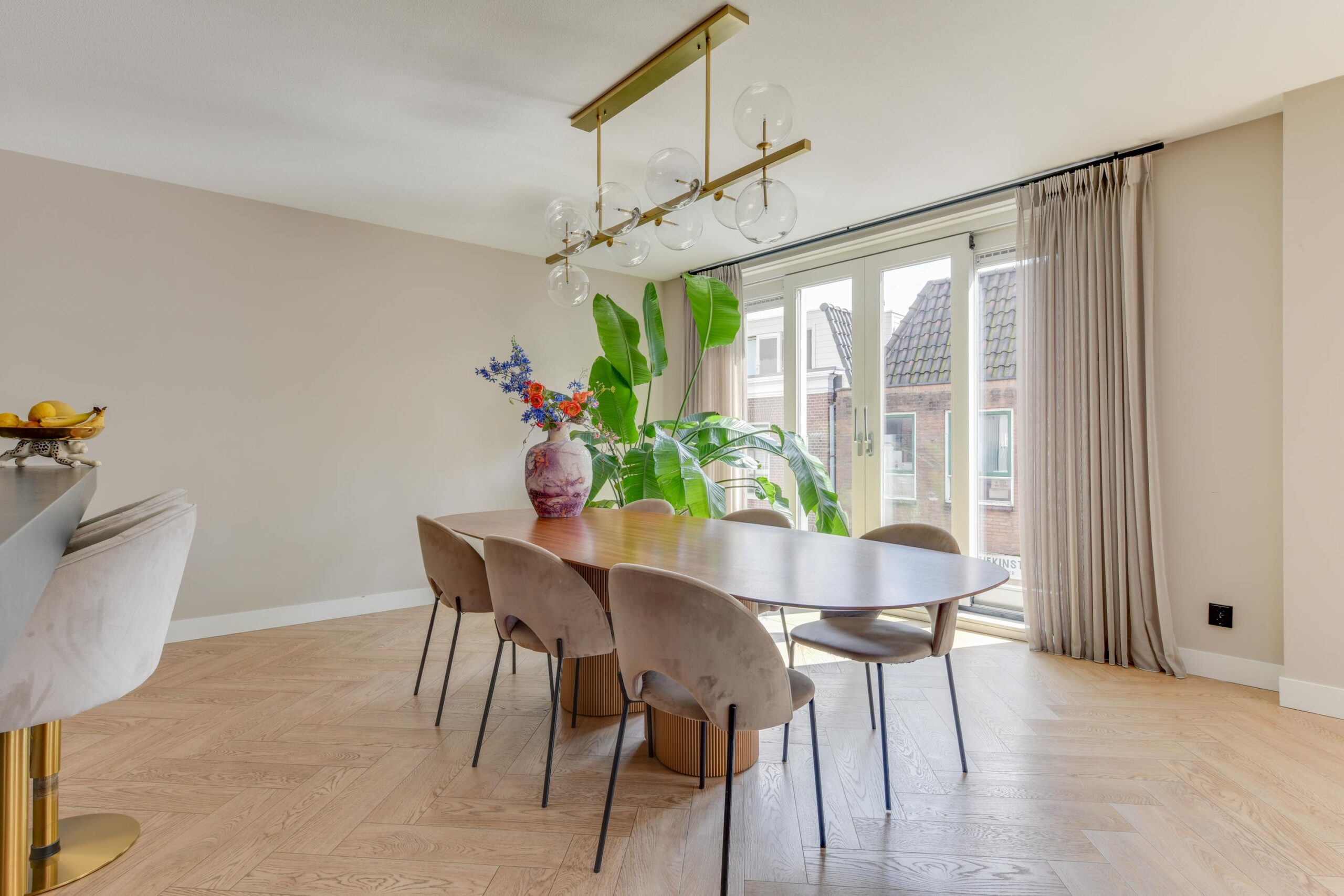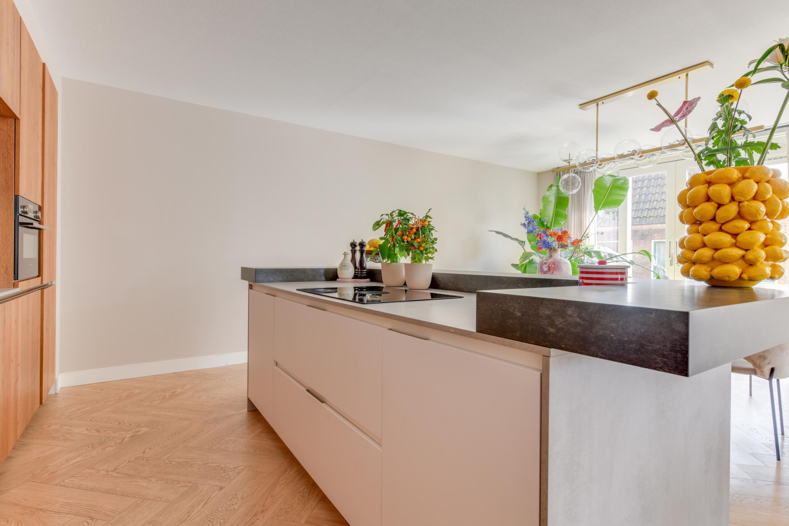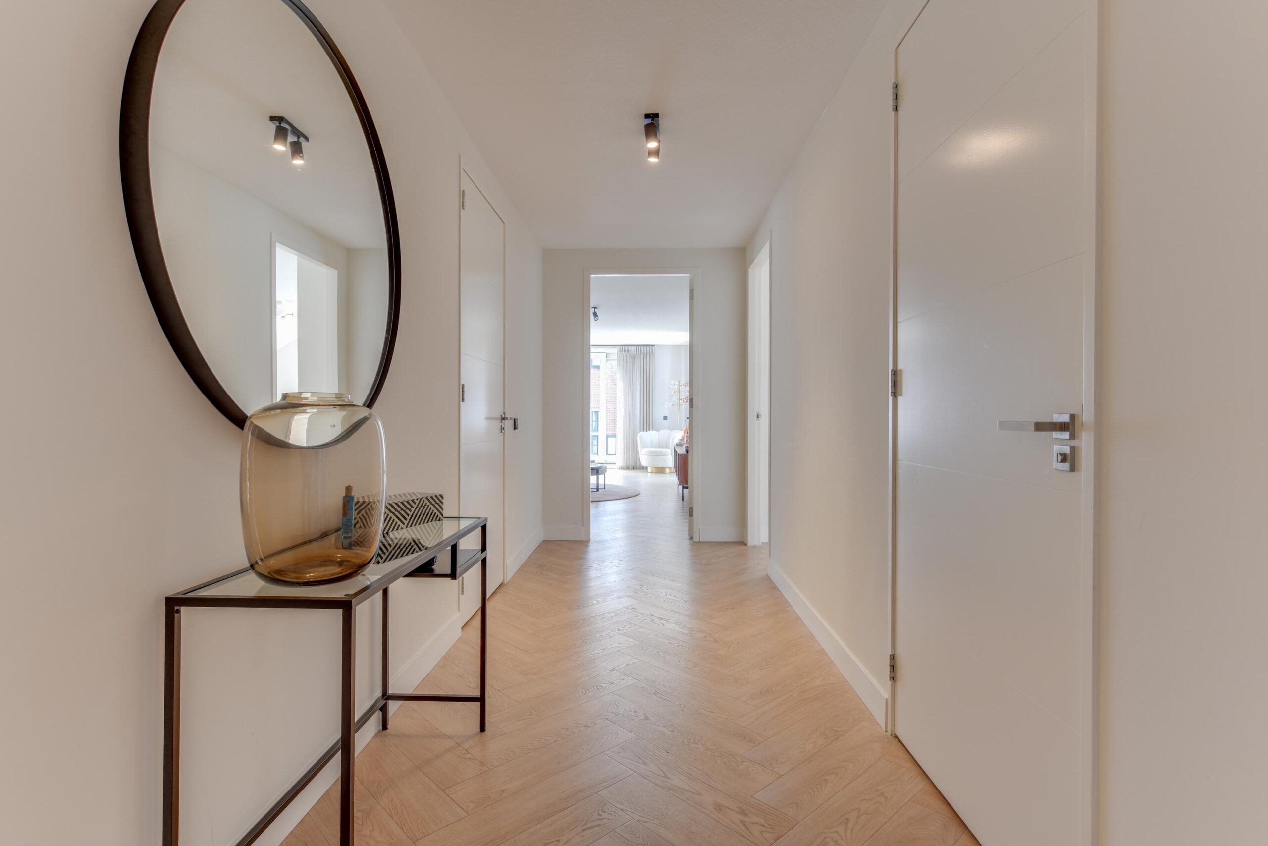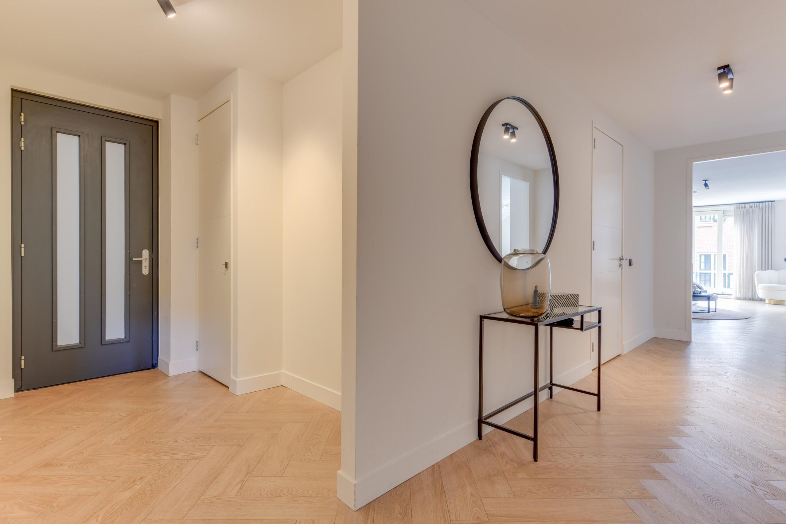 – Hoge plafonds en visgraat vloer;