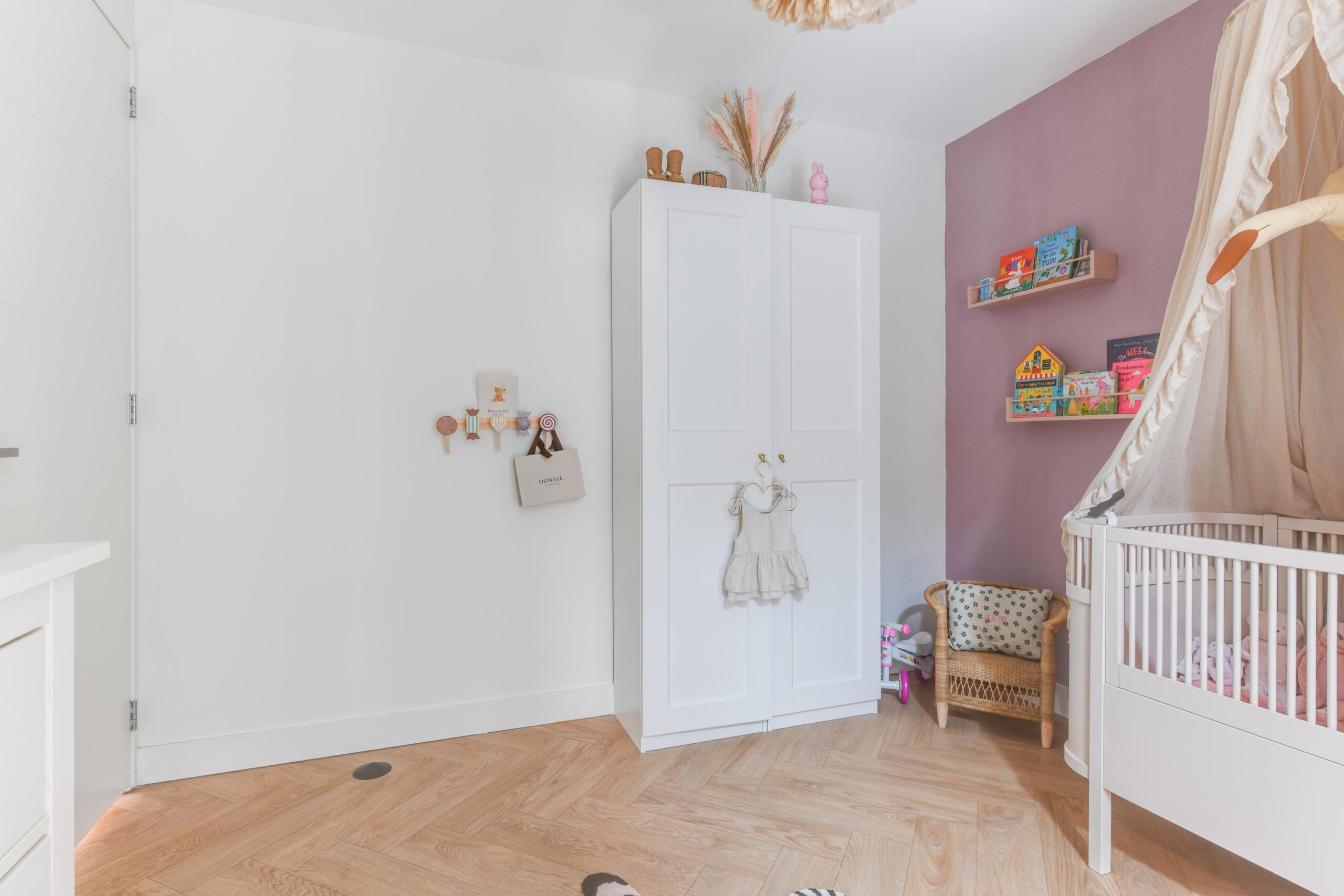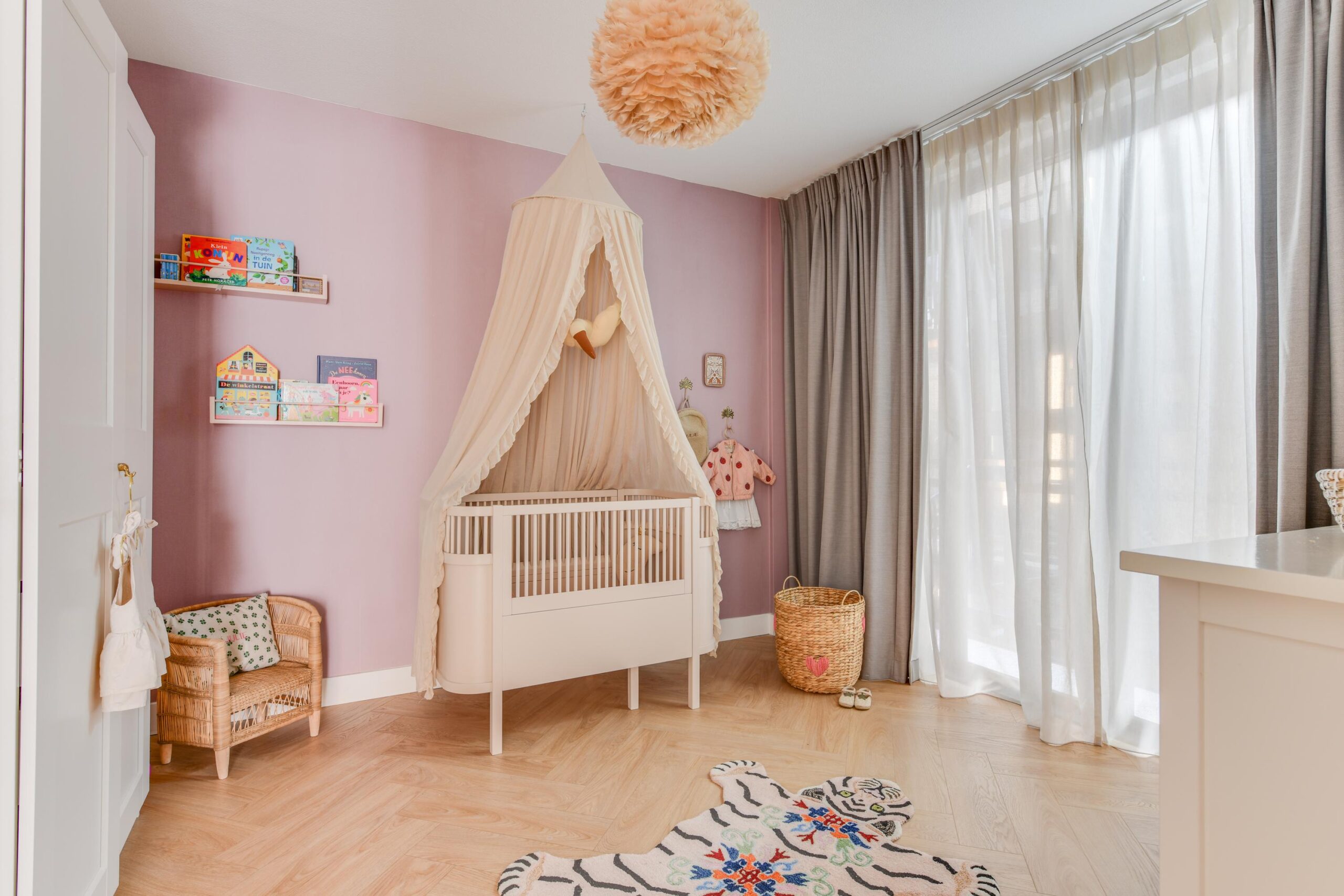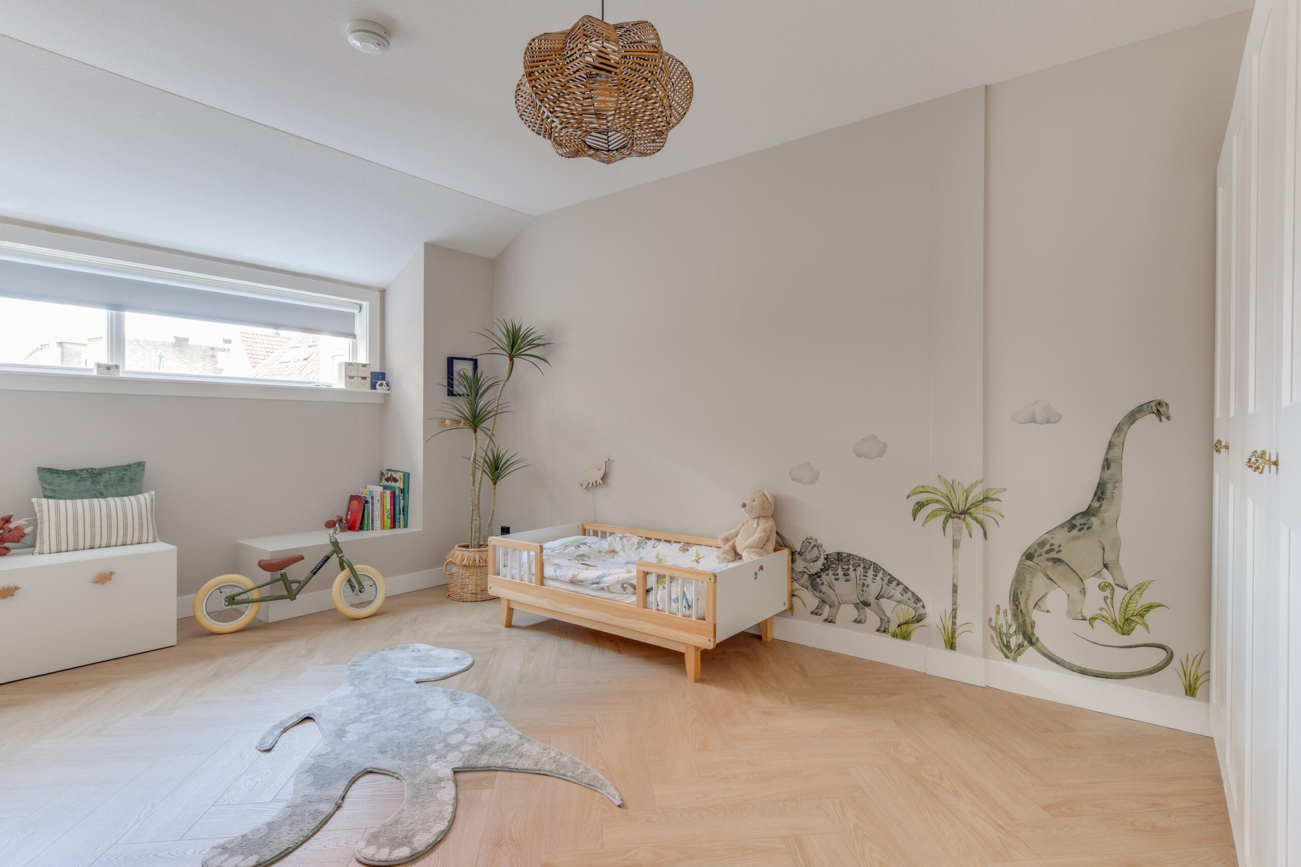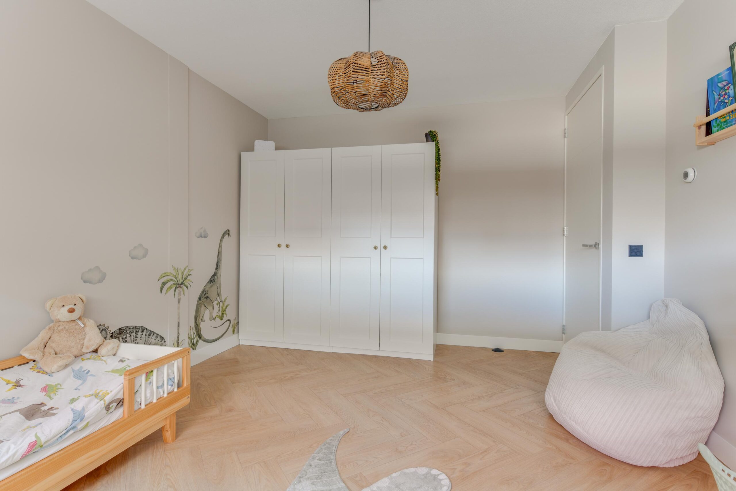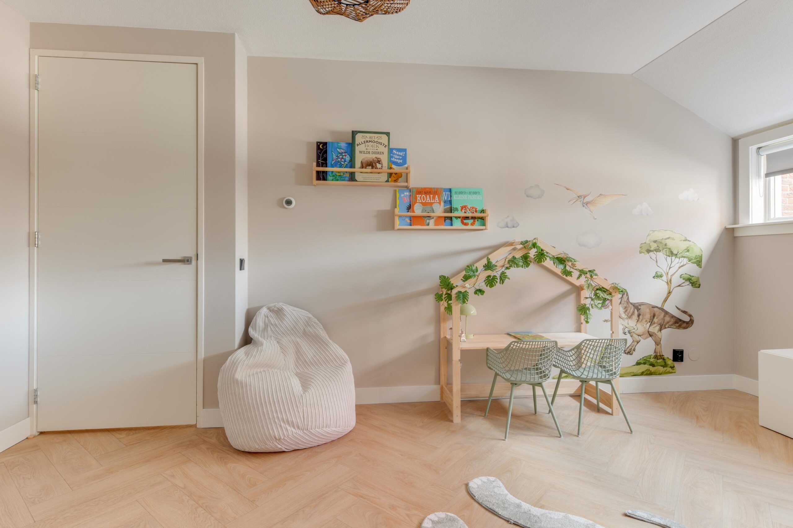 – Hoge plafonds en visgraat vloer;