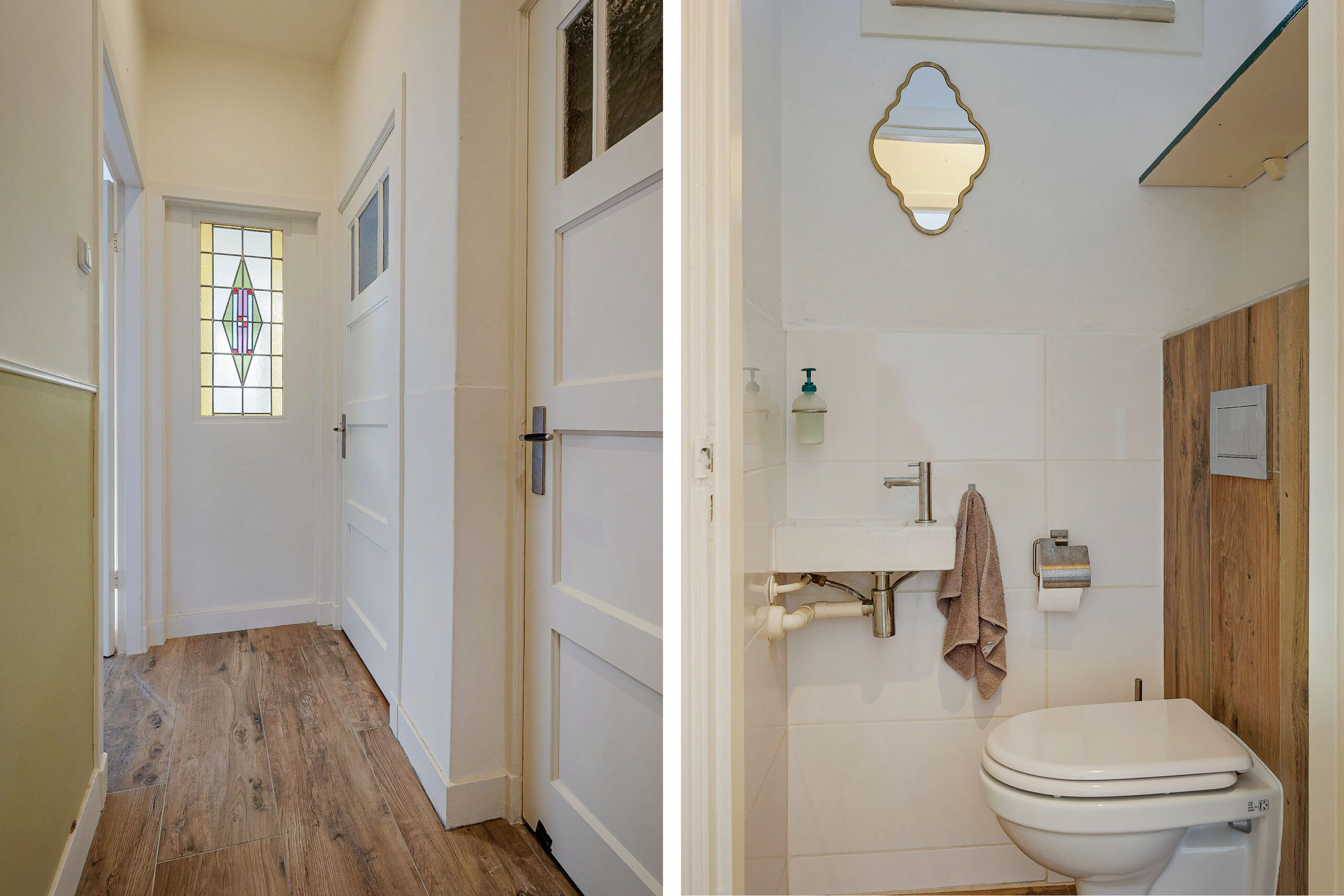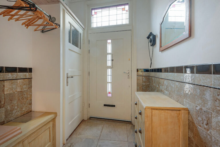 Via de entree/hal (ca. 6 m²) met garderoberuimte kom je in de sfeervolle woonkamer (ca. 33 m²) met plavuizen vloer en vloerverwarming. De ruimte biedt plek voor een gezellige eethoek en heeft nog enkele originele glas-in-loodramen die het geheel extra karakter geven. De halfopen keuken is voorzien van diverse inbouwapparatuur en heeft zowel openslaande deuren als een extra loopdeur naar de tuin.