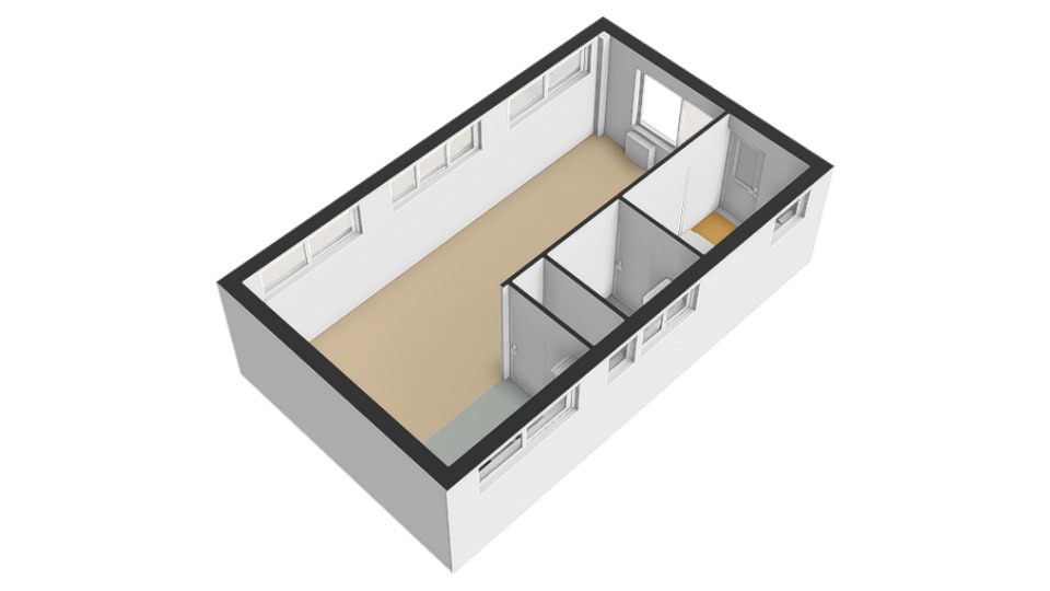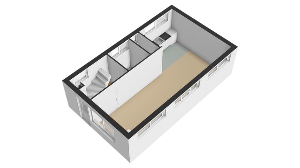• Woonkamer van ca. 25 m² met open verbinding naar de keuken;