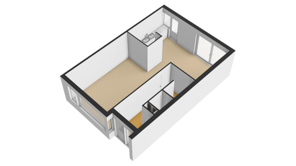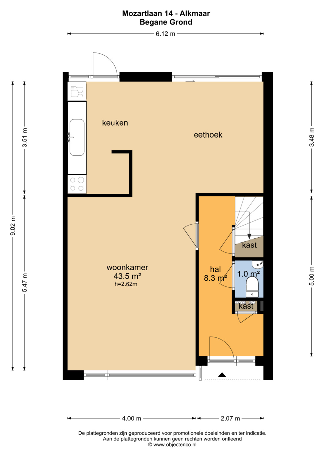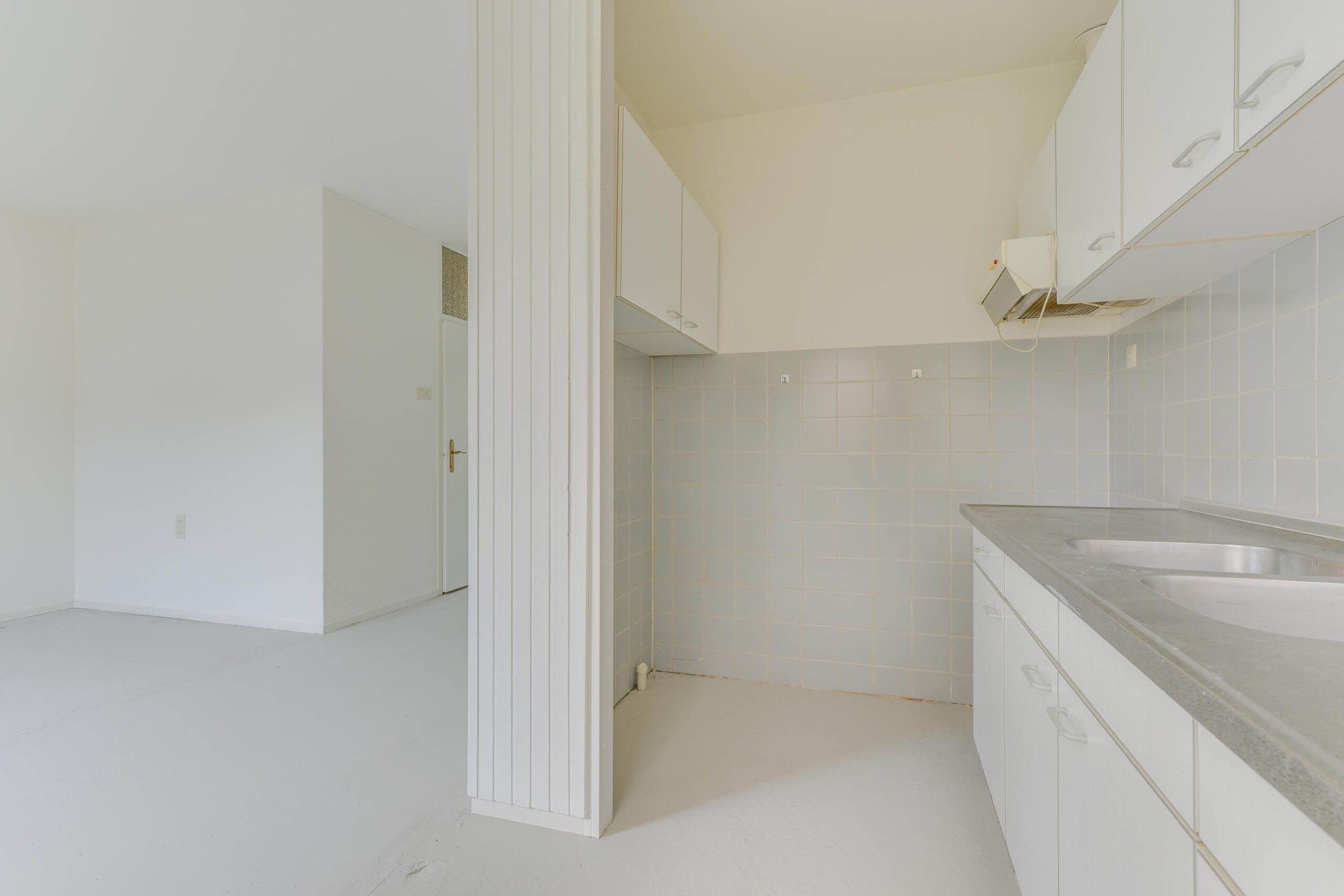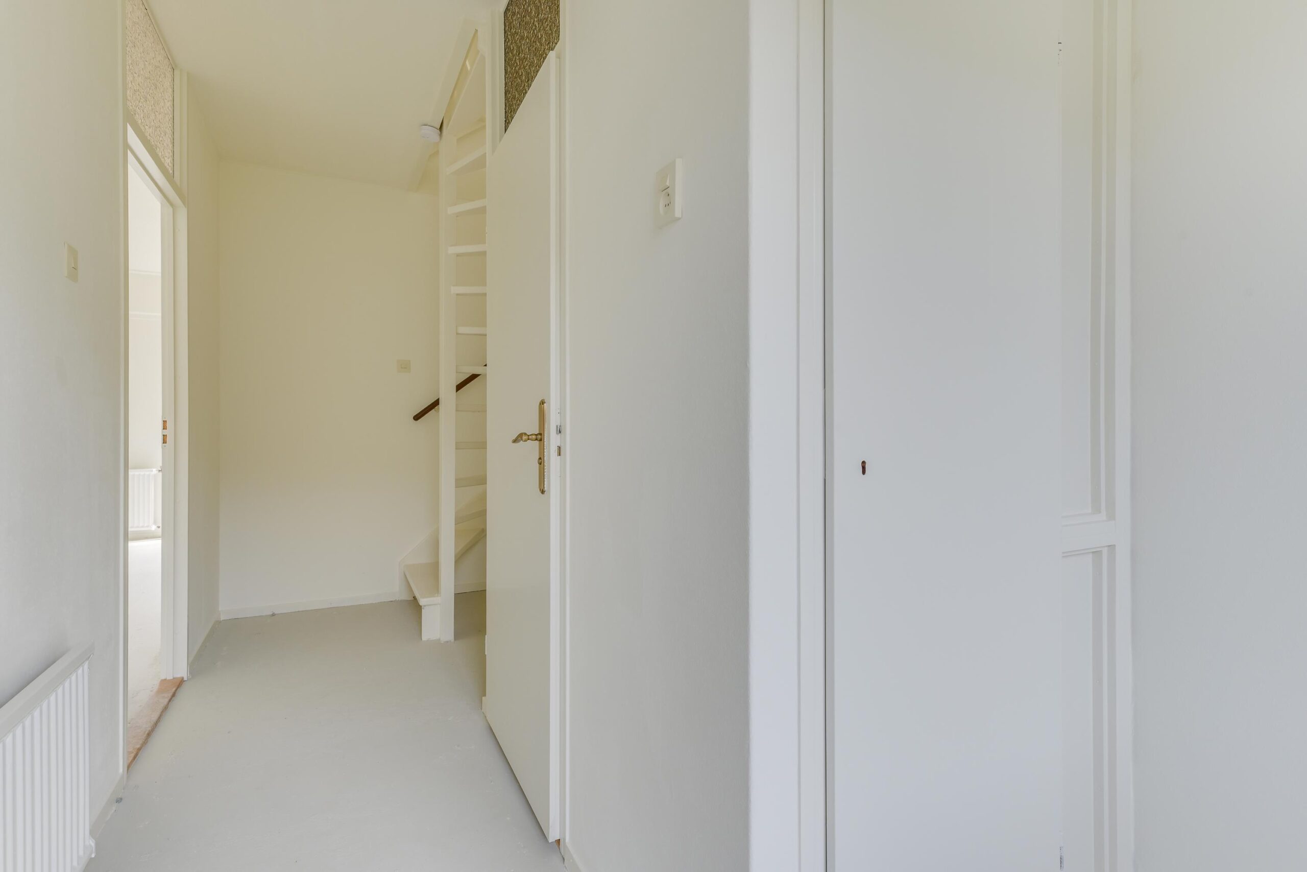 Via de hal met toilet en trapopgang, inclusief praktische kast eronder, betreed je de lichte woonkamer (ca. 43,5 m²). De woonkamer is eenvoudig op te delen in een zit- en eetgedeelte en biedt via de schuifpui toegang tot de achtertuin. De halfopen keuken, eveneens met toegang tot de tuin, maakt het geheel compleet.