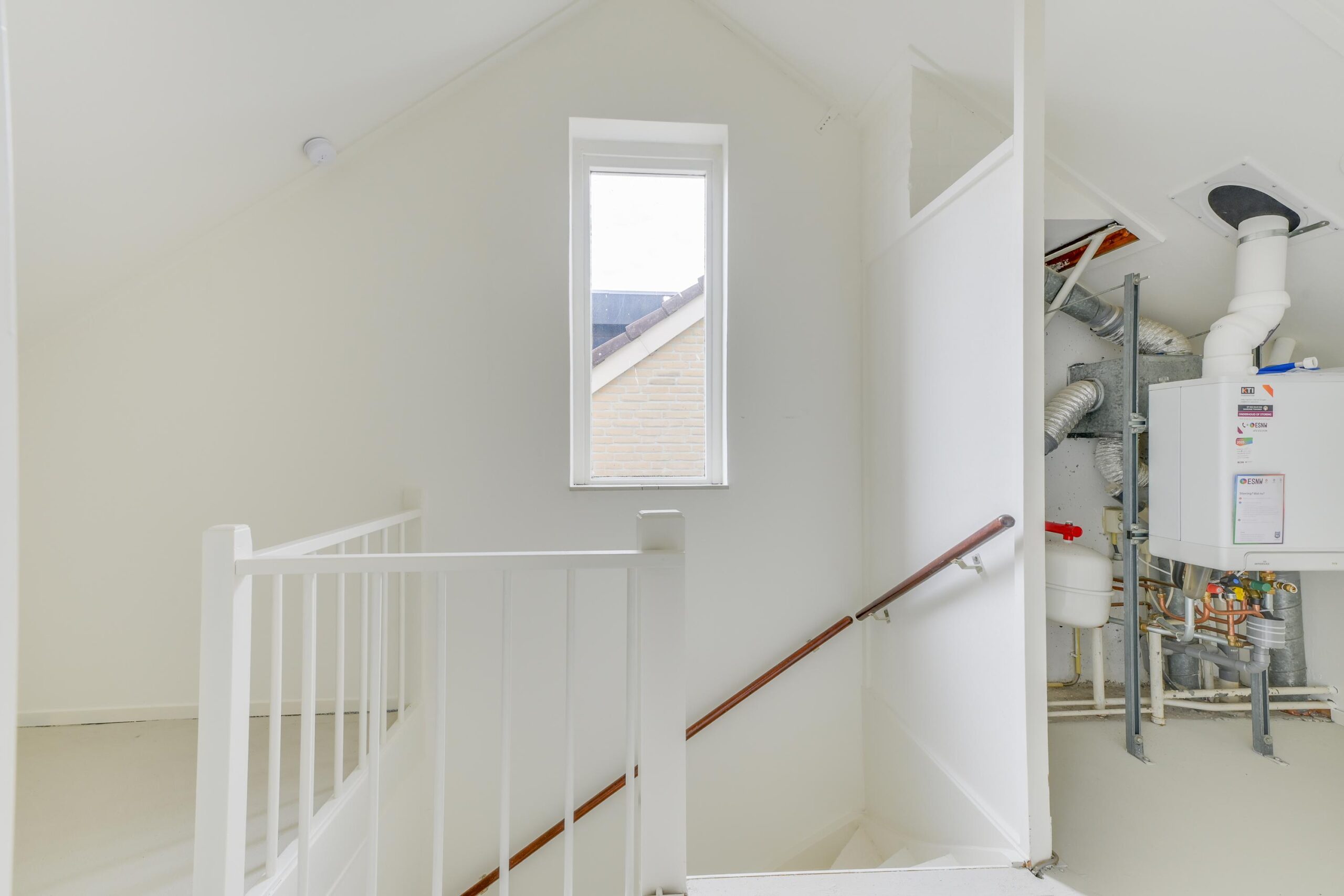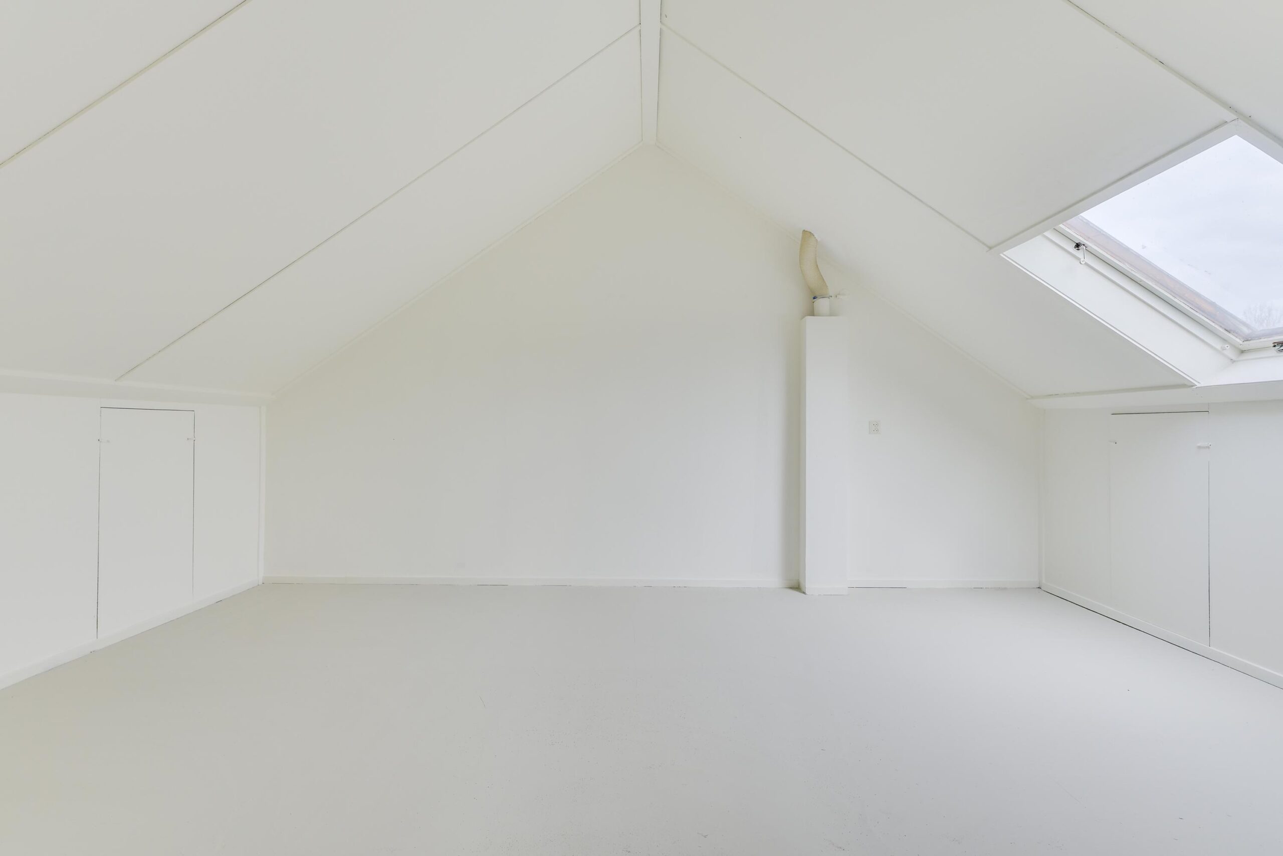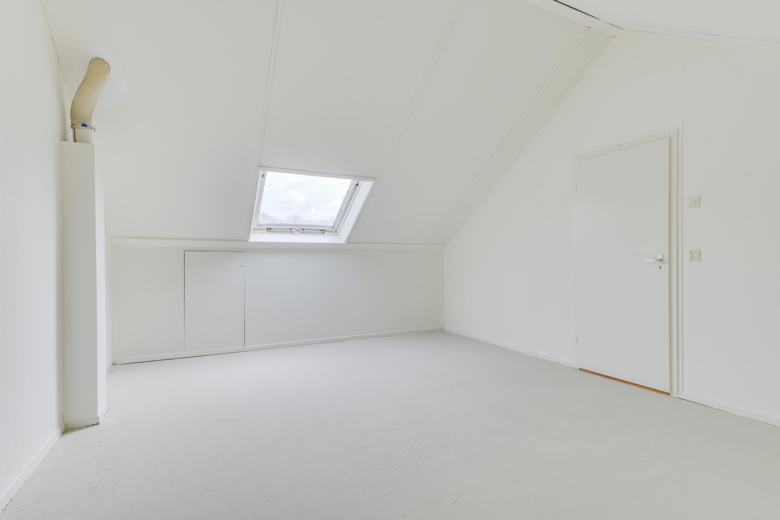 De ruime, lichte overloop (ca. 10,5 m²) biedt toegang tot een zolderslaapkamer en huisvest de C.V.-ketel. De zolderslaapkamer zelf is ca. 22 m² groot en bevindt zich onder de schuine kap, voorzien van een dakraam voor extra lichtinval.