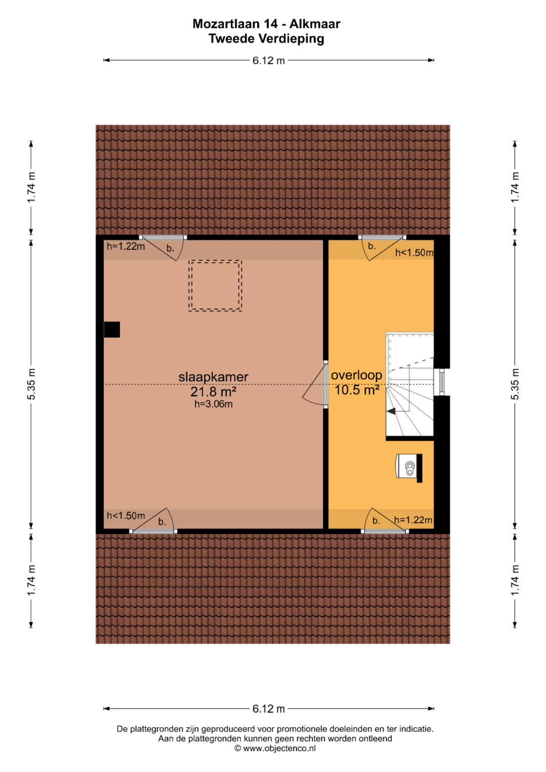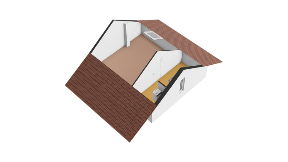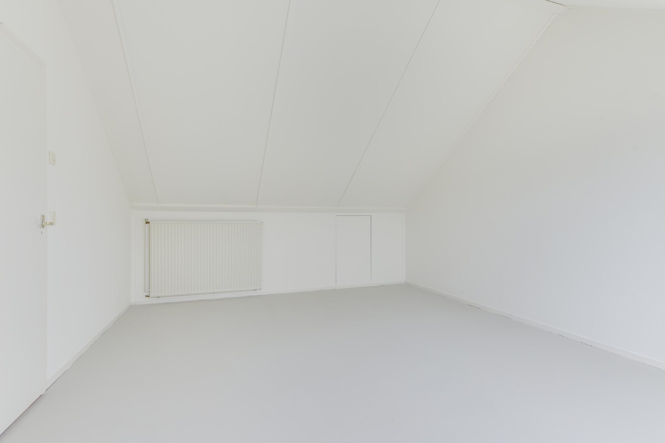 De ruime, lichte overloop (ca. 10,5 m²) biedt toegang tot een zolderslaapkamer en huisvest de C.V.-ketel. De zolderslaapkamer zelf is ca. 22 m² groot en bevindt zich onder de schuine kap, voorzien van een dakraam voor extra lichtinval.