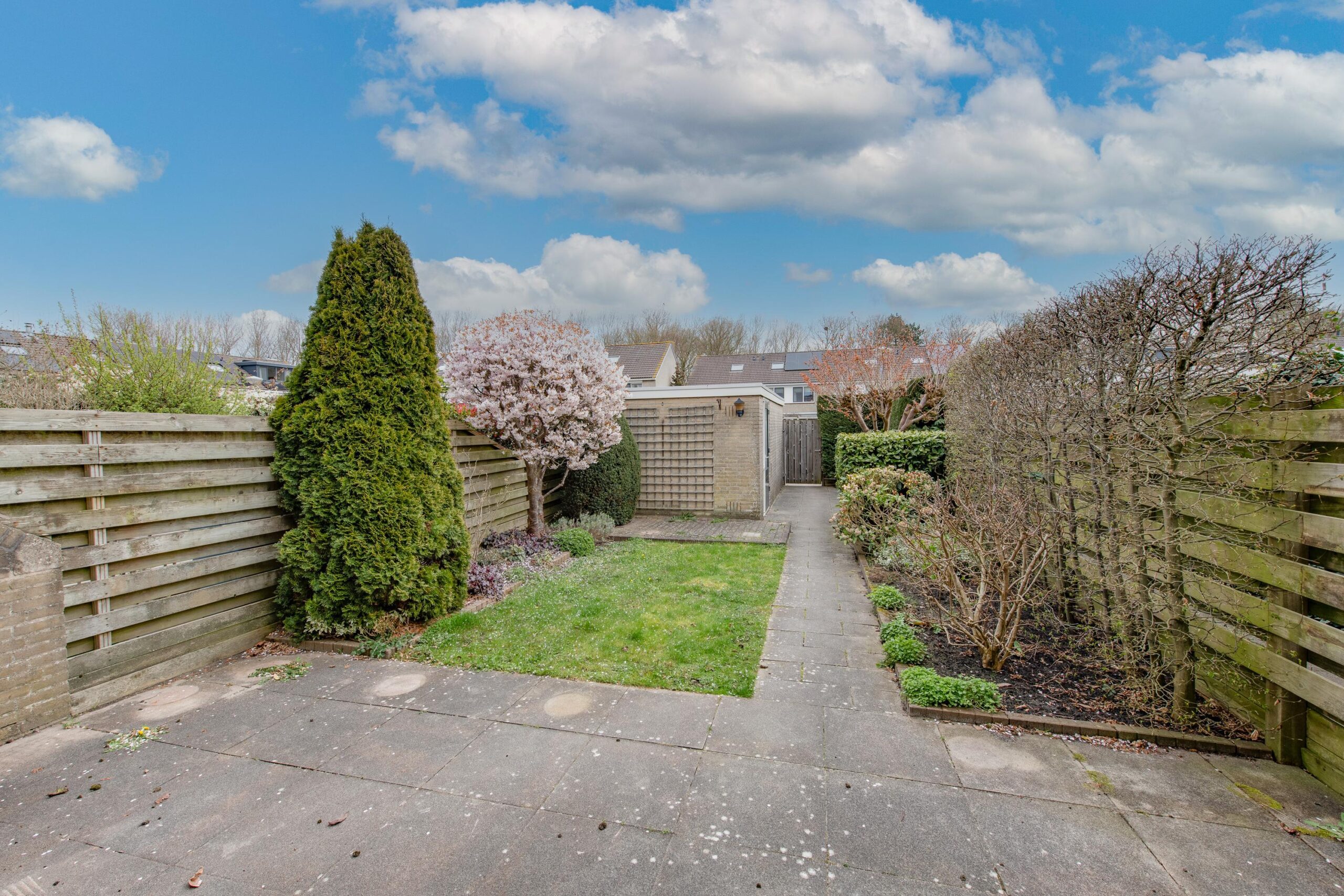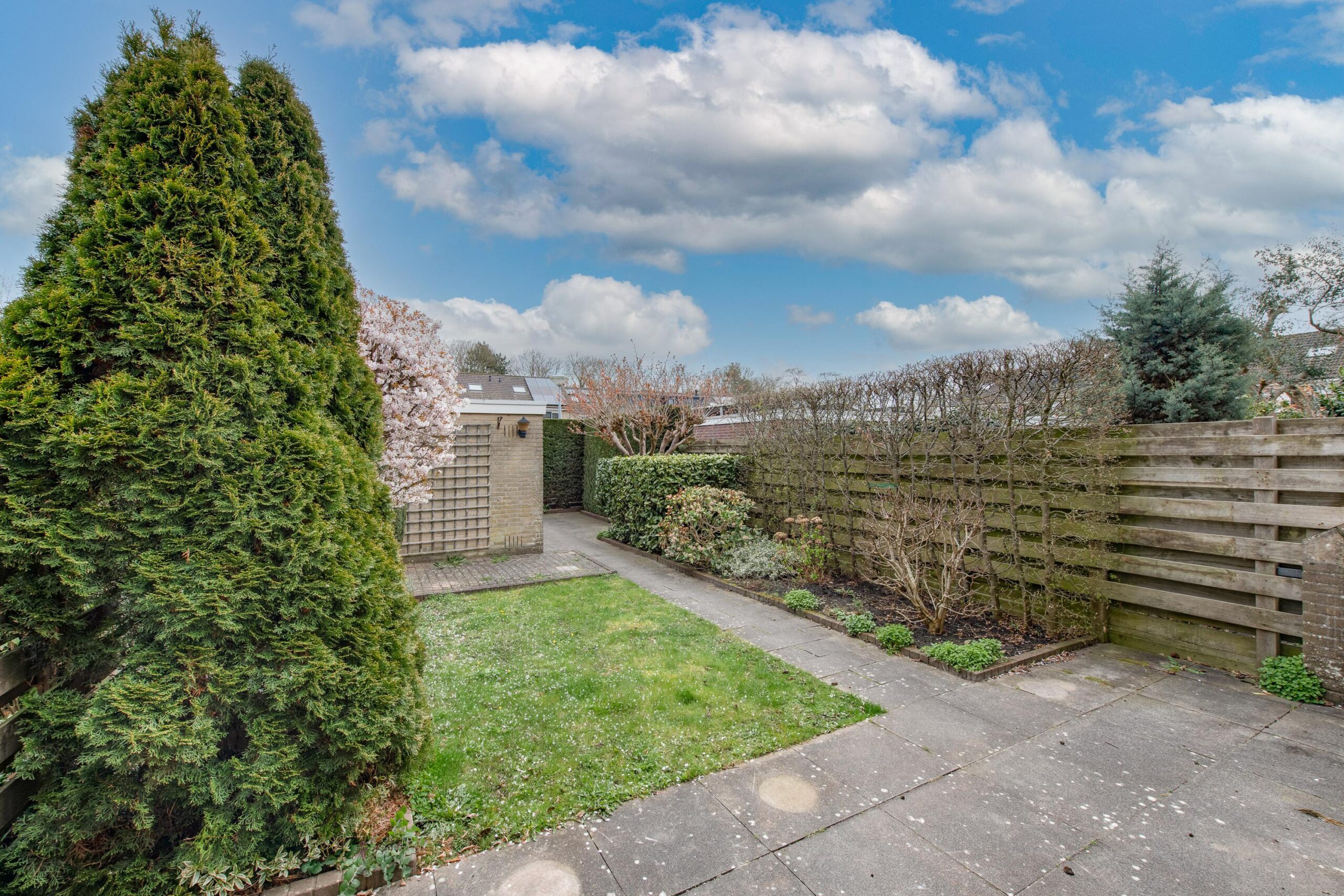 De voortuin (ca. 38,5 m²) ligt op het westen en biedt privacy én zon op warme dagen. De diepe achtertuin (ca. 114 m²) ligt op het oosten, ideaal om hier in de zomer verkoeling te zoeken. Achterin de tuin vind je een stenen garage en achterom.