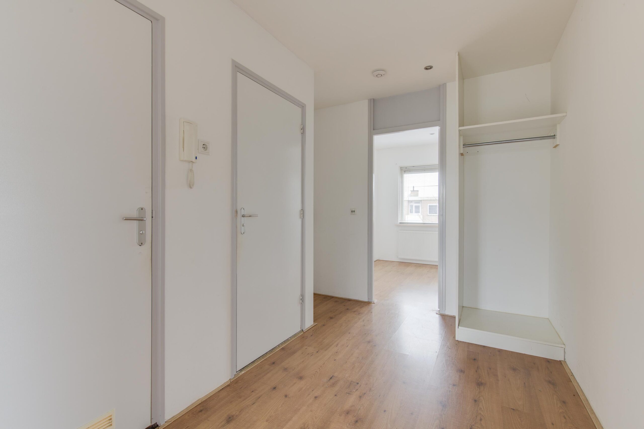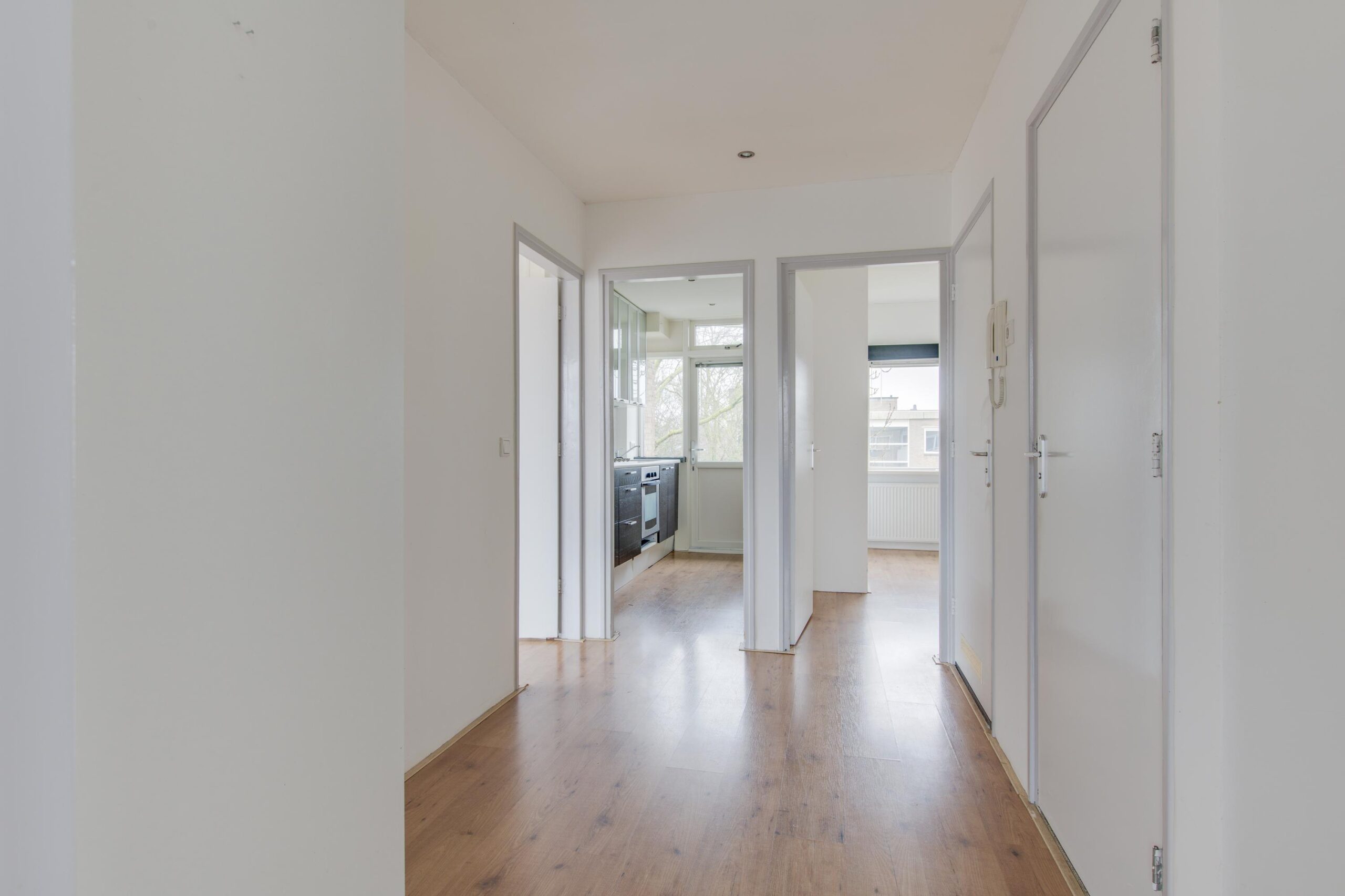 U komt binnen in de hal met toegang tot alle vertrekken. De ca. 34 m² grote woonkamer is heerlijk licht en sfeervol dankzij de grote ramen en de strakke afwerking. De fraaie laminaatvloer geeft direct een warme uitstraling. De keuken is modern uitgevoerd en voorzien van alle diverse inbouwapparatuur. Hier kookt u met plezier!