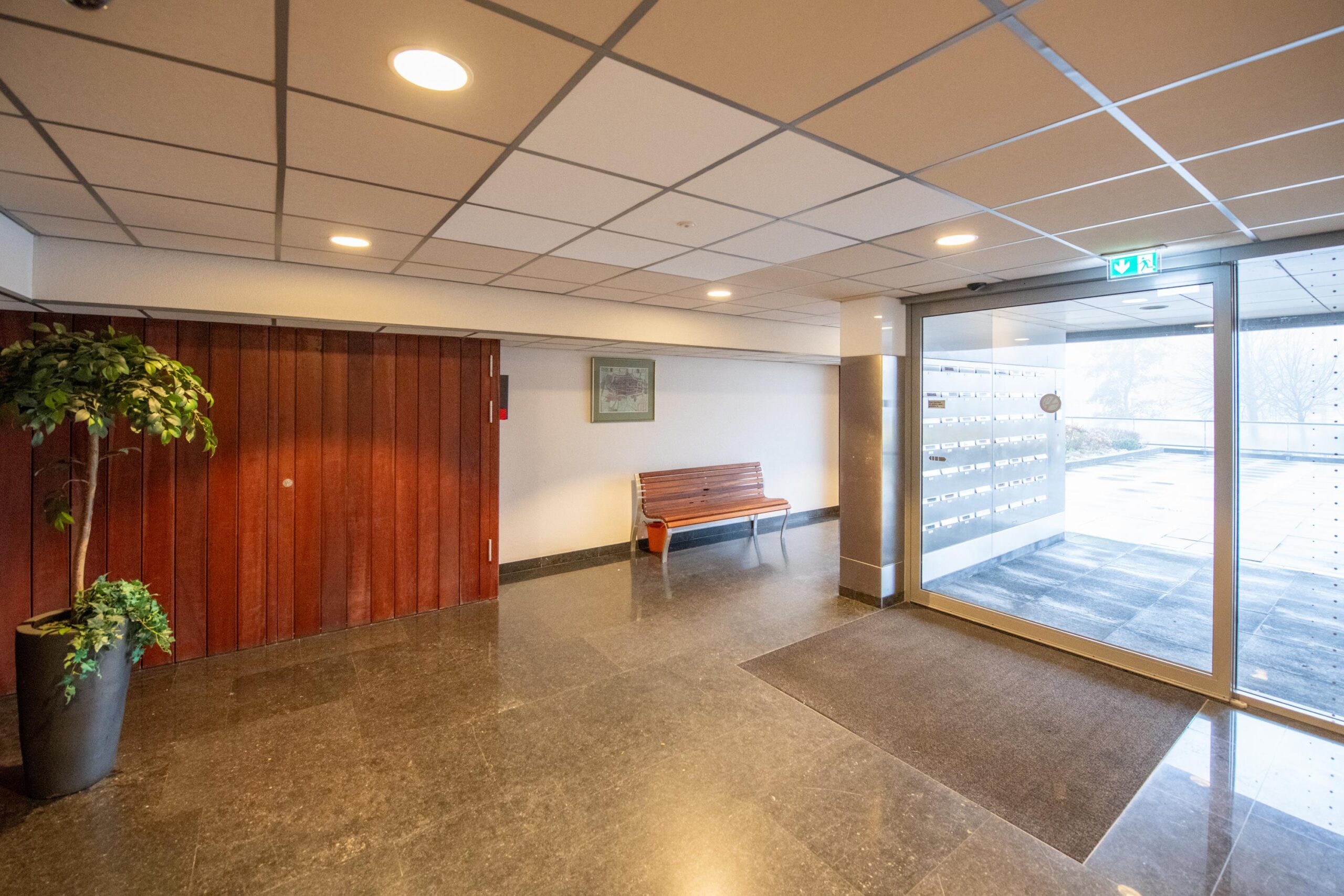 De centrale entree is voorzien van cameratoezicht en een videofooninstallatie en biedt toegang tot het trappenhuis en de liften.