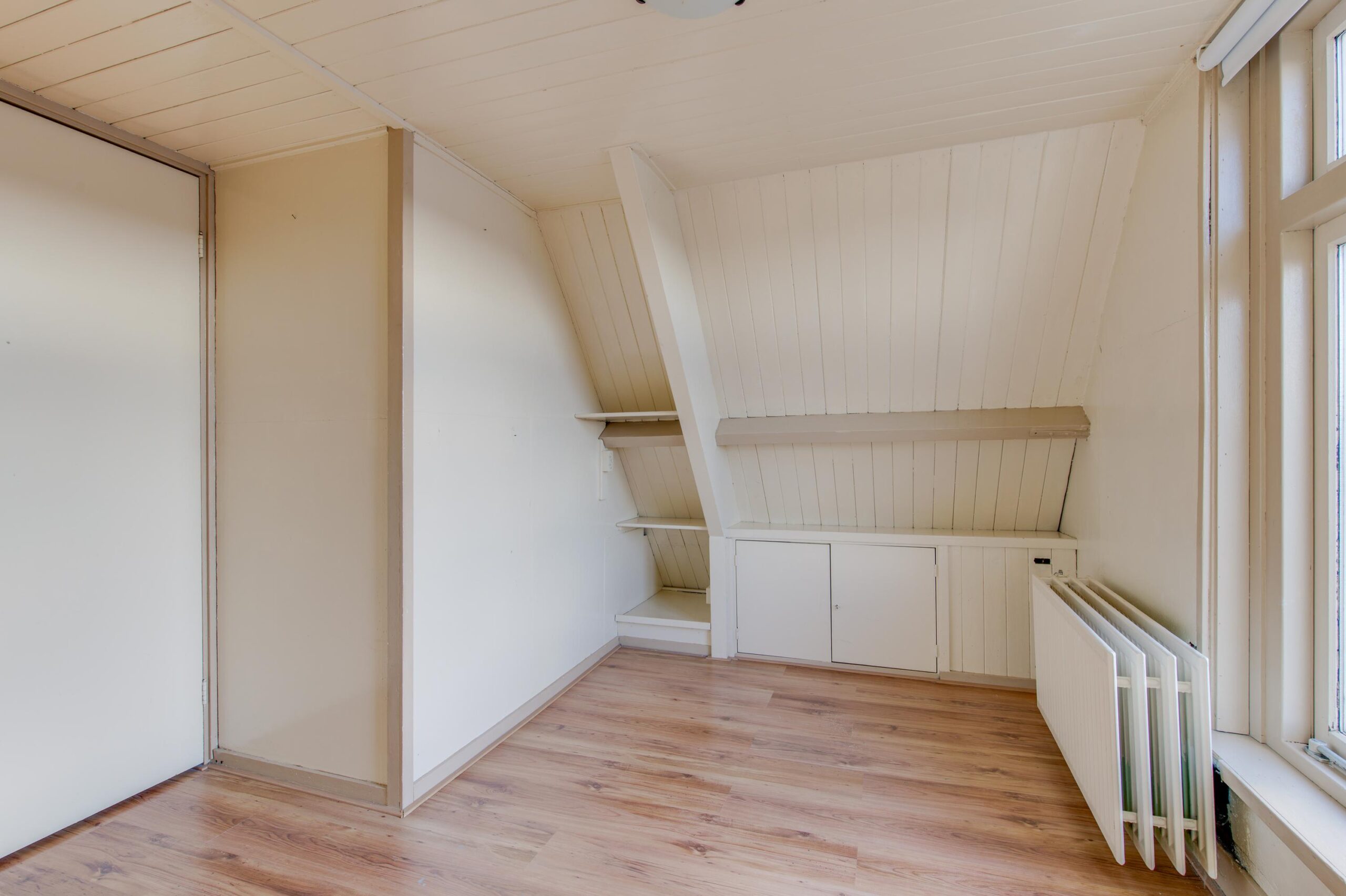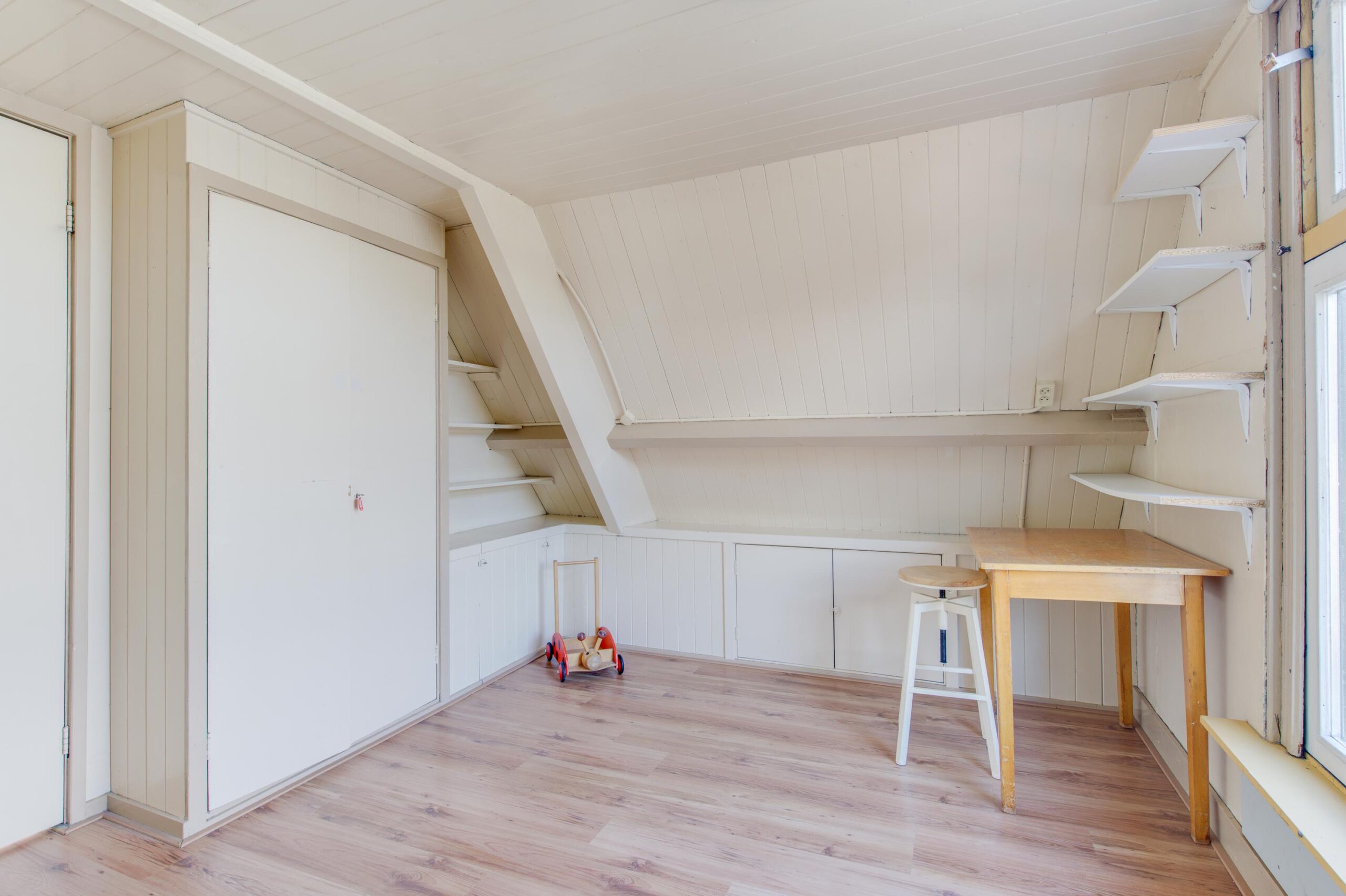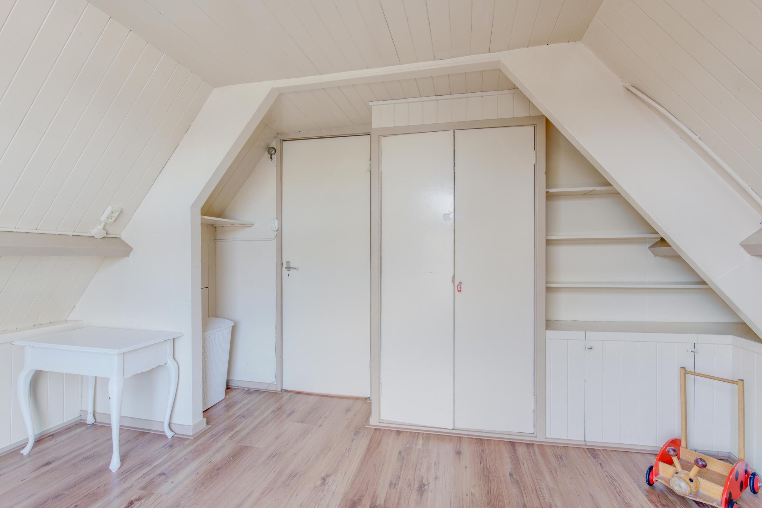 Hier vind je nog twee ca. 11 m² grote slaapkamers, een handige wasruimte en een royale berging met de cv opstelling. Boven deze verdieping is er bovendien een bergzolder, die nog meer opbergruimte biedt, perfect voor het opbergen van koffers en kerstspullen.