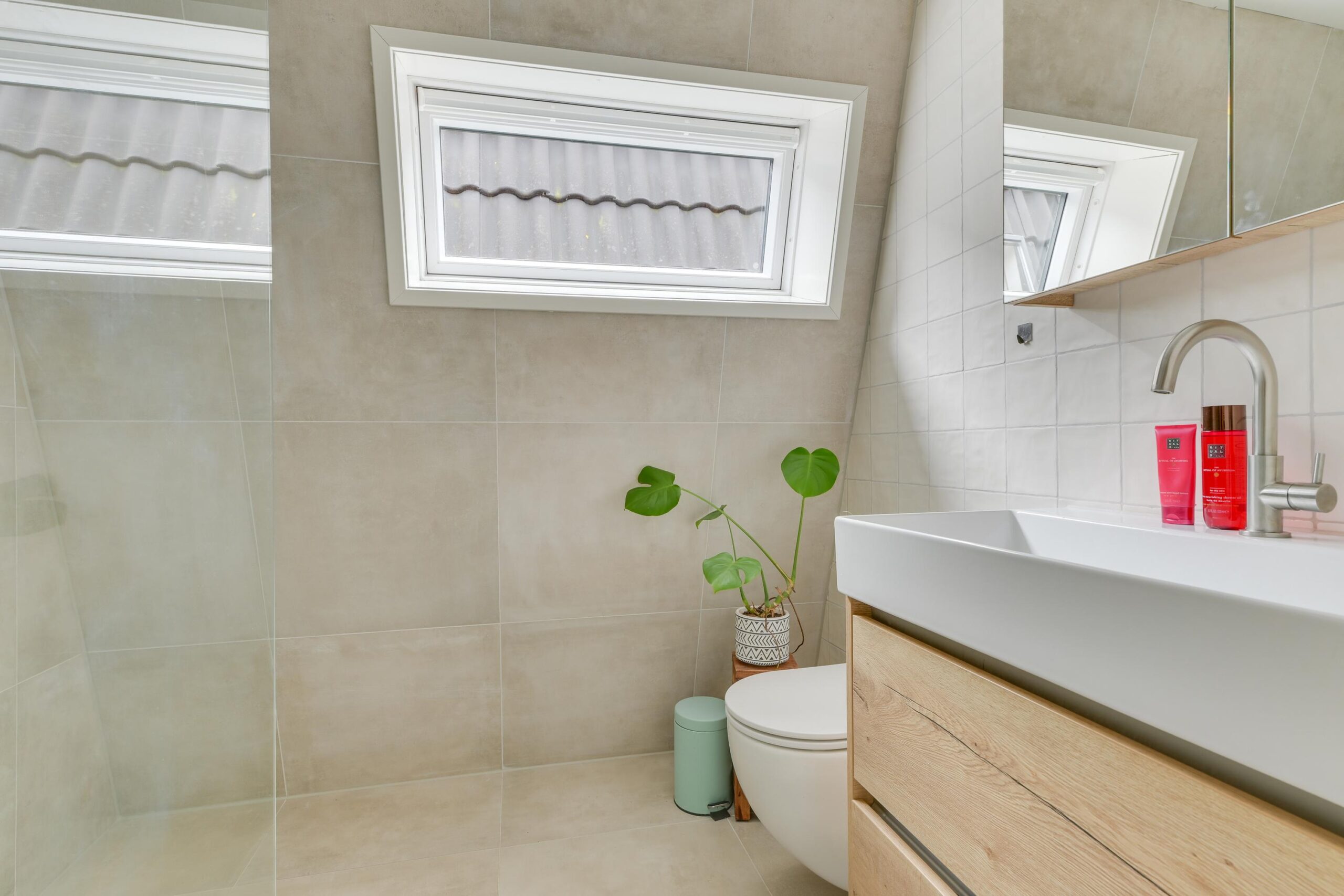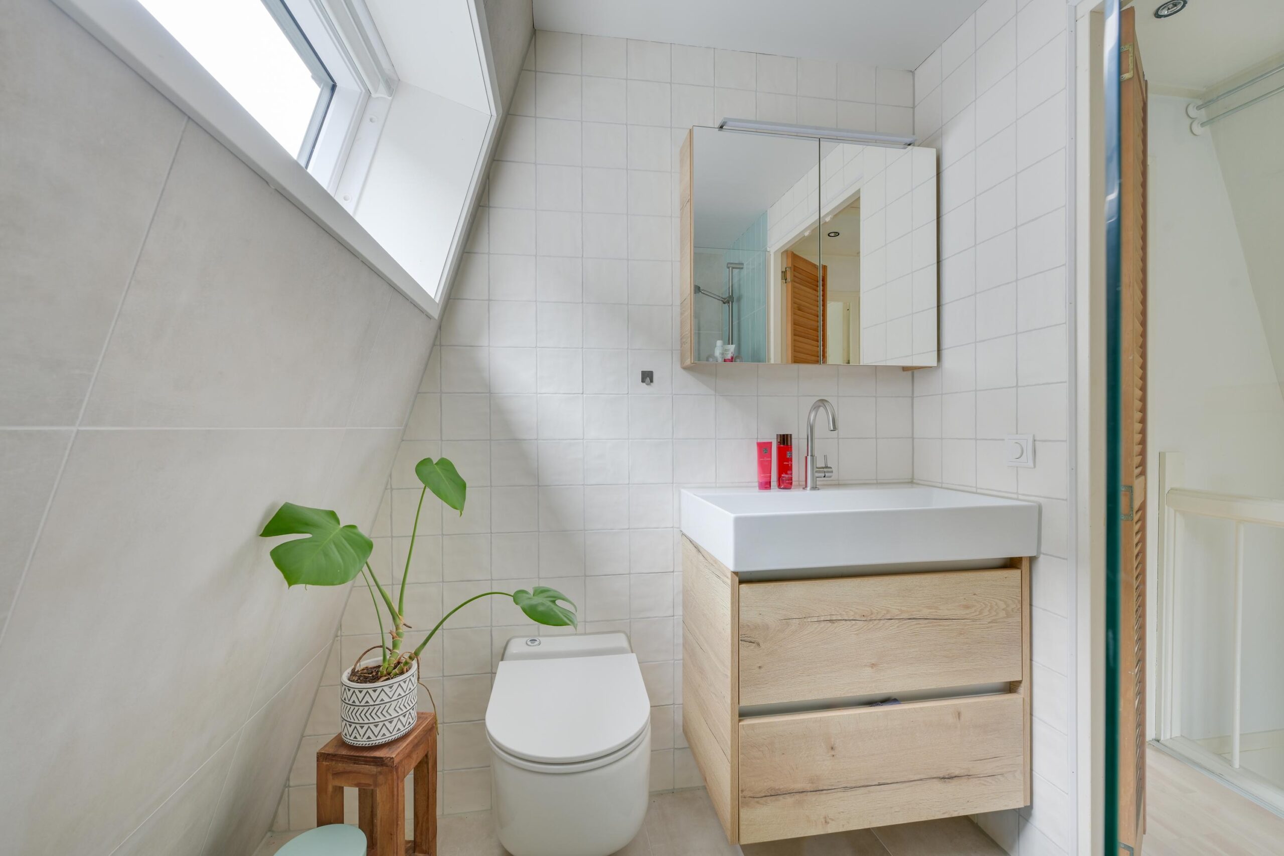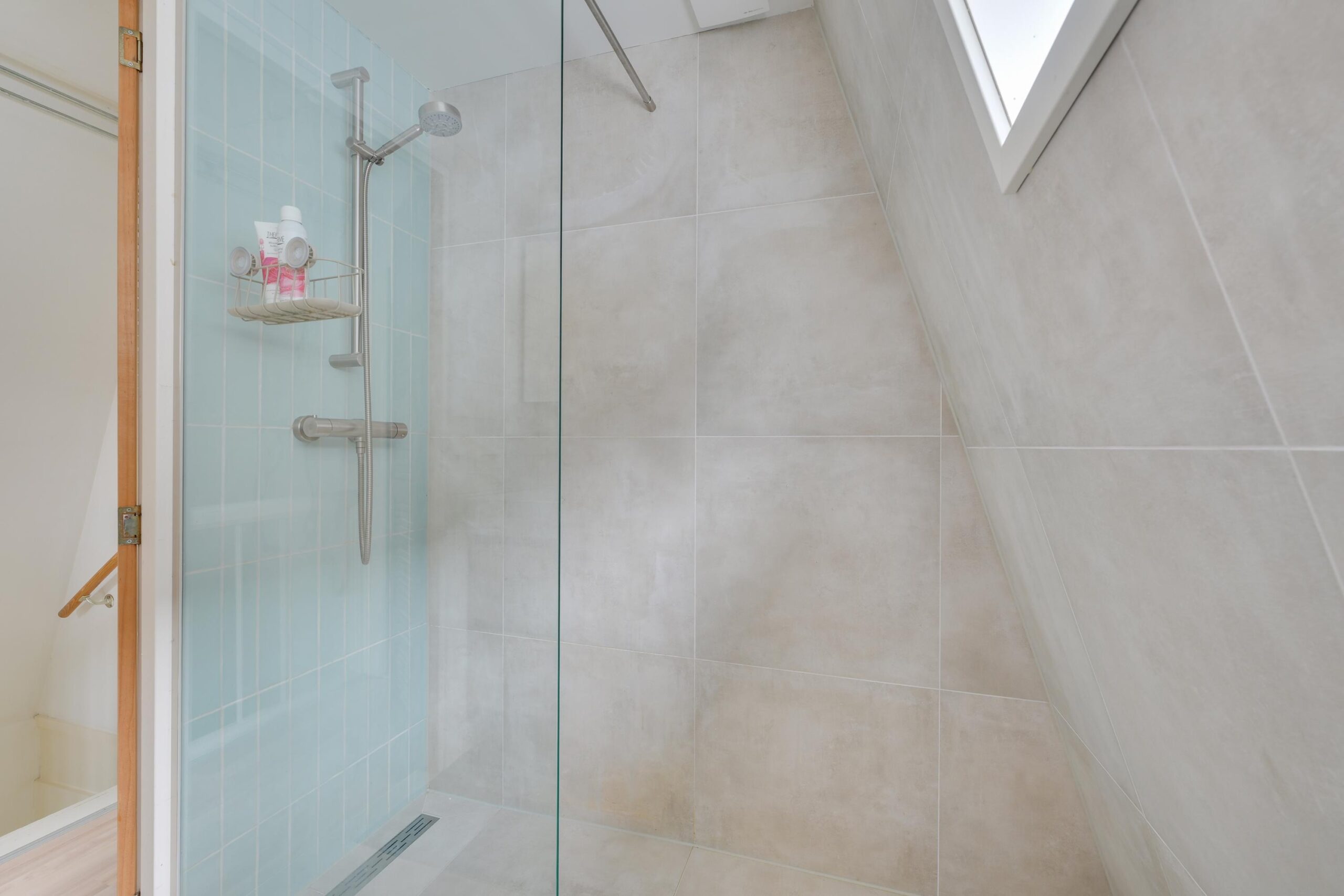 De moderne badkamer is in 2023 volledig vernieuwd en voorzien van een douche, toilet (sanibroyeur), ventilatie en een wastafelmeubel. Dankzij het nieuwe kantelraam is er goede natuurlijke ventilatie aanwezig. Via een luik bereik je de bergzolder boven de slaapkamers: een praktische, geïsoleerde opbergruimte.