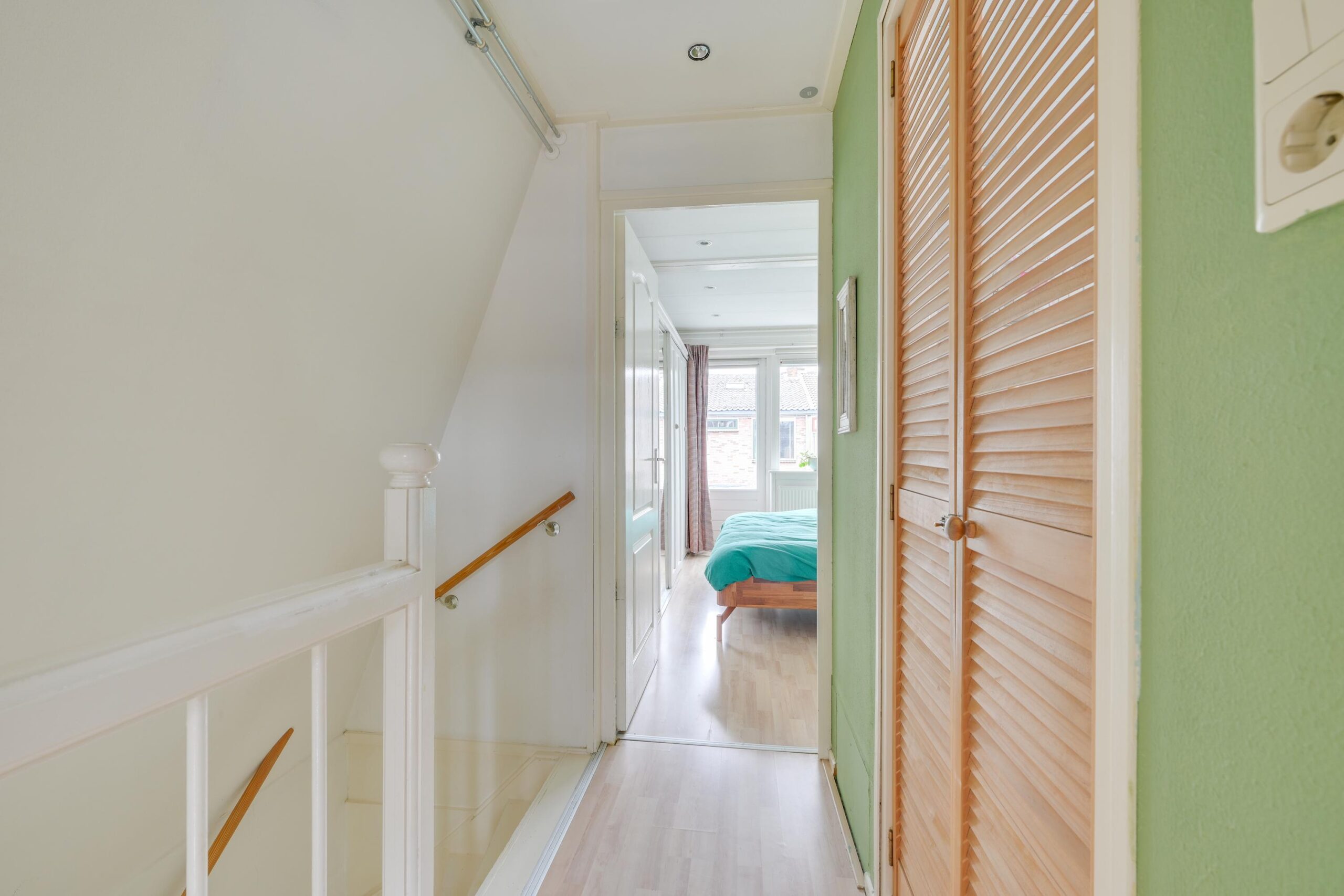 Overloop met toegang tot twee lichte slaapkamers van ca. 9 m² en 8 m². De grootste slaapkamer beschikt over een praktische kastenwand over de gehele lengte.