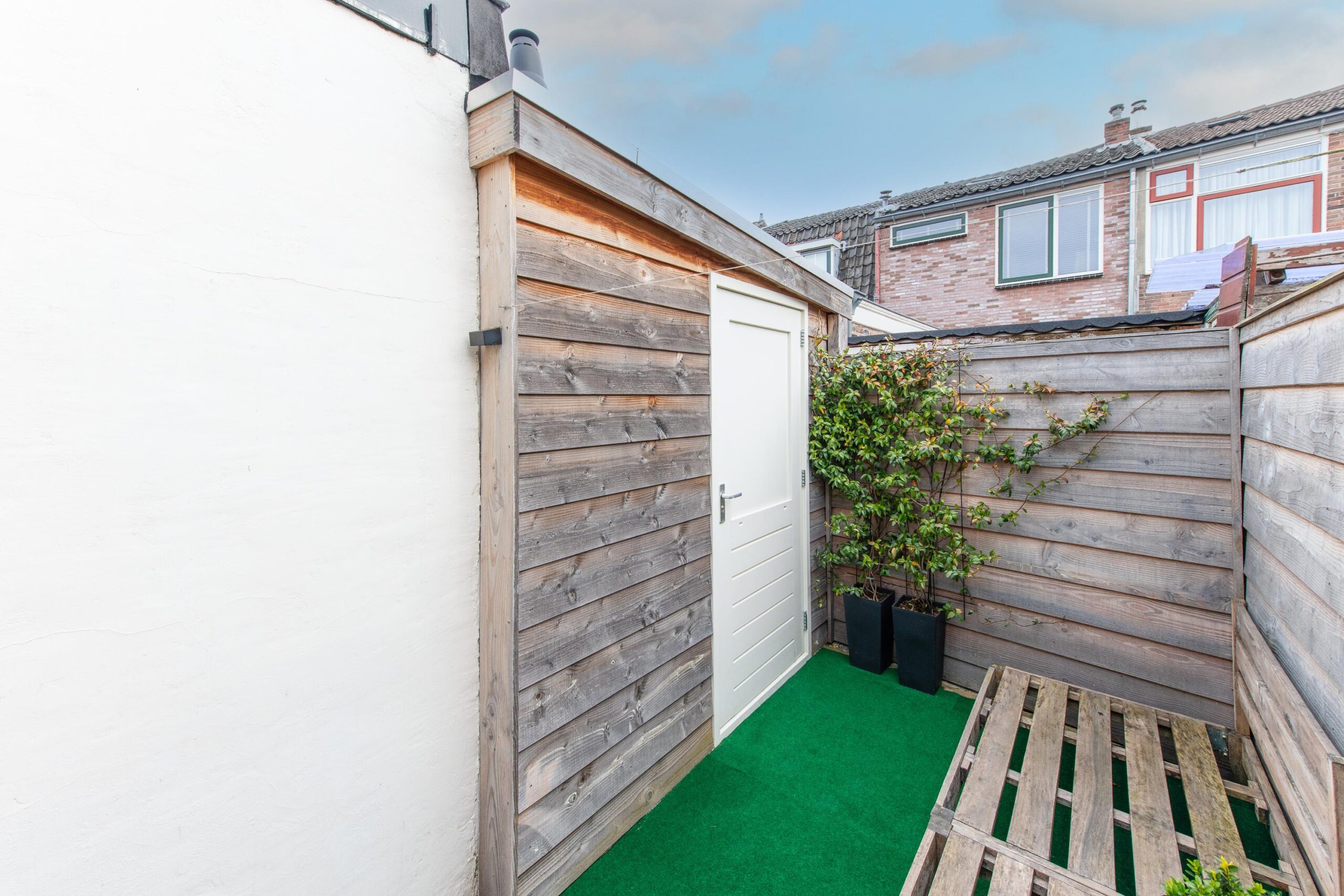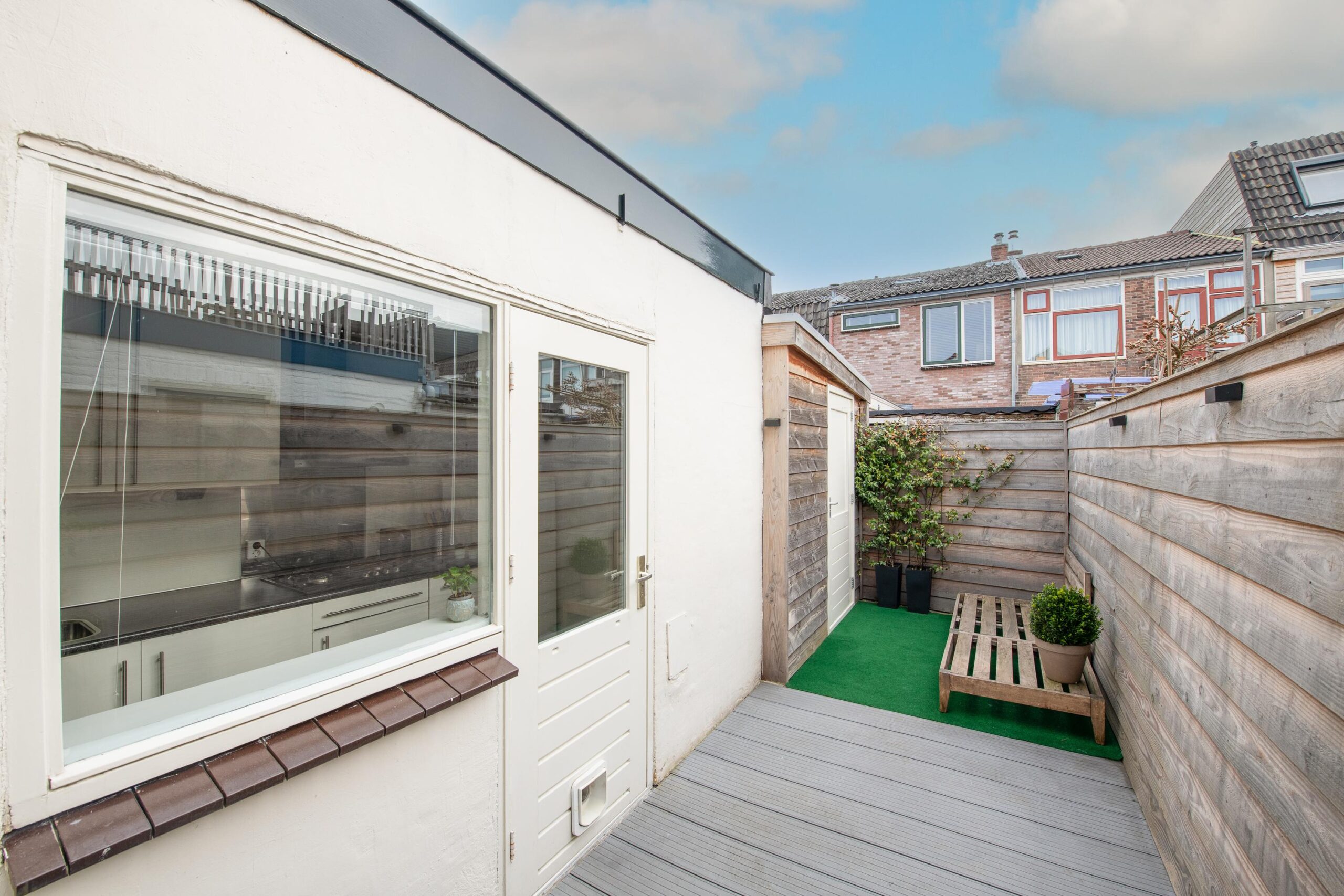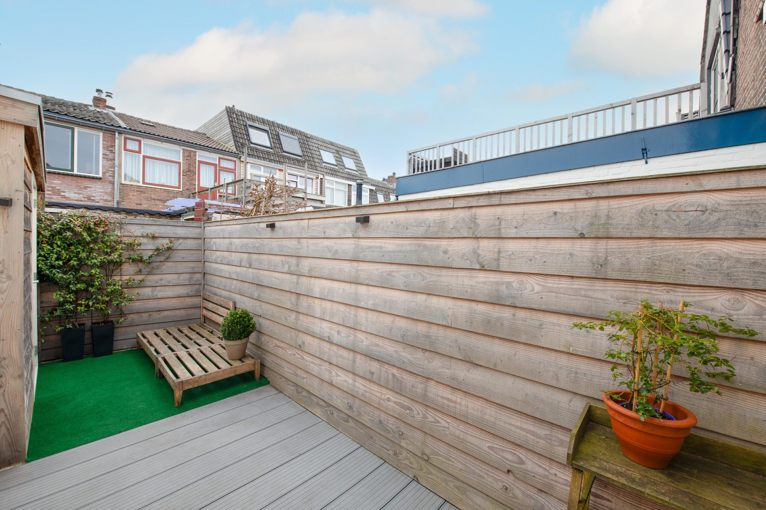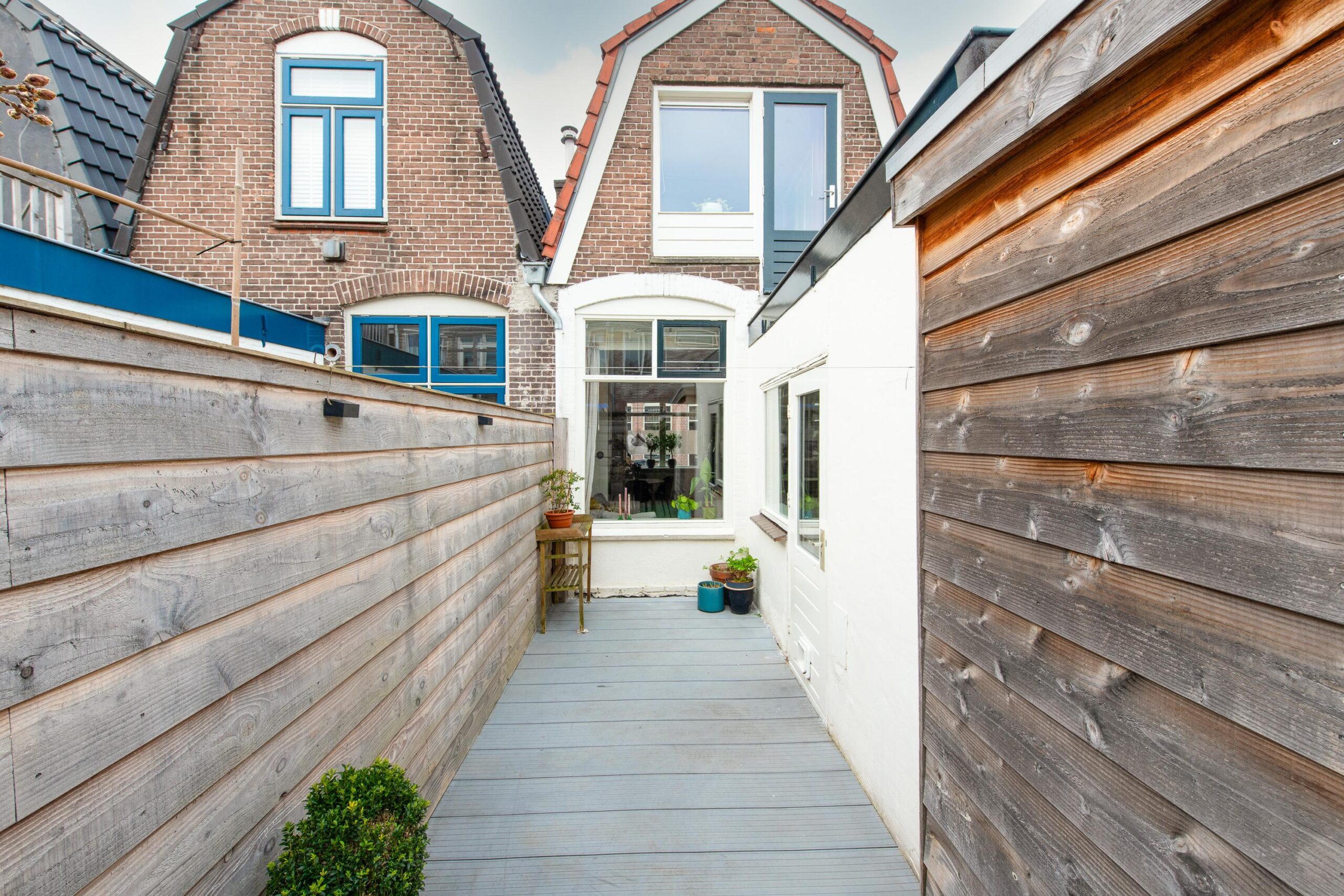 De achterplaats biedt een fijne plek om te genieten van de zon tot in de late middaguren. De tuin is bereikbaar via de keuken en een achterom.