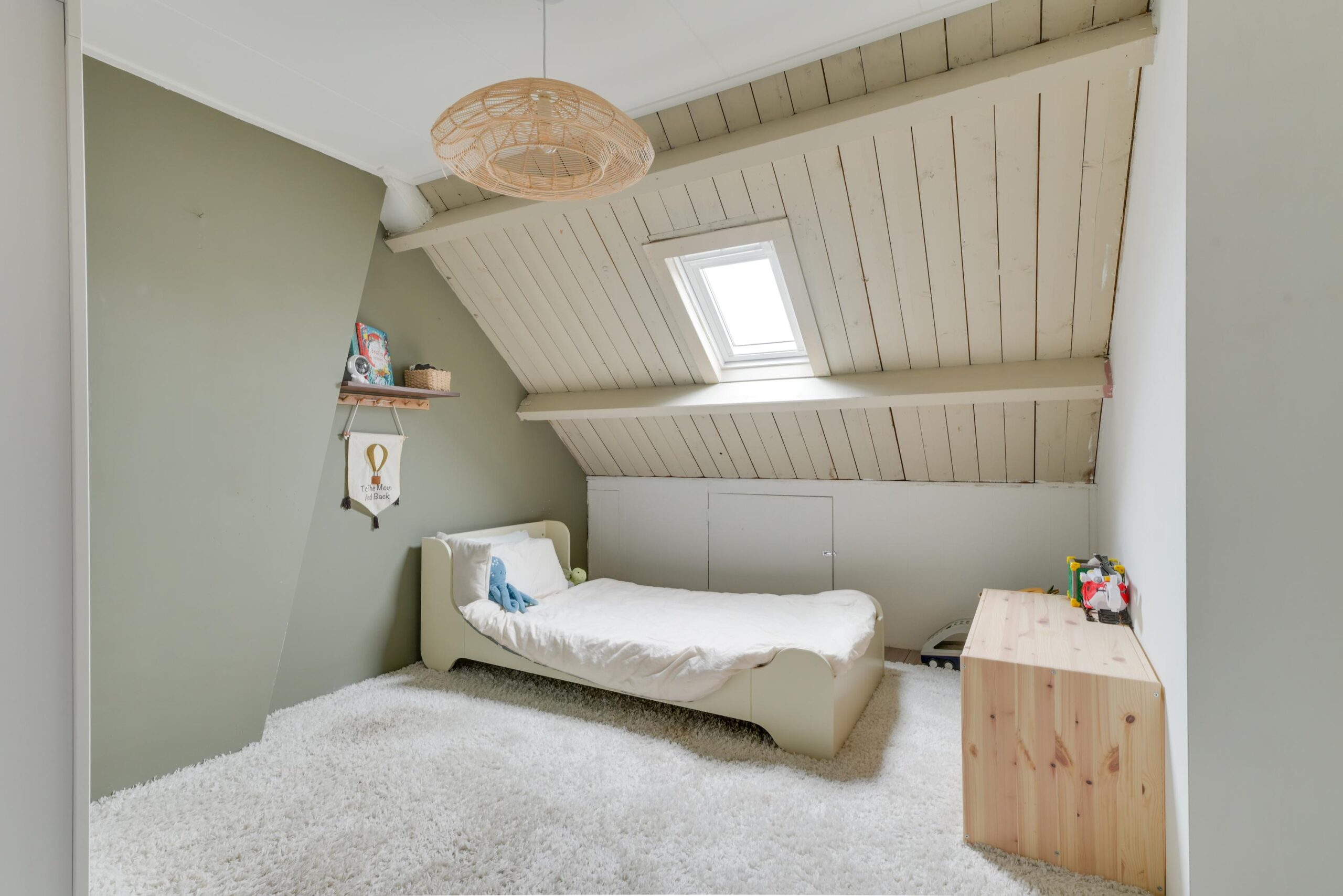 De zolderverdieping is bereikbaar via een vaste trap en biedt verrassend veel extra ruimte. Op de ruime overloop bevinden zich de was- en bergruimte. Aansluitend ligt de vierde slaapkamer van ca. 14 m². Dankzij de royale afmetingen is deze verdieping multifunctioneel inzetbaar. Door het plaatsen van een groter dakraam kan maar liefst ca. 16 m² extra woonoppervlakte toegevoegd worden.