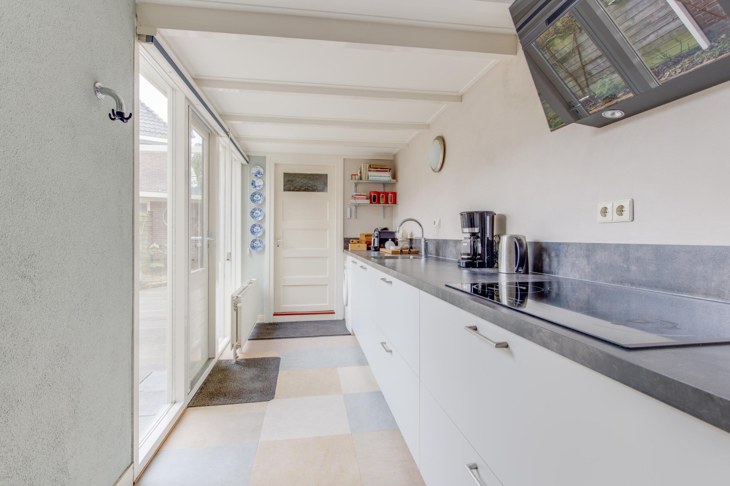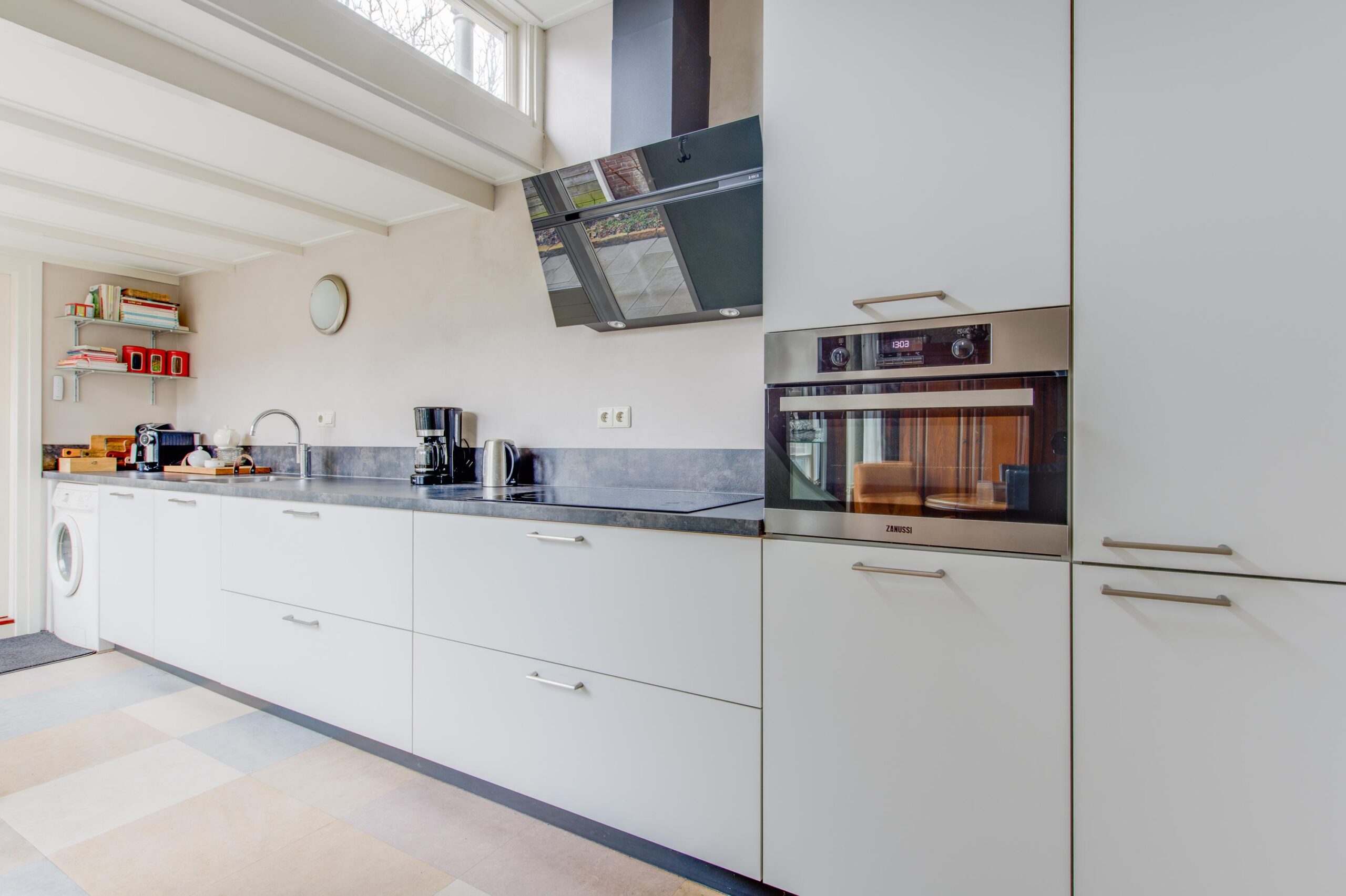 Aan de achterzijde ligt de moderne keuken van circa 11 m² met ruime eethoek, dé plek voor lange diners en gezellige avonden. De keuken is in 2021 geplaatst en uitgevoerd in een praktische opstelling met volop werkruimte en diverse inbouwapparatuur, waaronder een koel vriescombinatie, inductiekookplaat, afzuigkap en vaatwasser. Vanuit hier is de inpandige berging bereikbaar, ideaal voor extra opslag.