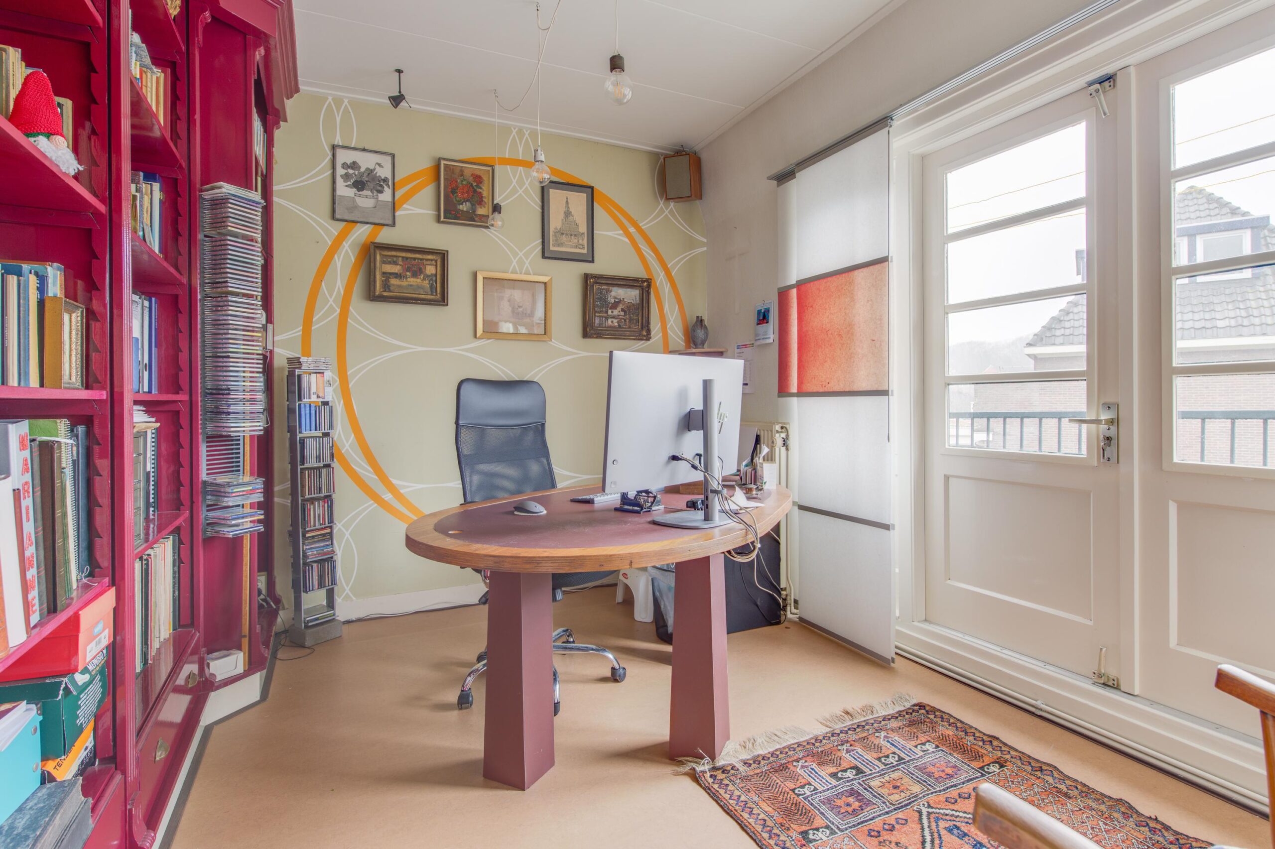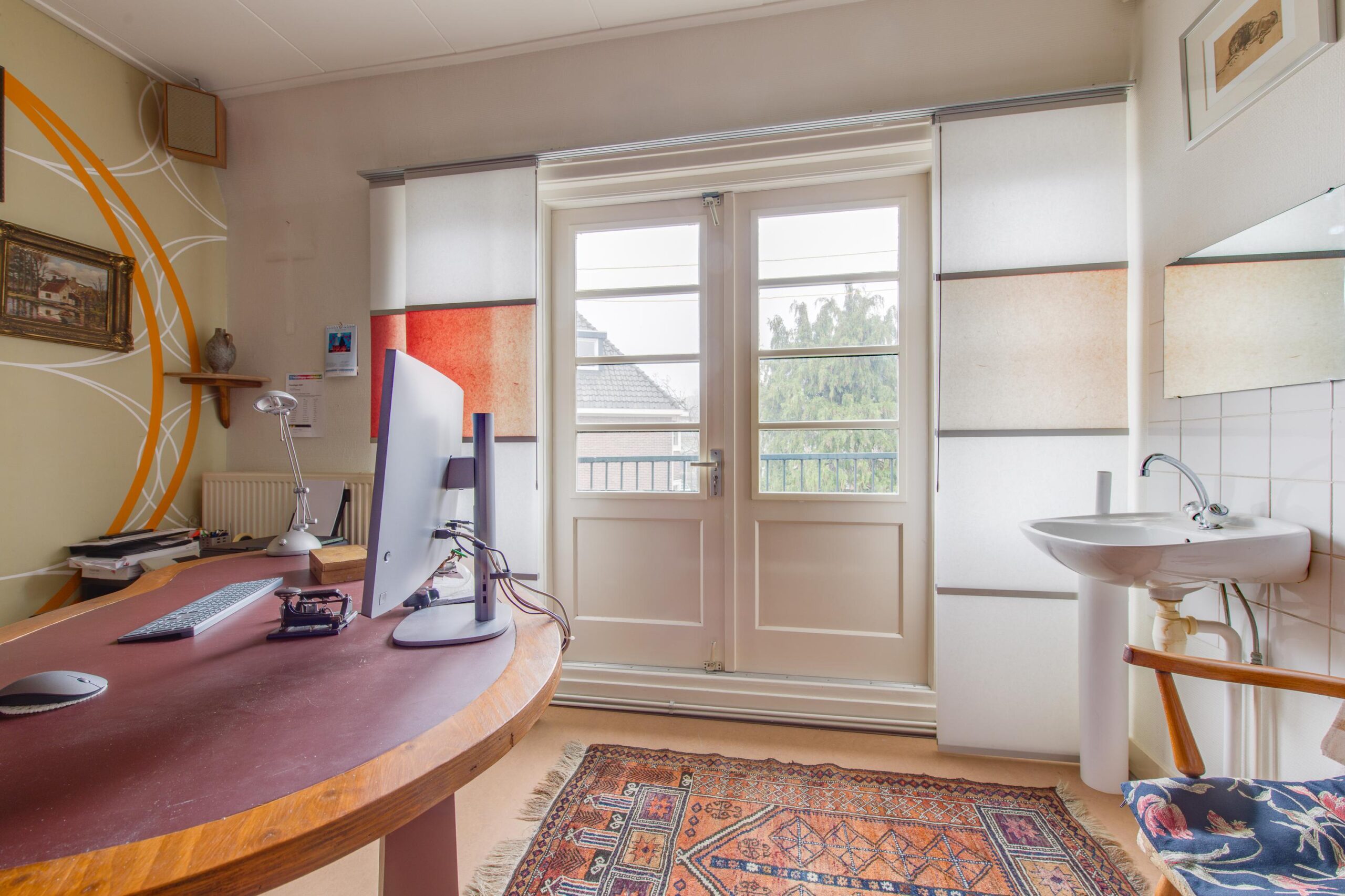 De karakteristieke erker met glas in loodramen zorgt voor een warme sfeer en een prachtige lichtinval. Dit is een beeldbepalend pand met uitstraling.