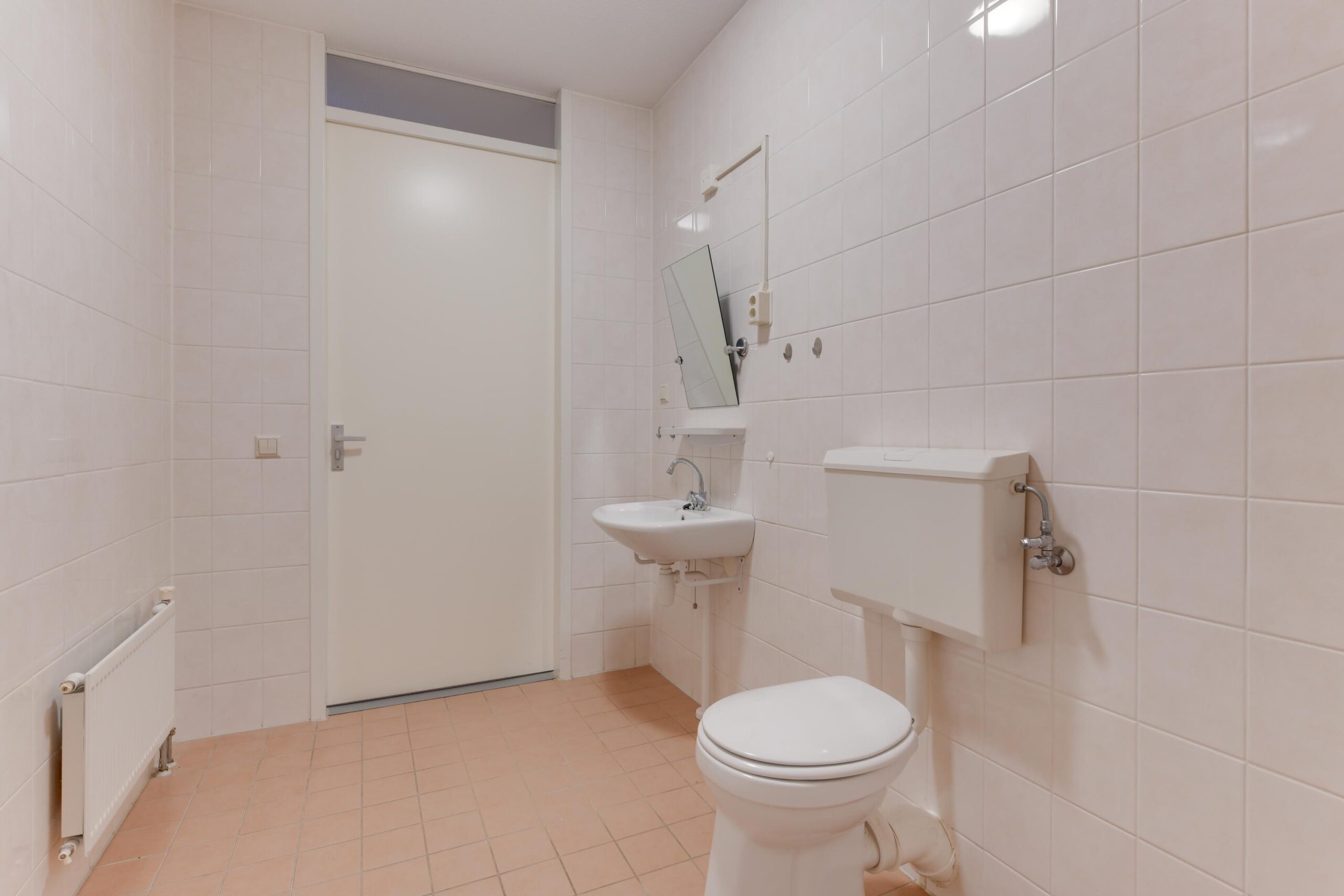 De badkamer (circa 6 m²) is netjes uitgevoerd en voorzien van een douche, tweede toilet en wastafel met spiegel.