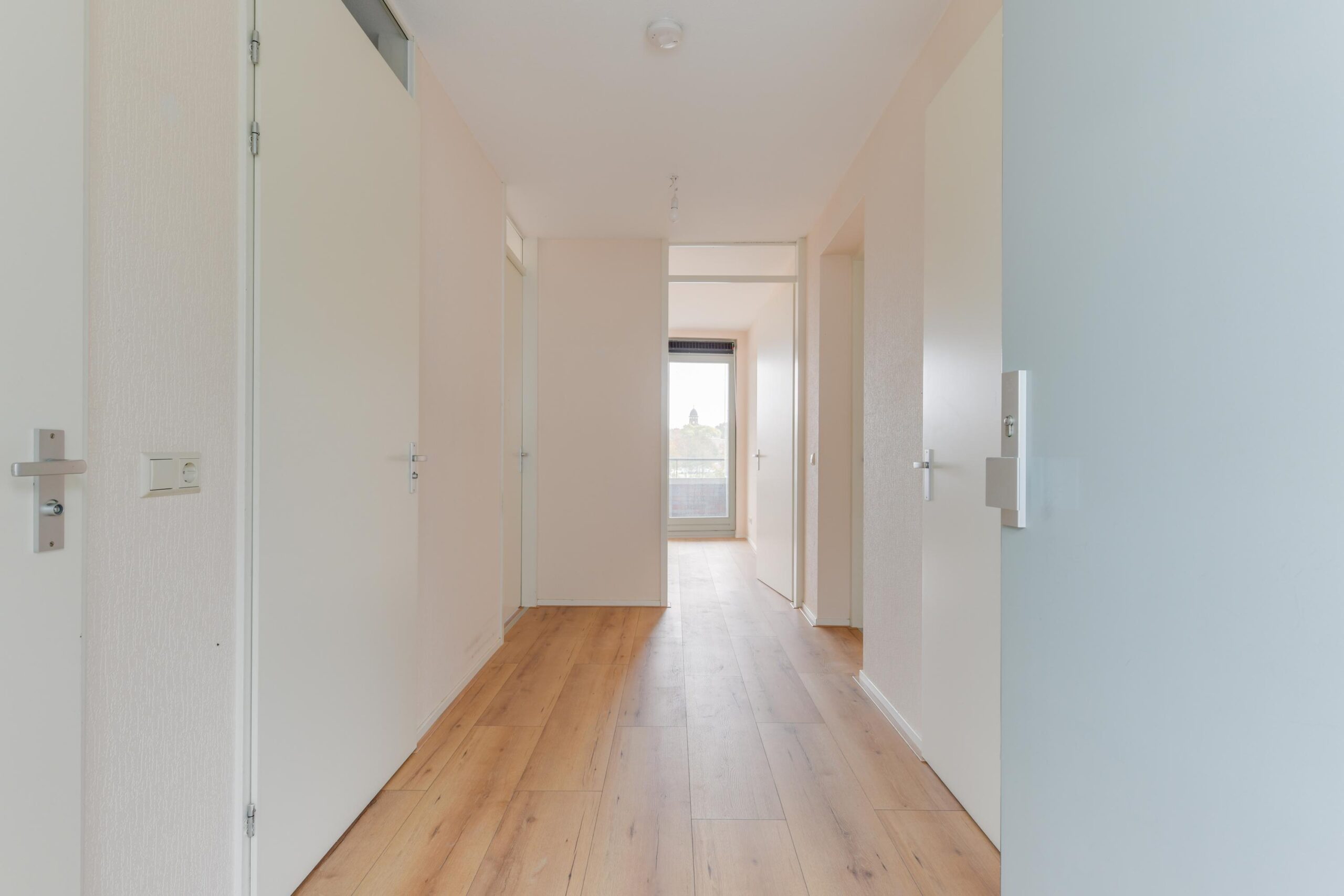 Entree, gang (ca. 9 m²) met toegang tot de verschillende vertrekken, separate toiletruimte, praktische inpandige berging (ca. 2 m²) voorzien van o.a. wasmachine- en drogeraansluiting, mechanische ventilatie unit en cv-combiketel (2023). De eerste slaap-/hobbykamer (ca. 8 m²) is voorzien van een draai-/kiepraam. De masterbedroom (ca. 16 m²) heeft met het zijraam extra lichtinval en is tevens voorzien van een deur met toegang tot het balkon.