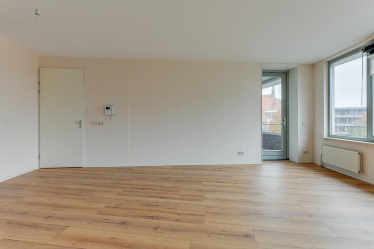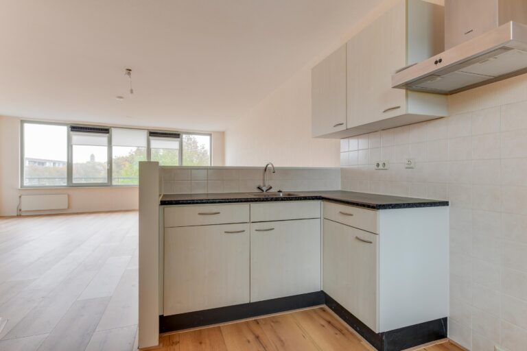 De woonkamer (ca. 34 m²) is voorzien van de intercominstallatie en heeft door de grote raampartijen veel lichtinval. Vanuit de woonkamer is de open keuken (ca. 8 m²) toegankelijk in een L-vormige opstelling en is voorzien van een afzuigkap. Tevens biedt de woonkamer toegang tot het ruime balkon (ca. 11 m²) gelegen op het oosten met een fraai uitzicht over het water!