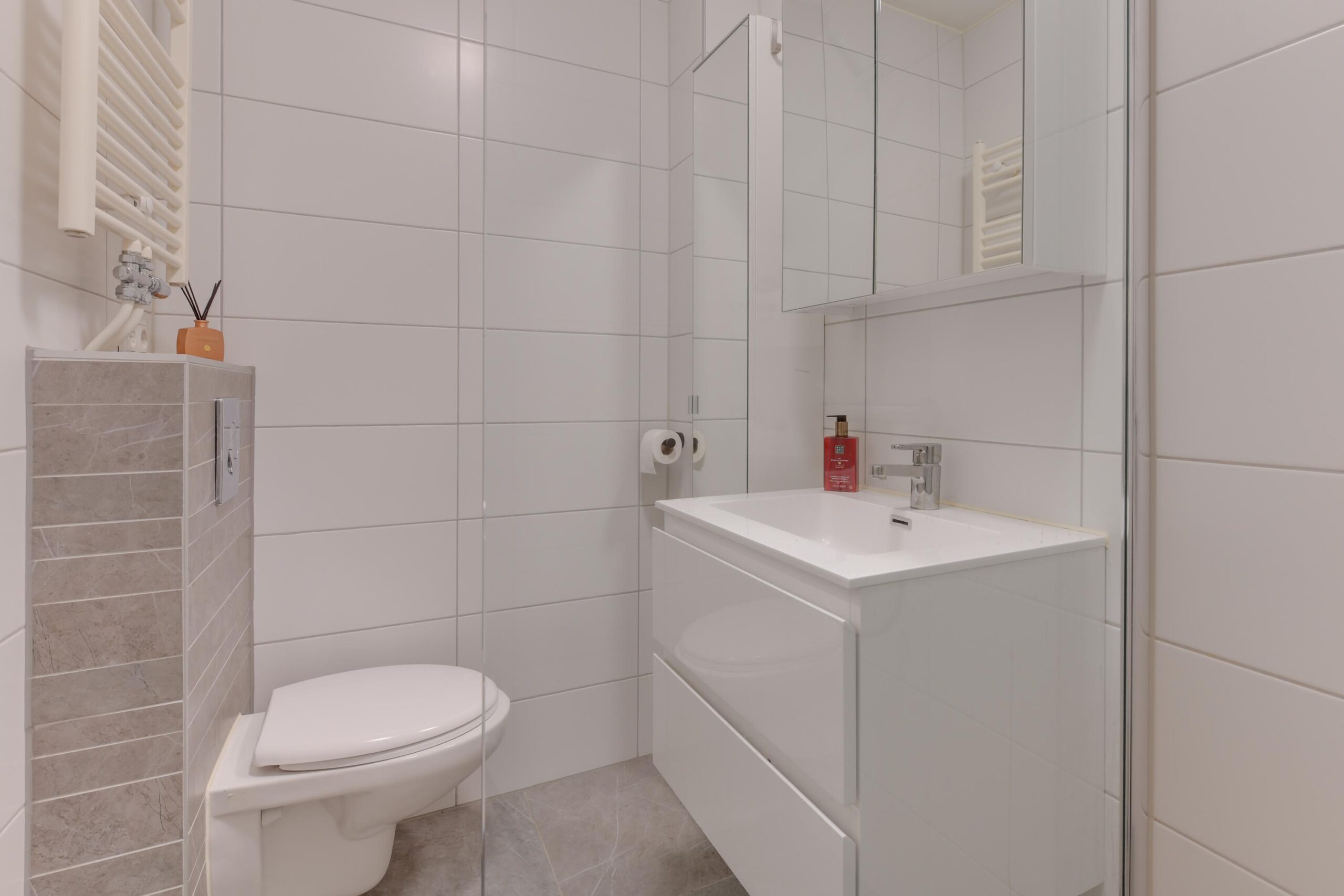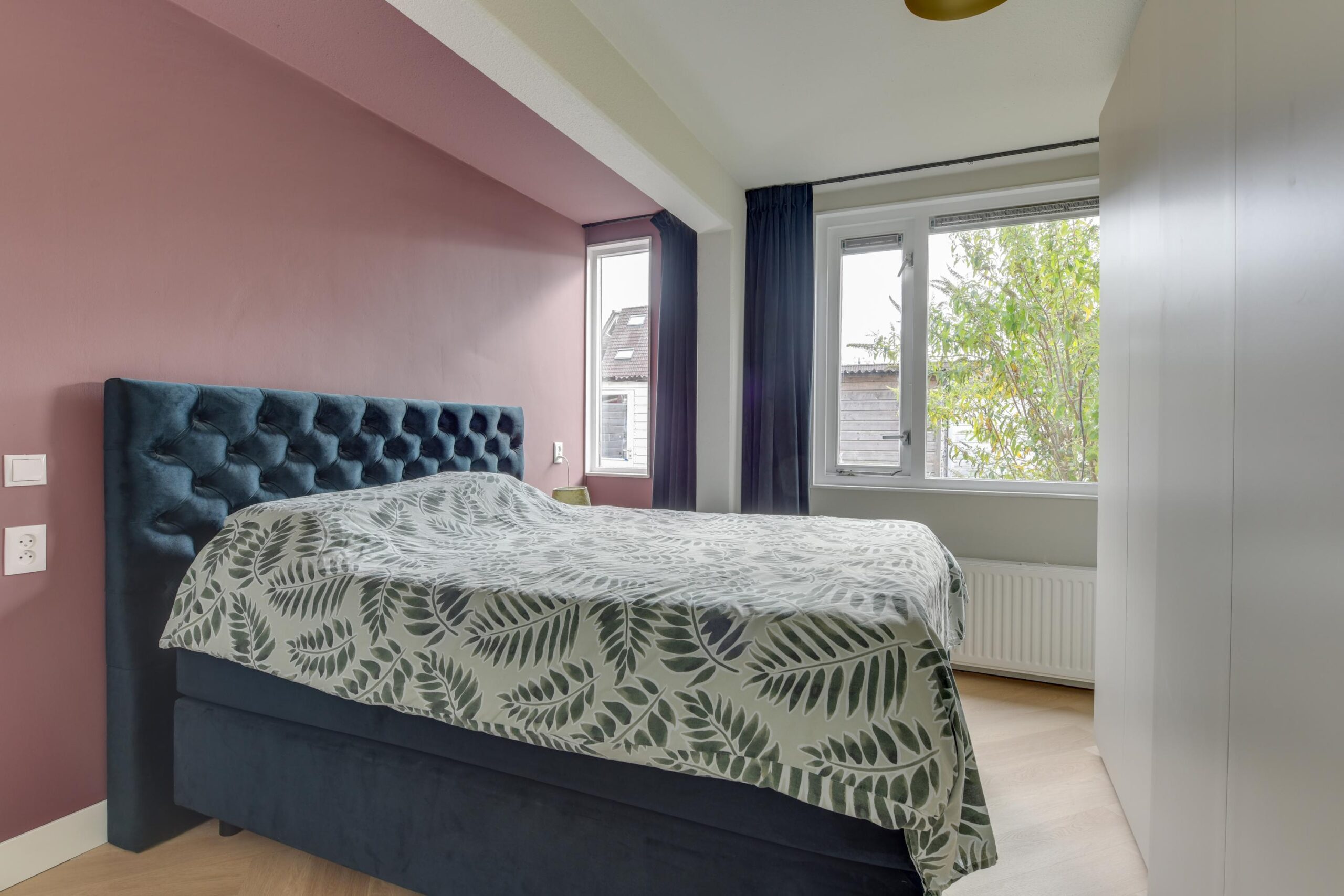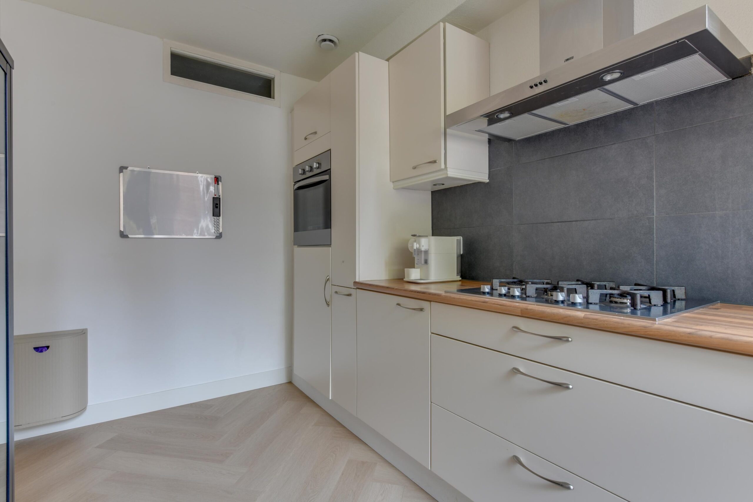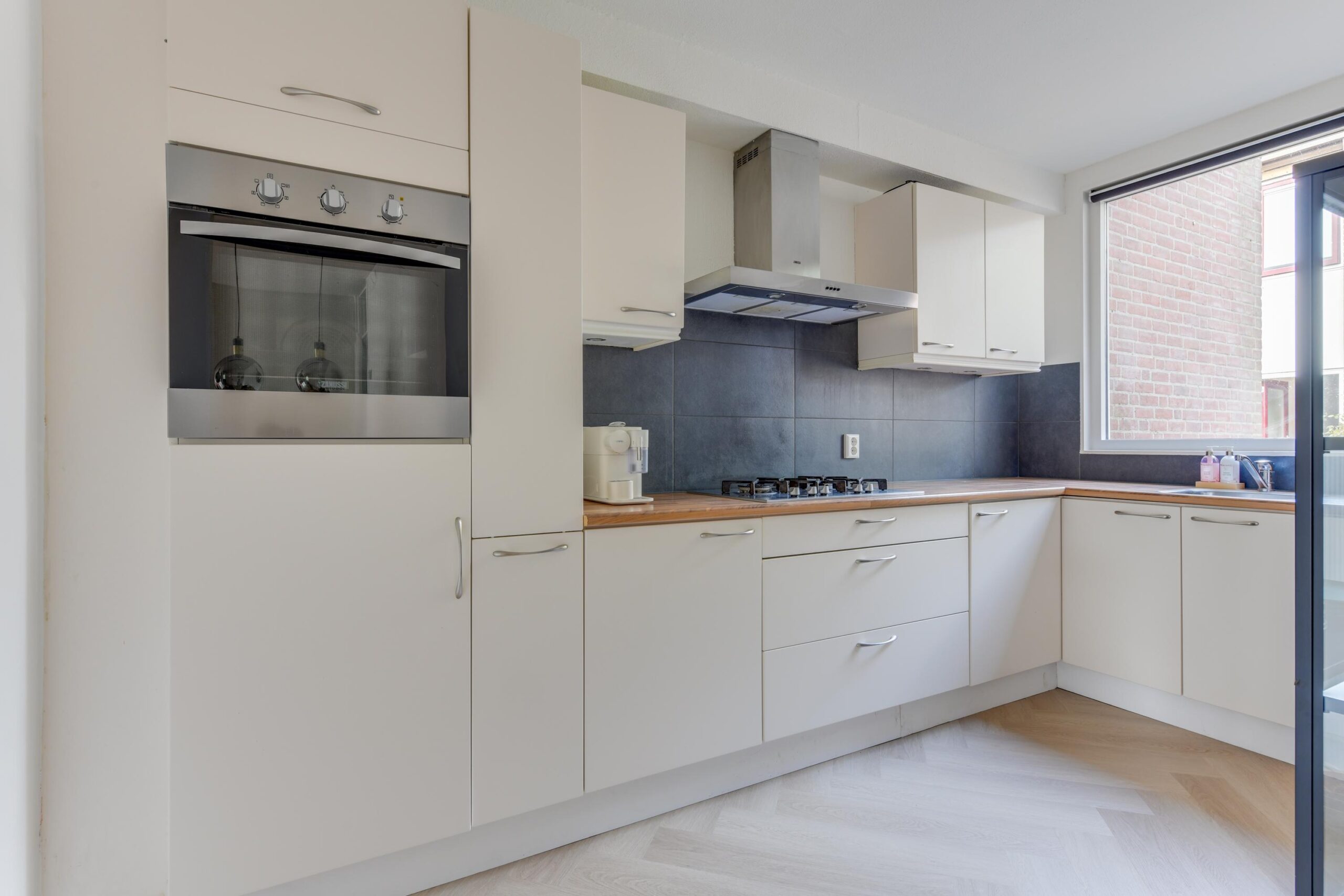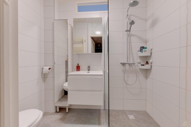 De keuken aan de voorzijde is modern en praktisch ingericht met een 5-pits gasfornuis, oven, afzuigkap, vaatwasser en koelkast. Aan de achterzijde vindt u de hoofdslaapkamer van ca. 13 m² met directe toegang tot de moderne badkamer (2020), voorzien van een inloopdouche, tweede toilet, wastafelmeubel en designradiator.