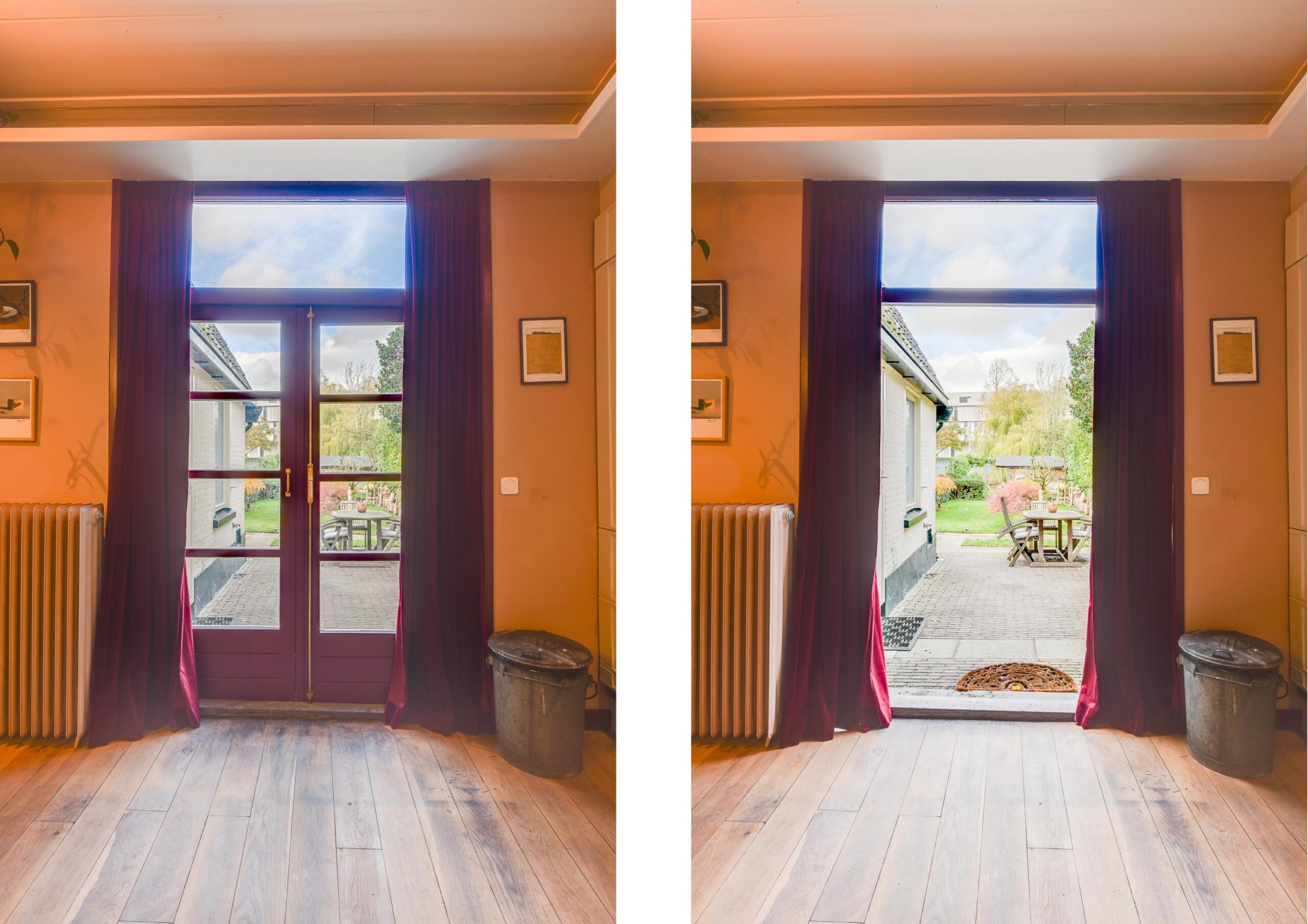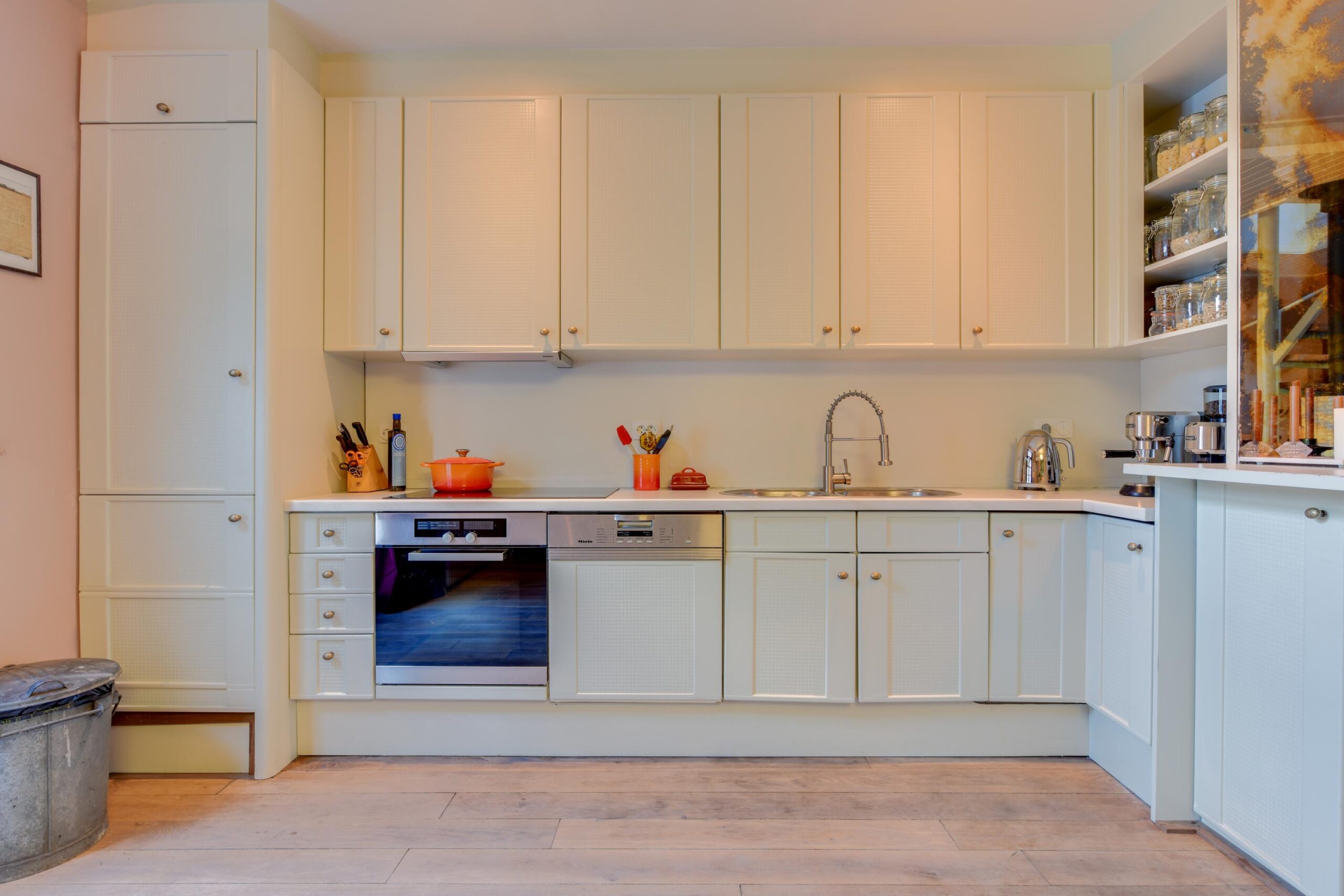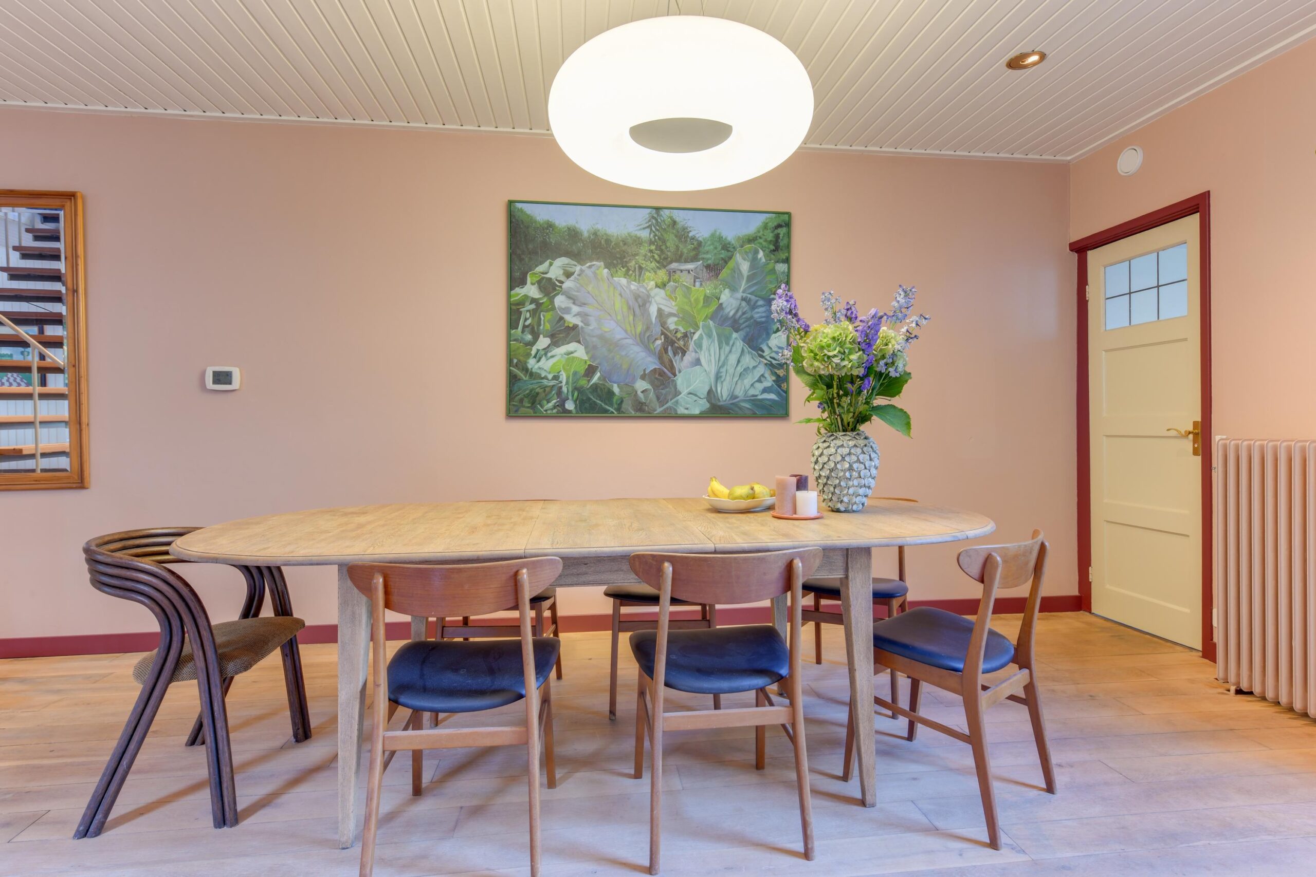 Zodra je binnenkomt, valt het gevoel van ruimte op. De royale woonkamer met sfeervolle erker en een vrijstaande haard ademt karakter. De woning is aan de achterzijde uitgebouwd, waardoor er een heerlijke leefruimte is ontstaan met plek voor een grote eettafel. De open keuken sluit hier perfect op aan – ruim en praktisch ingedeeld en voorzien van inbouwapparatuur. Via de openslaande deuren loop je zo de tuin in.
