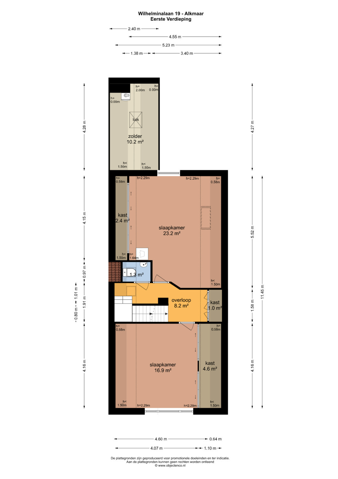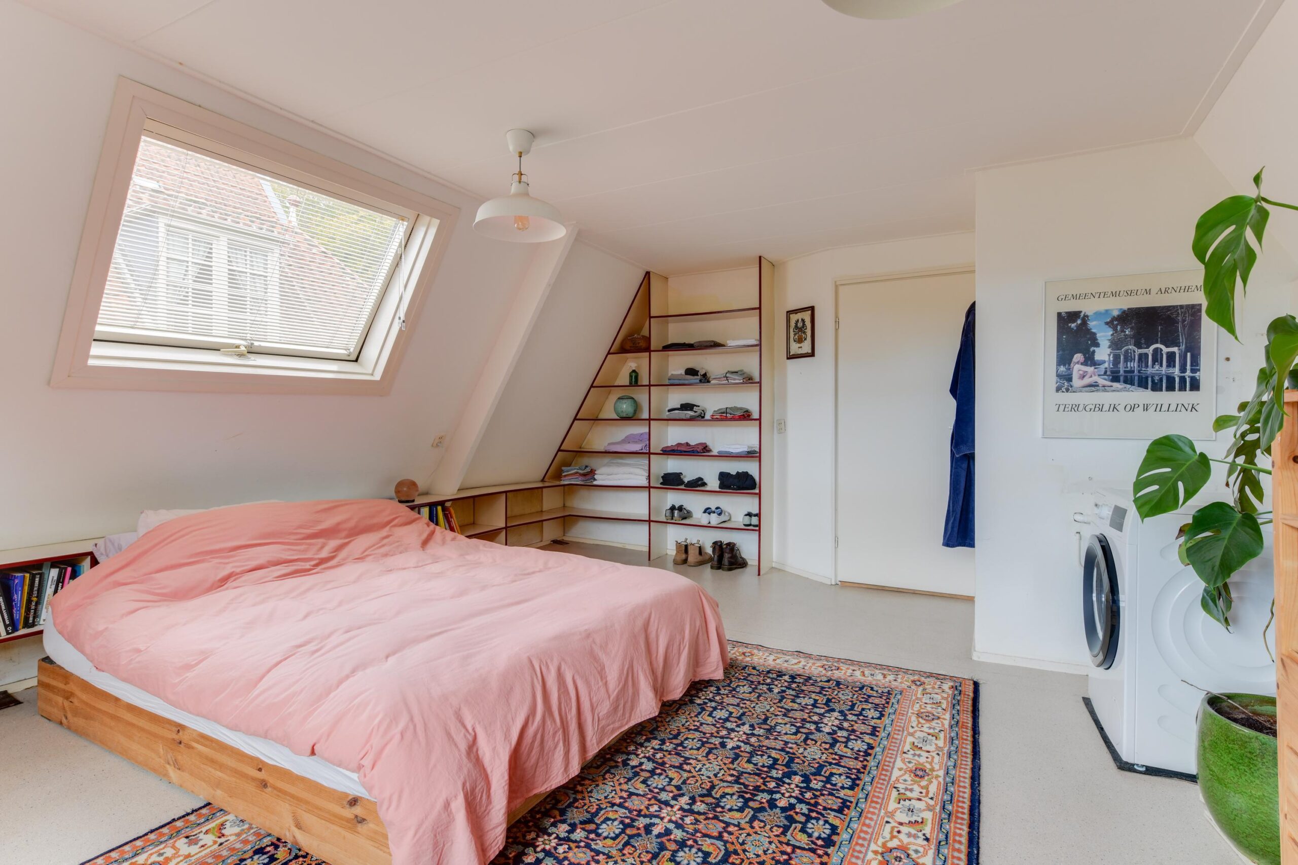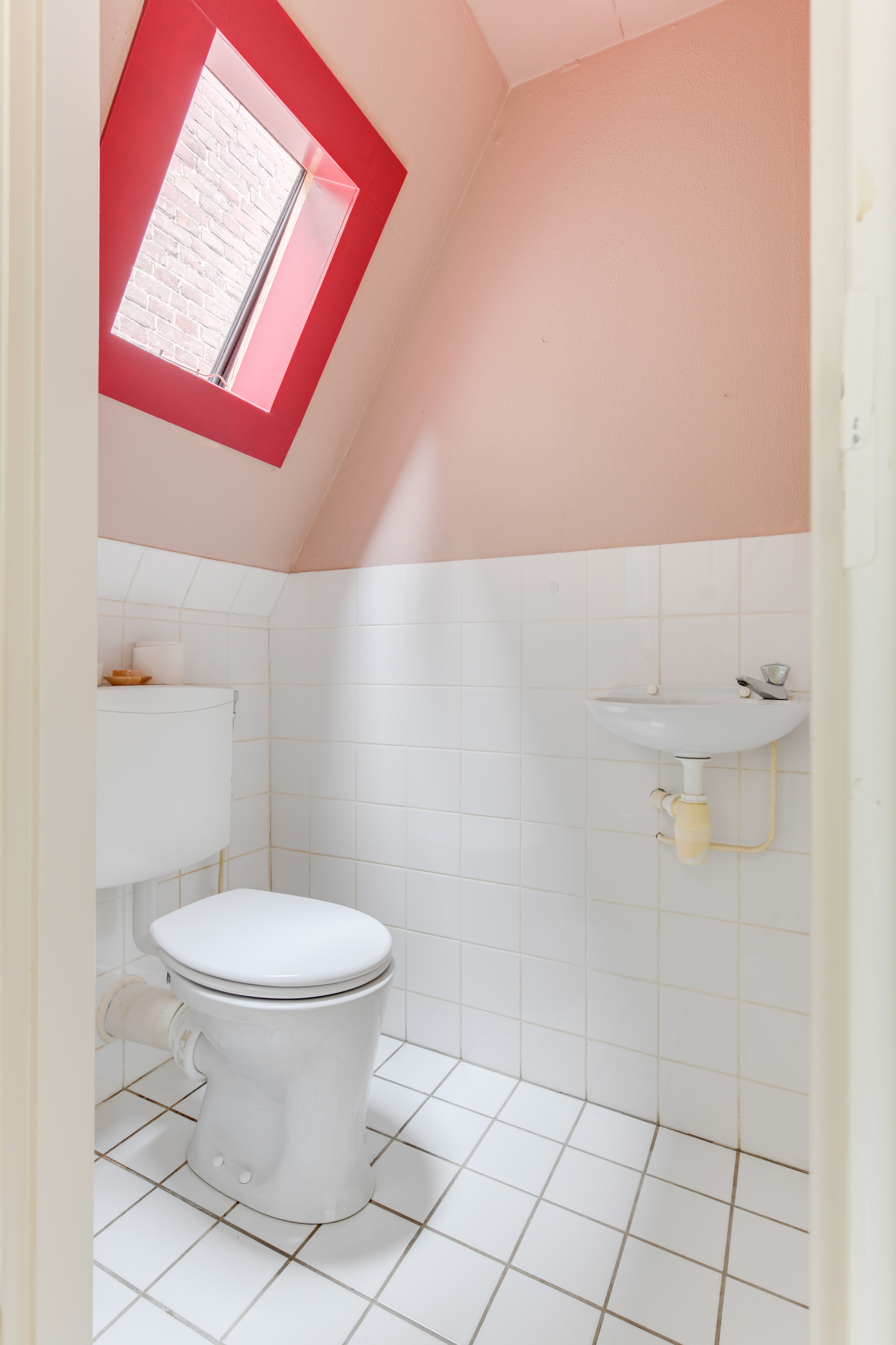 Via de open trap in de woonkamer kom je op de eerste verdieping, waar twee royale slaapkamers zijn met veel kastruimte en een tweede toilet. De slaapkamer aan de achterzijde was vroeger opgedeeld in twee kamers, dus wie wil, kan die indeling eenvoudig herstellen. Ook tref je hier de wasmachineopstelling.